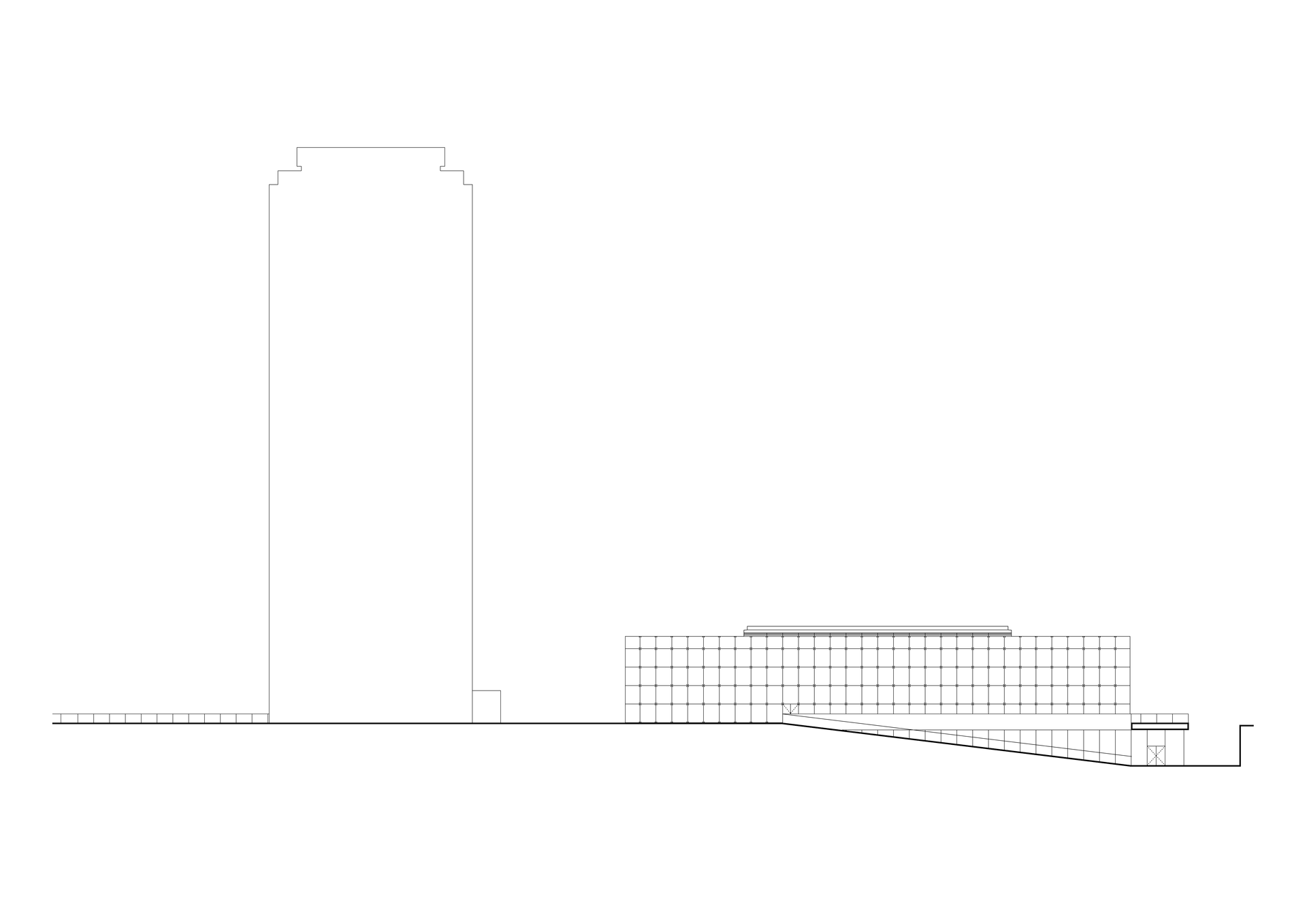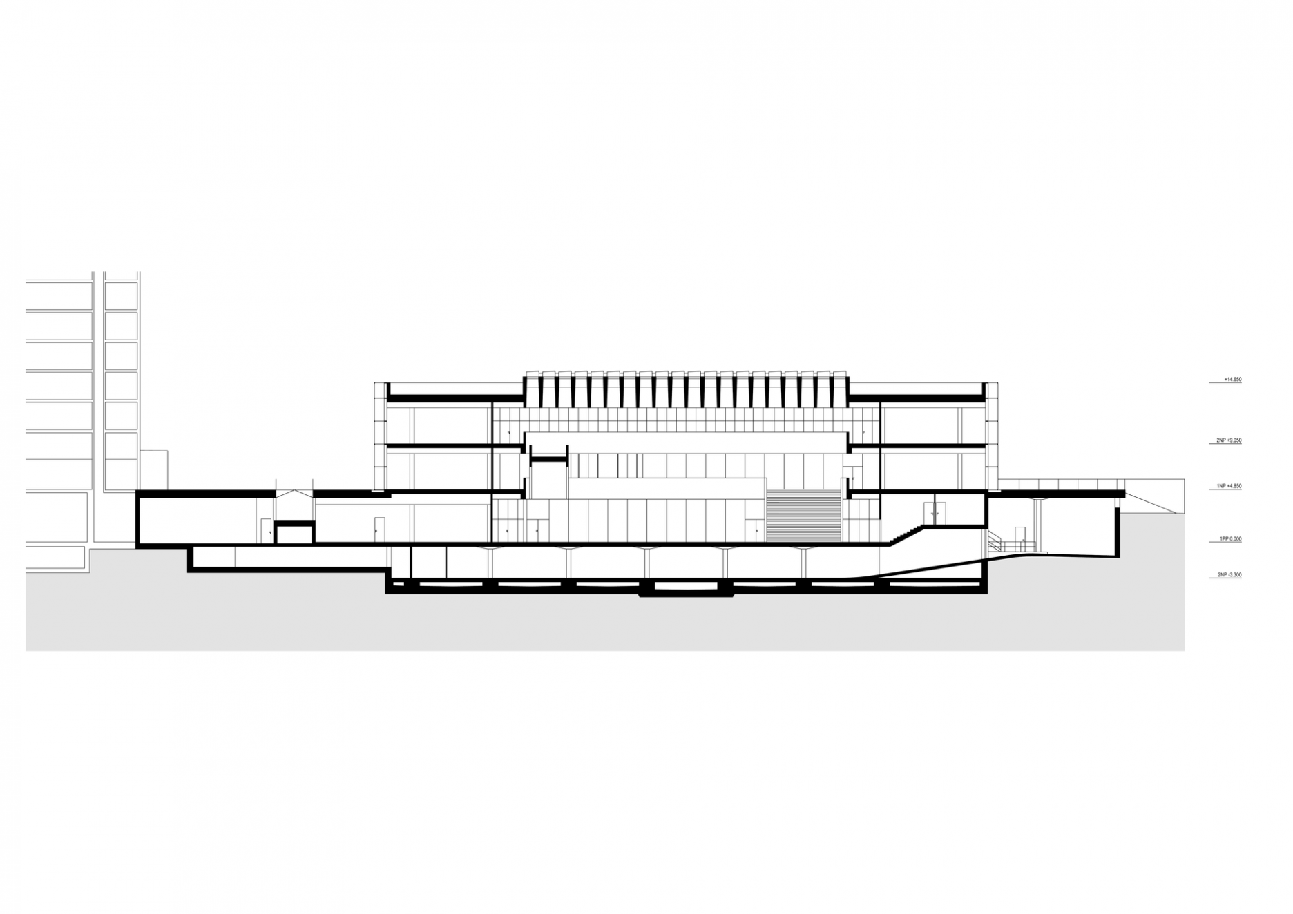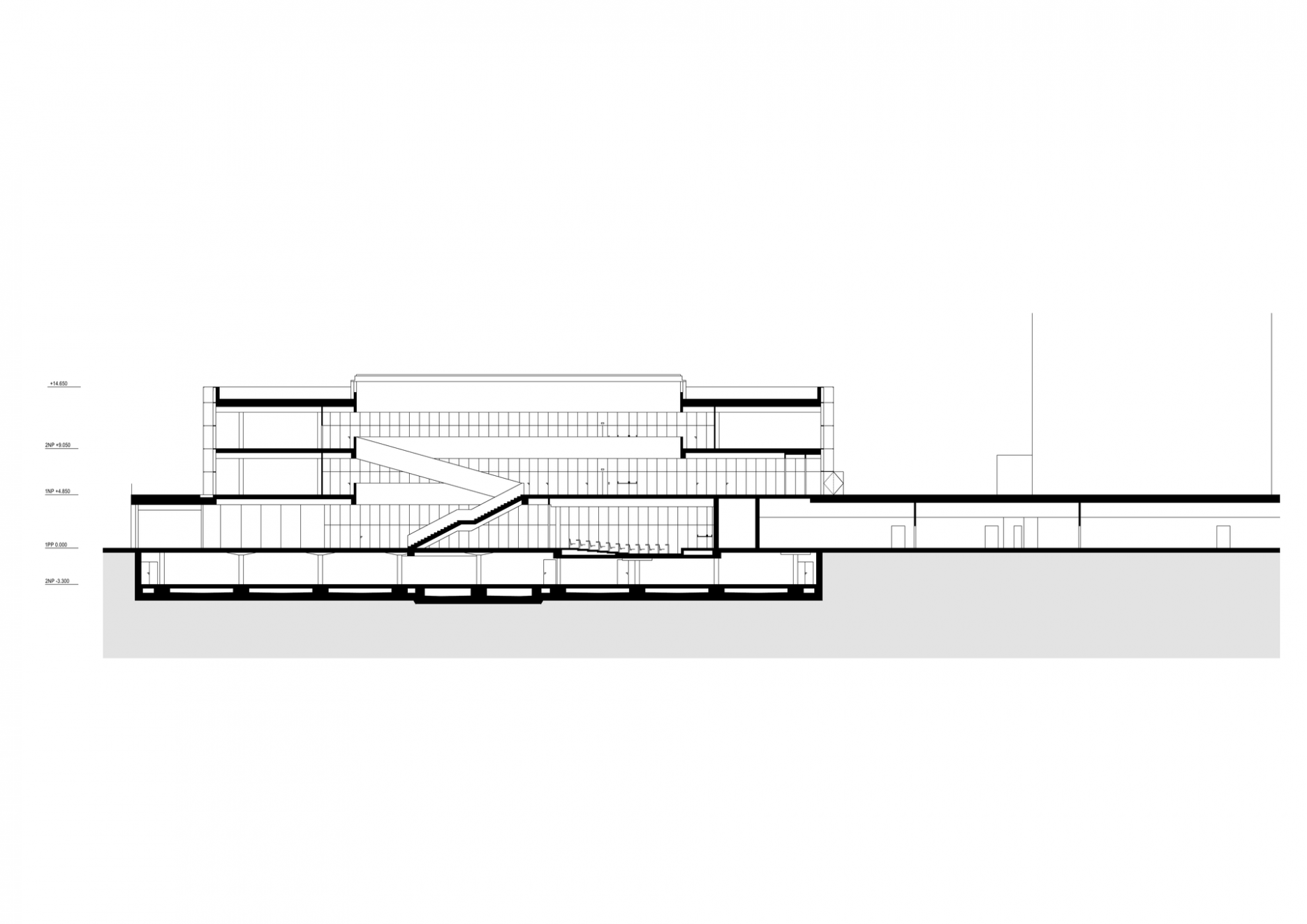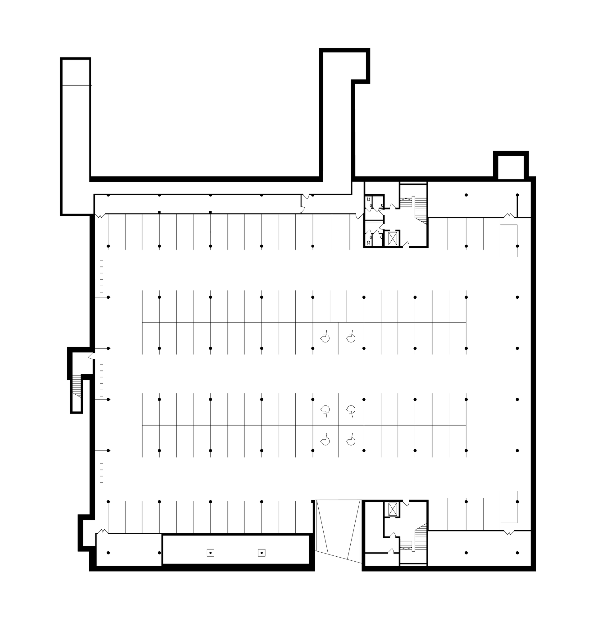 Takéto riešenie zabezpečilo kompaktné a účelné usporiadanie všetkých potrebných priestorov a funkcií. Naviac s maximálnym možným využitím prvkov pôvodnej konštrukcie. Oceľobetónové stropy zostali zachované v obvodovom prstenci. Priestory pre vnútornú dvoranu boli vyrezané. Subtílne oceľové stĺpy pôvodných zdvíhaných stĺpov dostali novú pohľadovú betónovú škrupinu, ktorá má okrem estetického aj protipožiarne určenie.