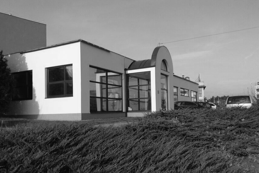 Abstraktne poňatá fasáda zároveň funguje ako reklamný pútač na firmu samotnú. Jednoduchou úpravou interiéru vznikol aj nový flexibilný showroom, v ktorom sú prezentované jednotlivé segmenty výroby v špecifických, tematicky ladených prostrediach.