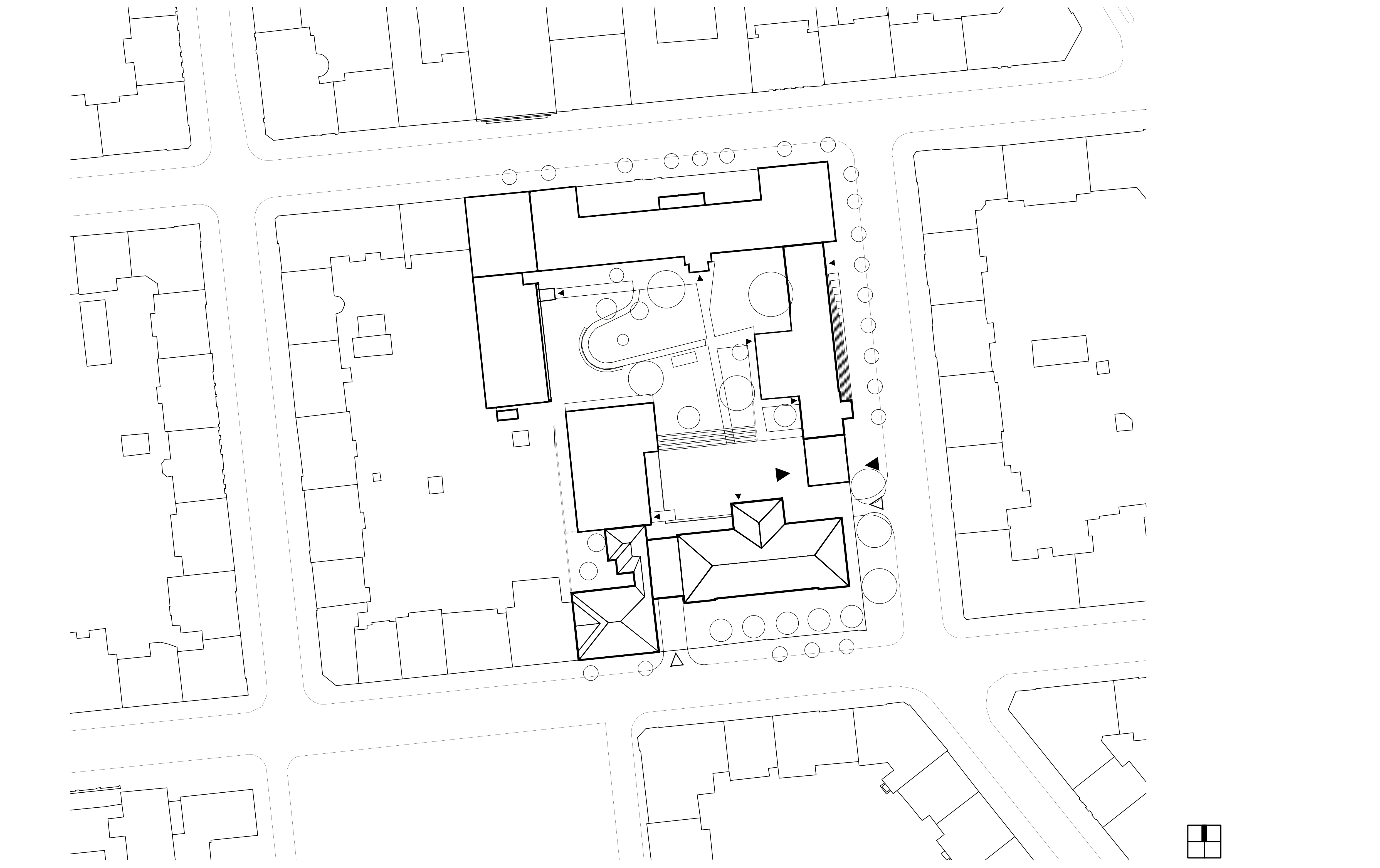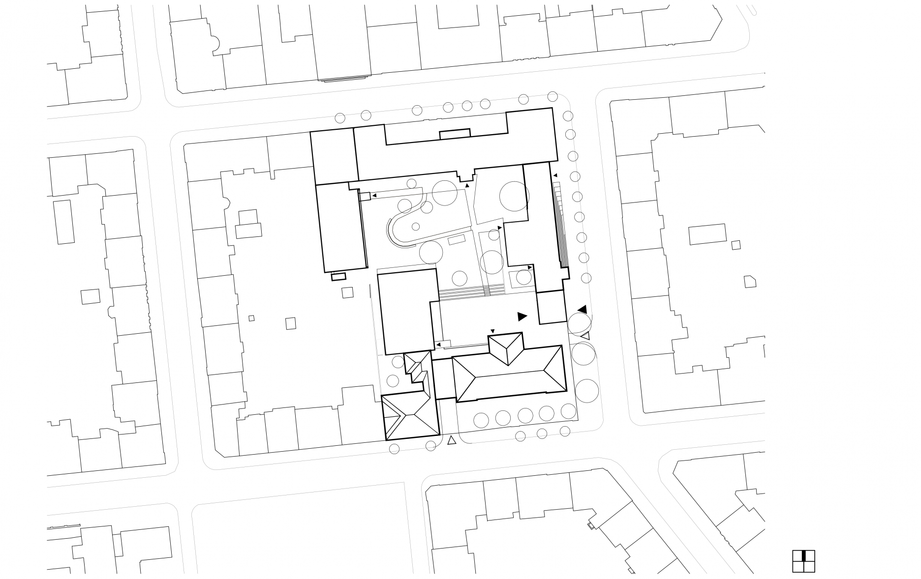 “Během posledních sto padesáti let vzniklé směsici budov, tvořící dnes areál filozofické fakulty, jsme chtěli dát téma tak, aby vzniklo skutečné univerzitní prostředí, universitní kampus. Jeho středem, stmelujícím prvkem i výjimečným, volným prostorem je vnitřní dvůr, který kdysi býval částí zahrady městského sirotčince, do něhož byla fakulta v době svého vzniku roku 1920 umístěna,” hovoria o hlavnom motíve návrhu autori.
