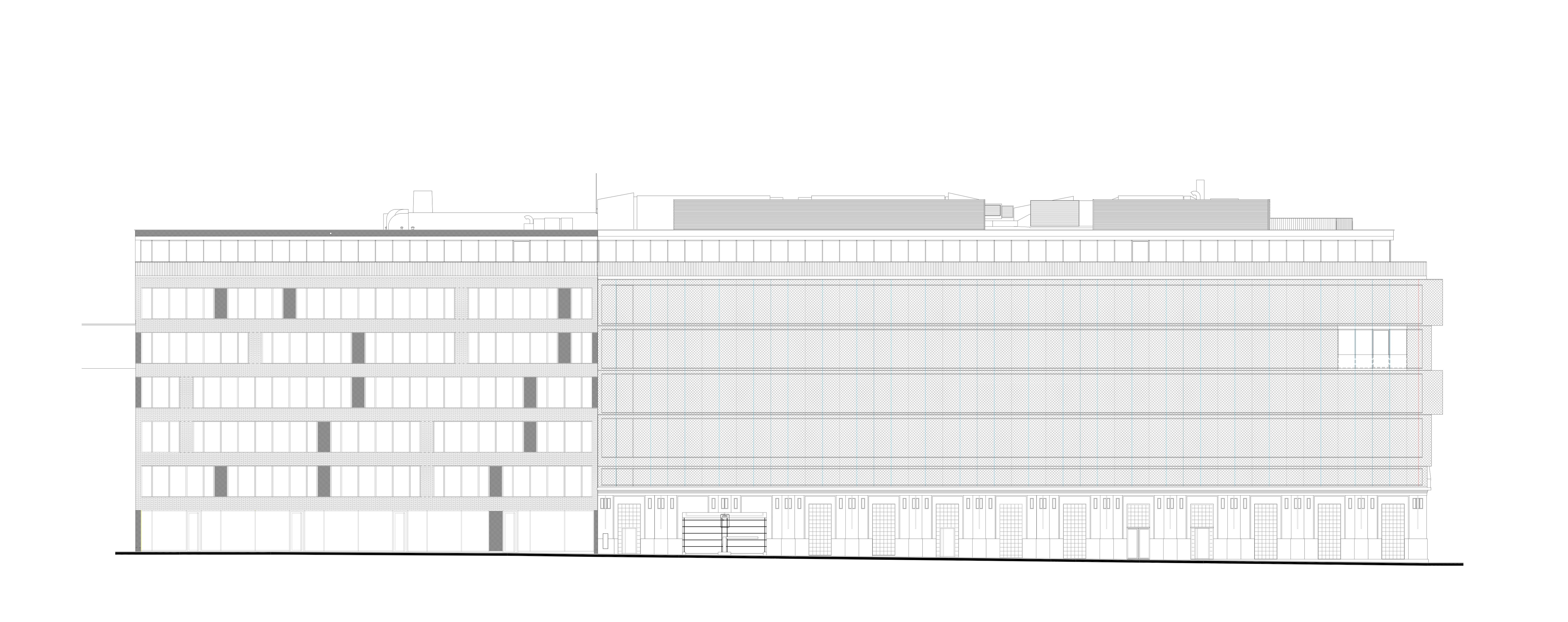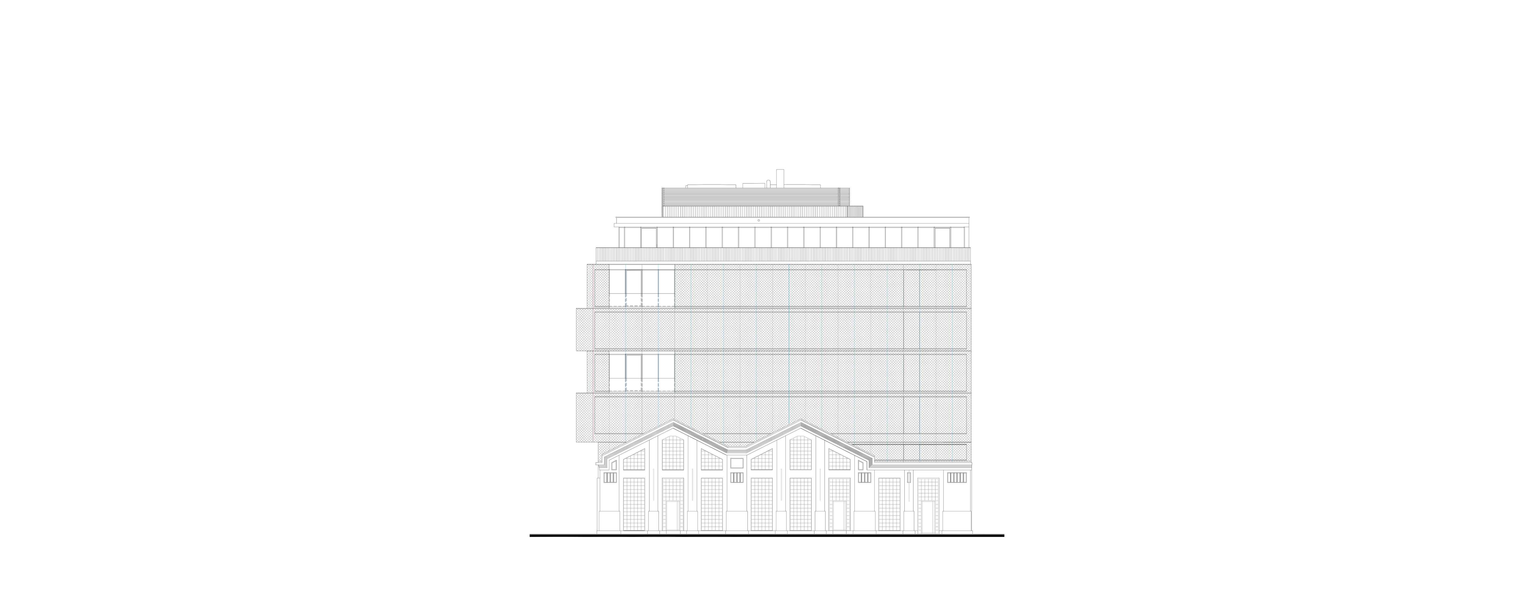 Moderný kancelársky blok na mieste starej smíchovskej električkovej vozovne je v podstate novostavbou. Z pôvodnej budovy ostali zachované historické obvodové múry do ulíc Na Valentínce a Svornosti. Pamiatkovo chránená fasáda je k novým stropným doskám prichytená sústavou oceľových ťahadiel.