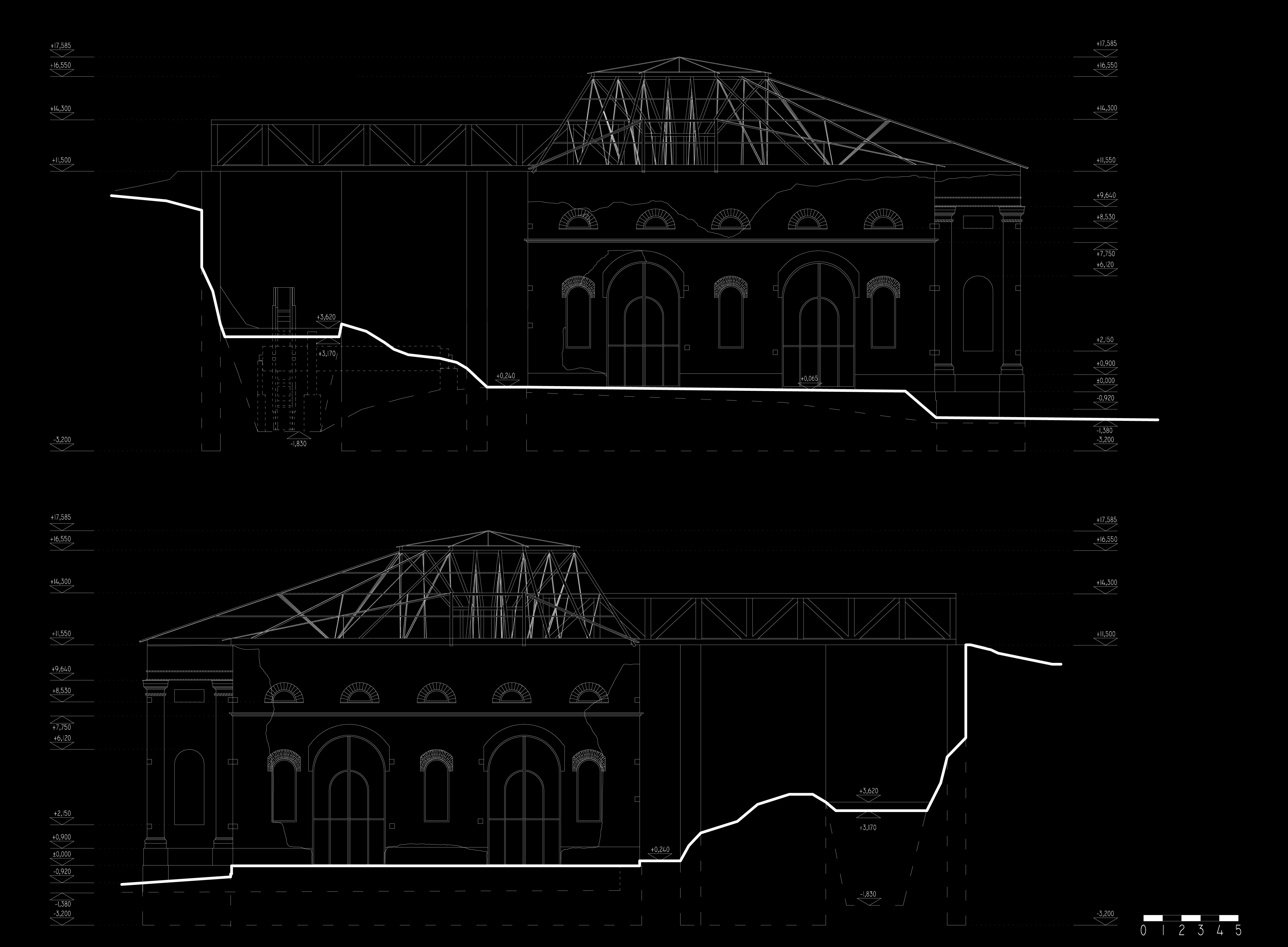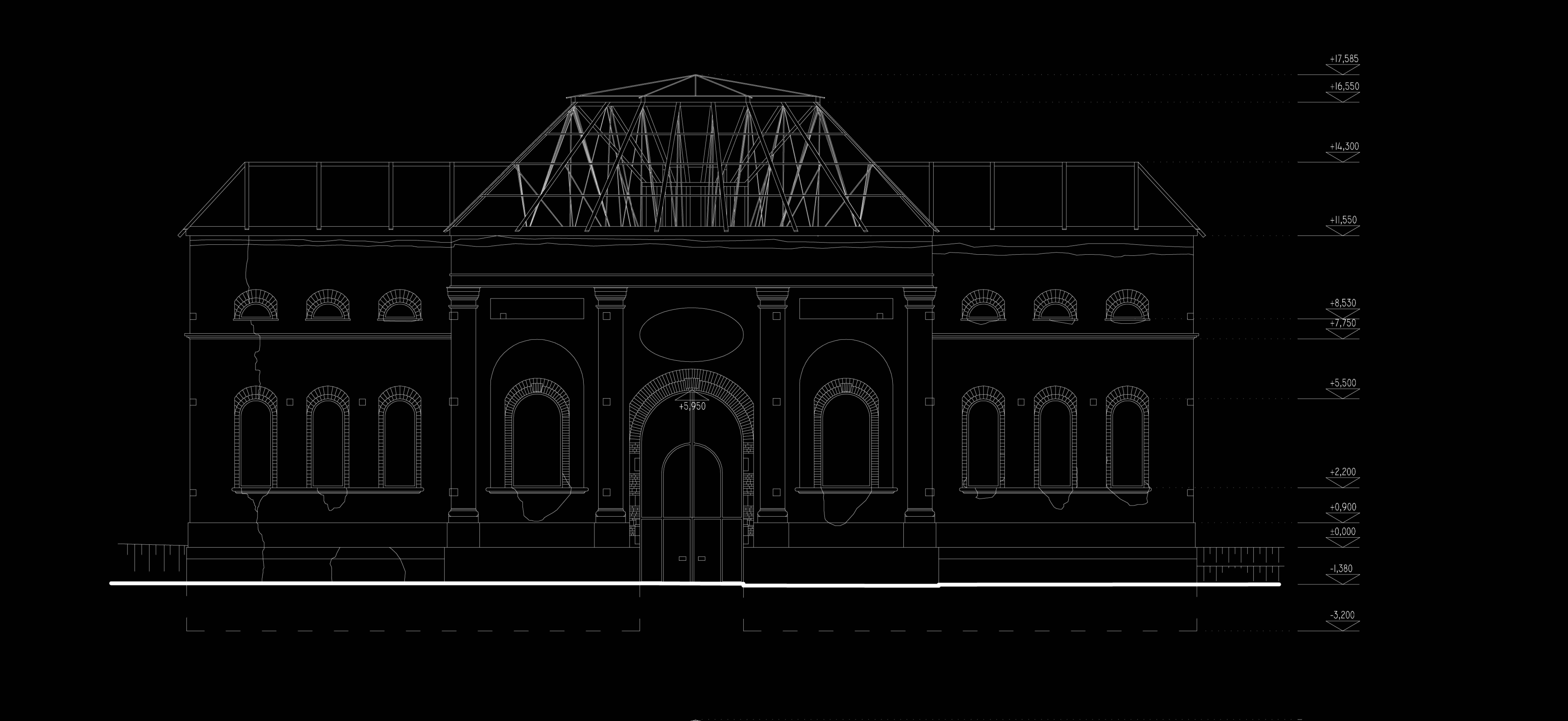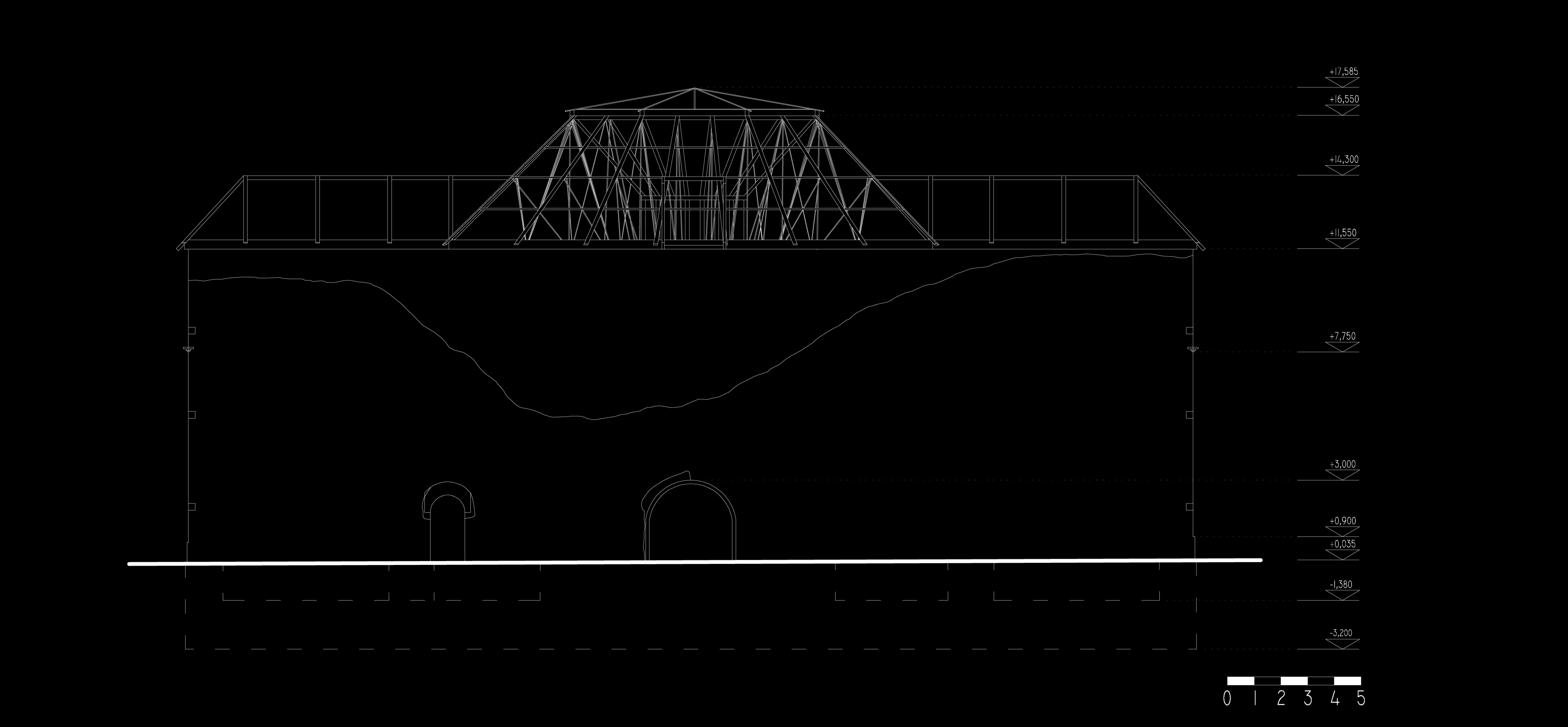 Prestrešenie Františkovej huty je navrhované ako novotvar. Materiálové prevedenie: sklo a oceľ. Strechu tvorí sústava väzníkov, ktoré sú opreté o oceľovú pomúrnicu, ktorá je osadená na doplnené korunné murivo (tehla farebne odlíšená od pôvodného muriva). samotné väzníky sa skladajú z oceľových profilov, a oceľových lán. Odvetranie strechy je zabezpečené škárami. Odvodnenie je umožnené vyspádovaním strechy a jej presahom cez obvodový plášť, bez použitia pododkvapového žľabu.