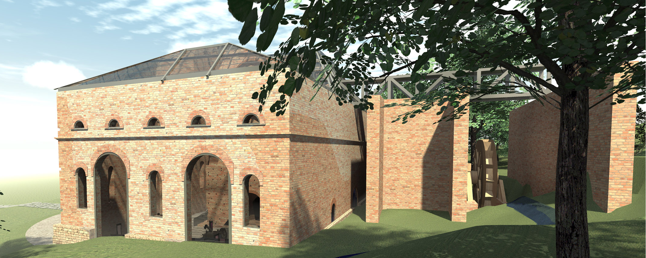 Objekt hámra sa dochoval len v pôdorysnej stope. Na tejto navrhujeme vystavať novostavby. Hmotovo-priestorové riešenie je nové, lebo z hámra sa nezachovala dokumentácia, ktorá by naznačovala niečo o jeho architektúre. Kompozícia však nadväzuje na komponovanie Františkovej huty. Materiál muriva je totožný s materiálom ktorý je použitý na doplnenie muriva huty. Strešná krytina vychádza z predpokladu, že na pokrytie sa v dobe vzniku pôvodnej budovy požil tradičný drevený šindeľ, alternatívny materiál je pozinkovaný plech. V pôdorysnej stope sa v blízkosti huty a hámra zachoval ešte jeden objekt. Jeho funkcia ani hmotovo-priestorové či architektonické riešenie nie je známe. Navrhovaná obnova spočíva v náznakovej rekonštrukcii. Táto má byť vystavaná ako jednoduchá oceľová konštrukcia. Súčasťou návrhu je aj obnovenie kanála, ktorý slúžil na pohon kolies, ktoré uvádzali do pohybu dúchadlové mechy. Pričom k budove huty navrhujeme umiestniť model kolesa.