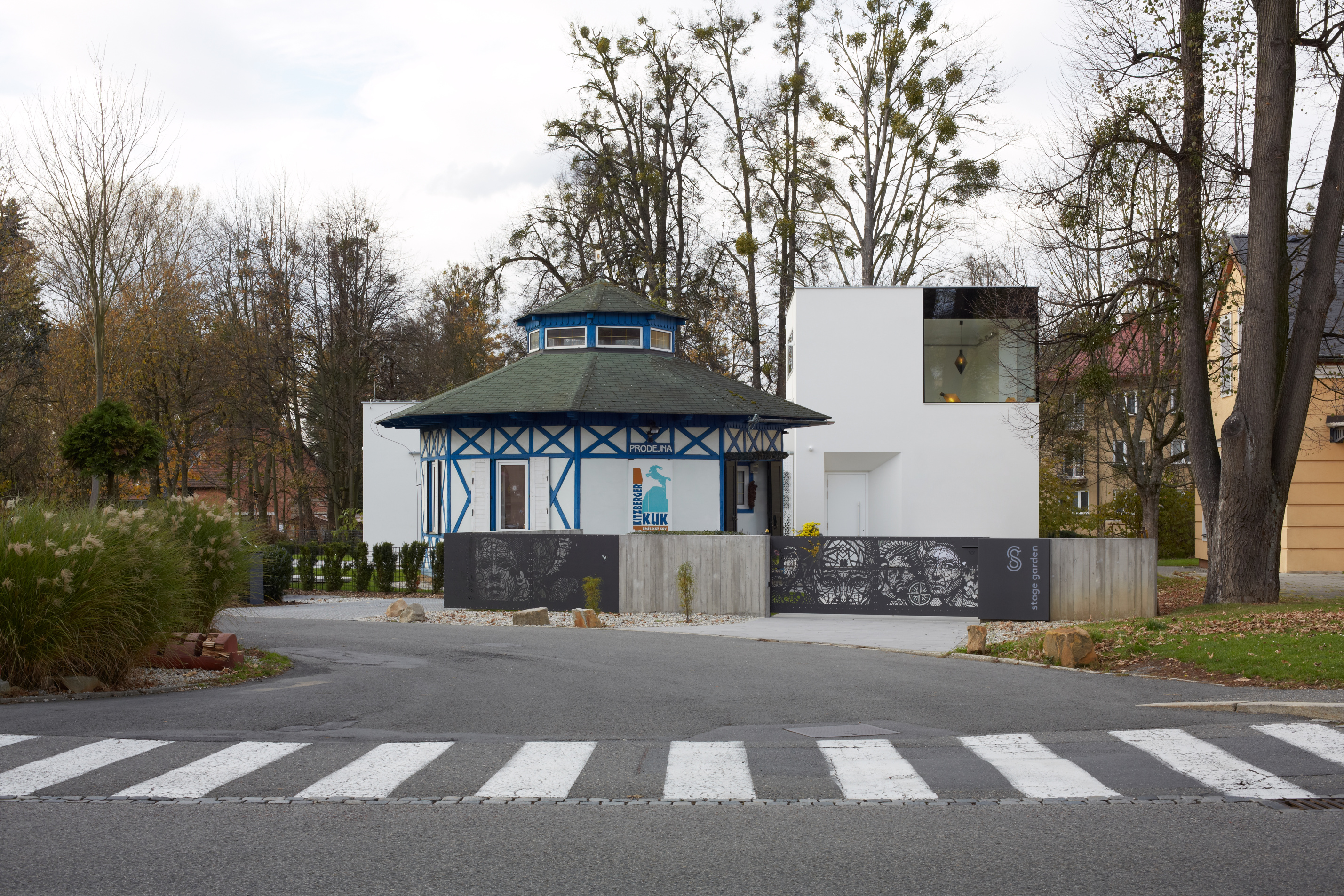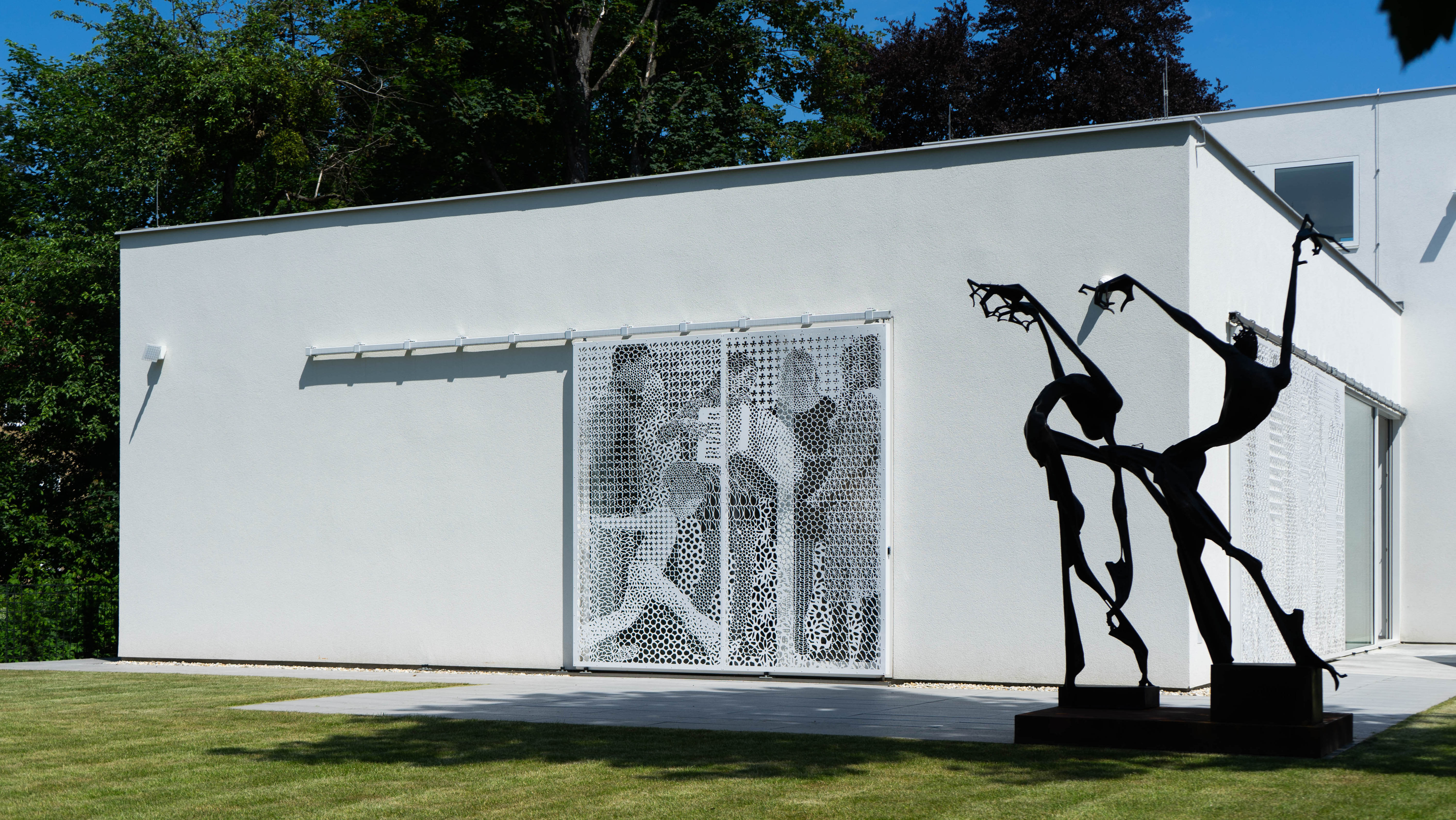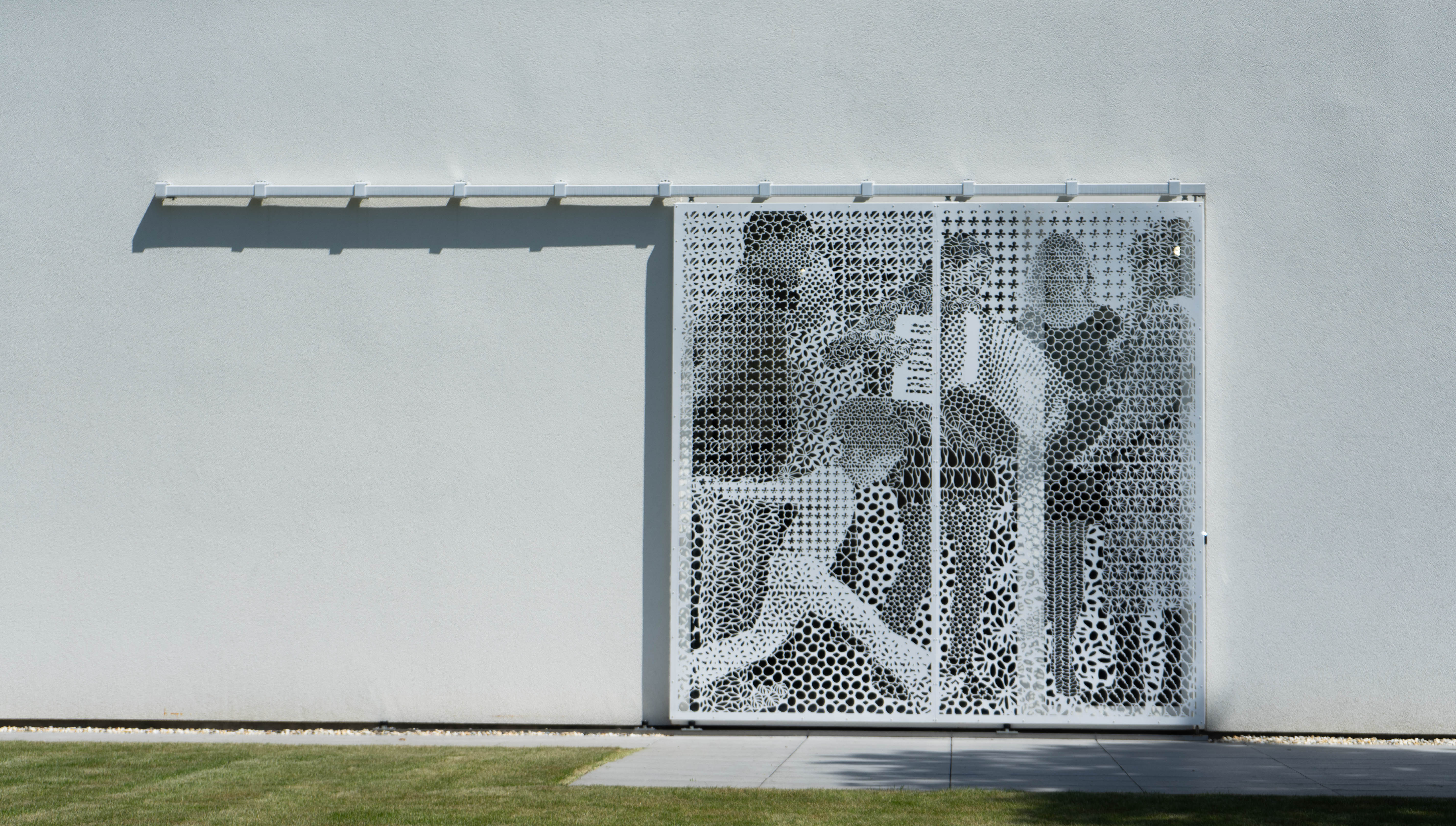 Dôležitou súčasťou konceptu galérie je oplotenie. Hutné betónové plochy striedajú striedajú s perforované plechové panely a živý plot. Umenie dopĺňa architektúru a naopak, architektúra sa stáva súčasťou umenia.