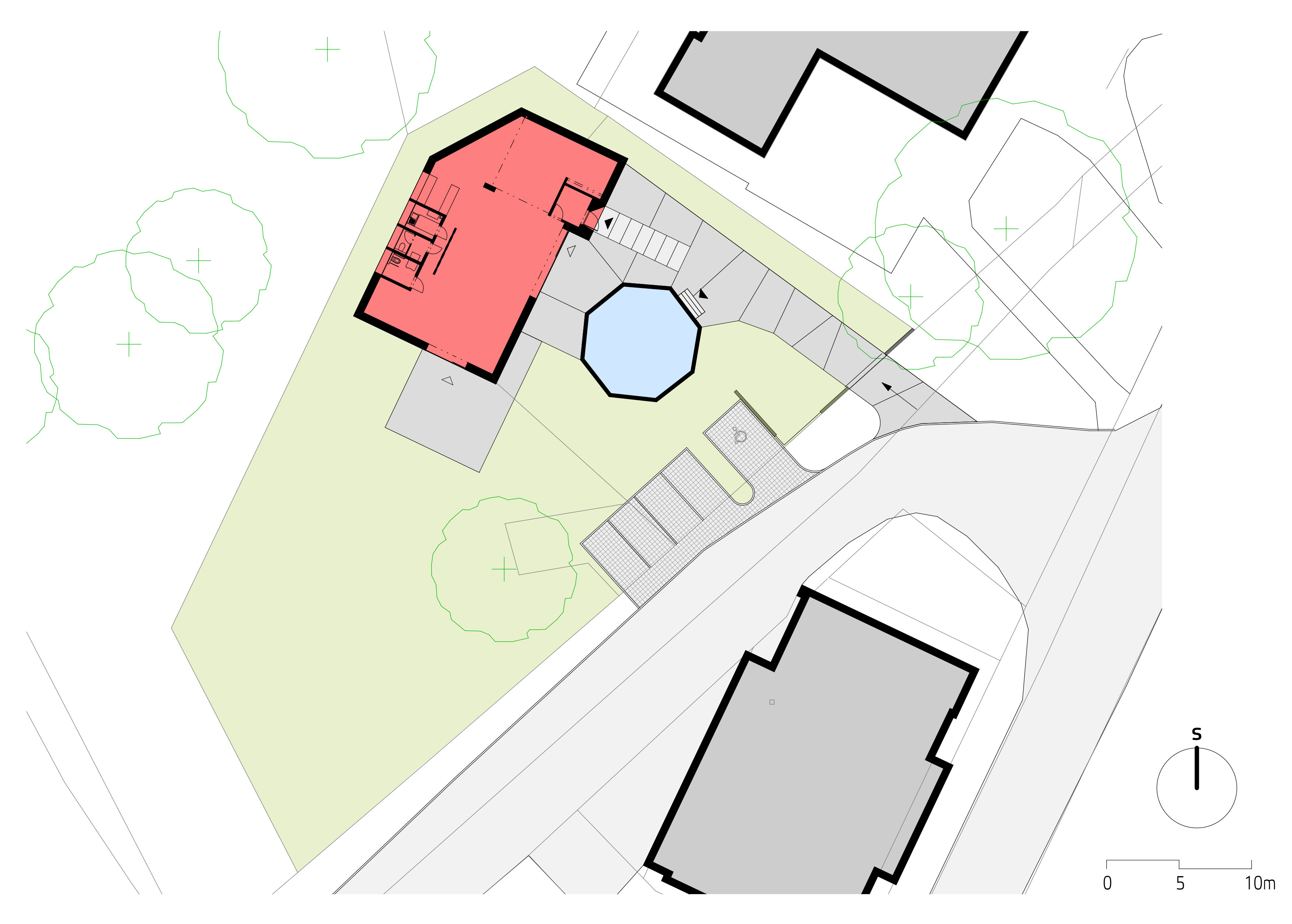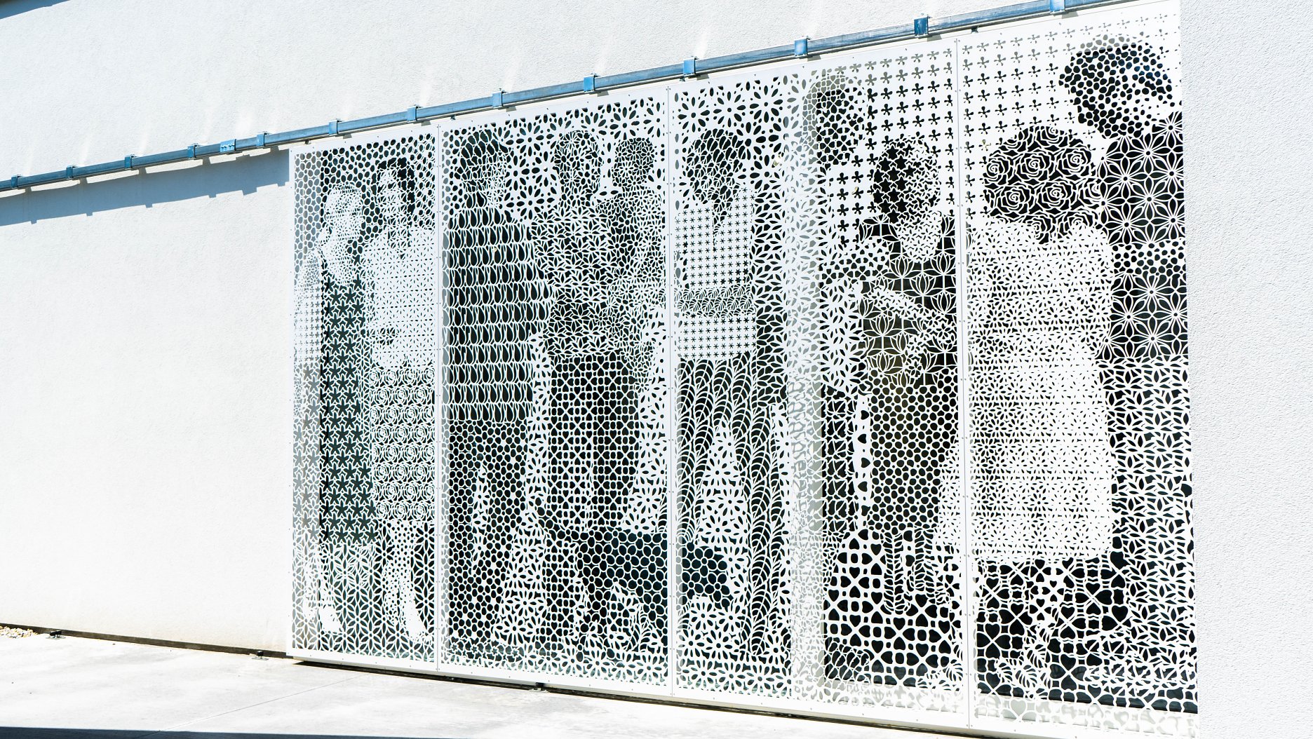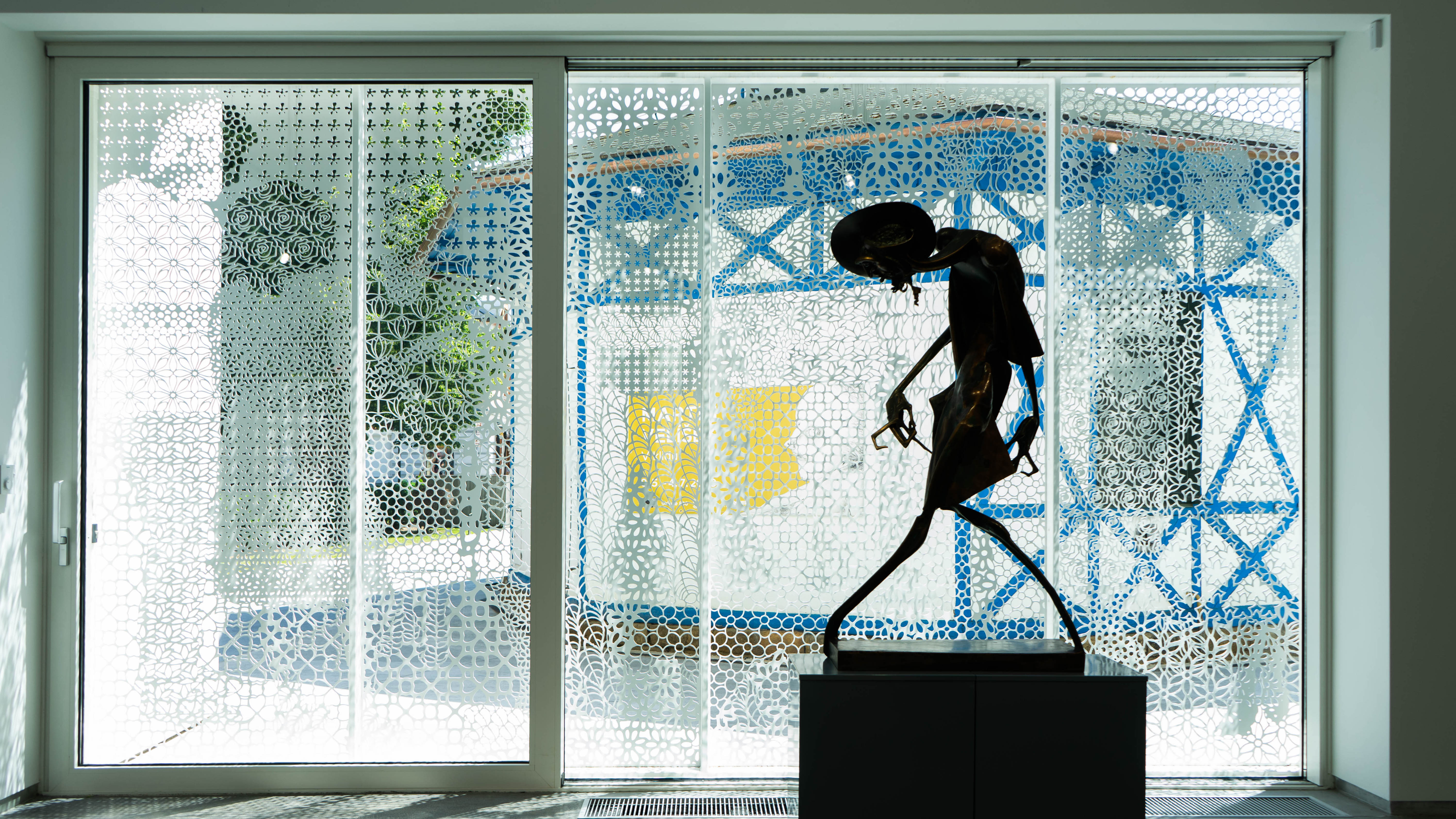 Dôležitou súčasťou konceptu galérie je oplotenie. Hutné betónové plochy striedajú striedajú s perforované plechové panely a živý plot. Umenie dopĺňa architektúru a naopak, architektúra sa stáva súčasťou umenia.
