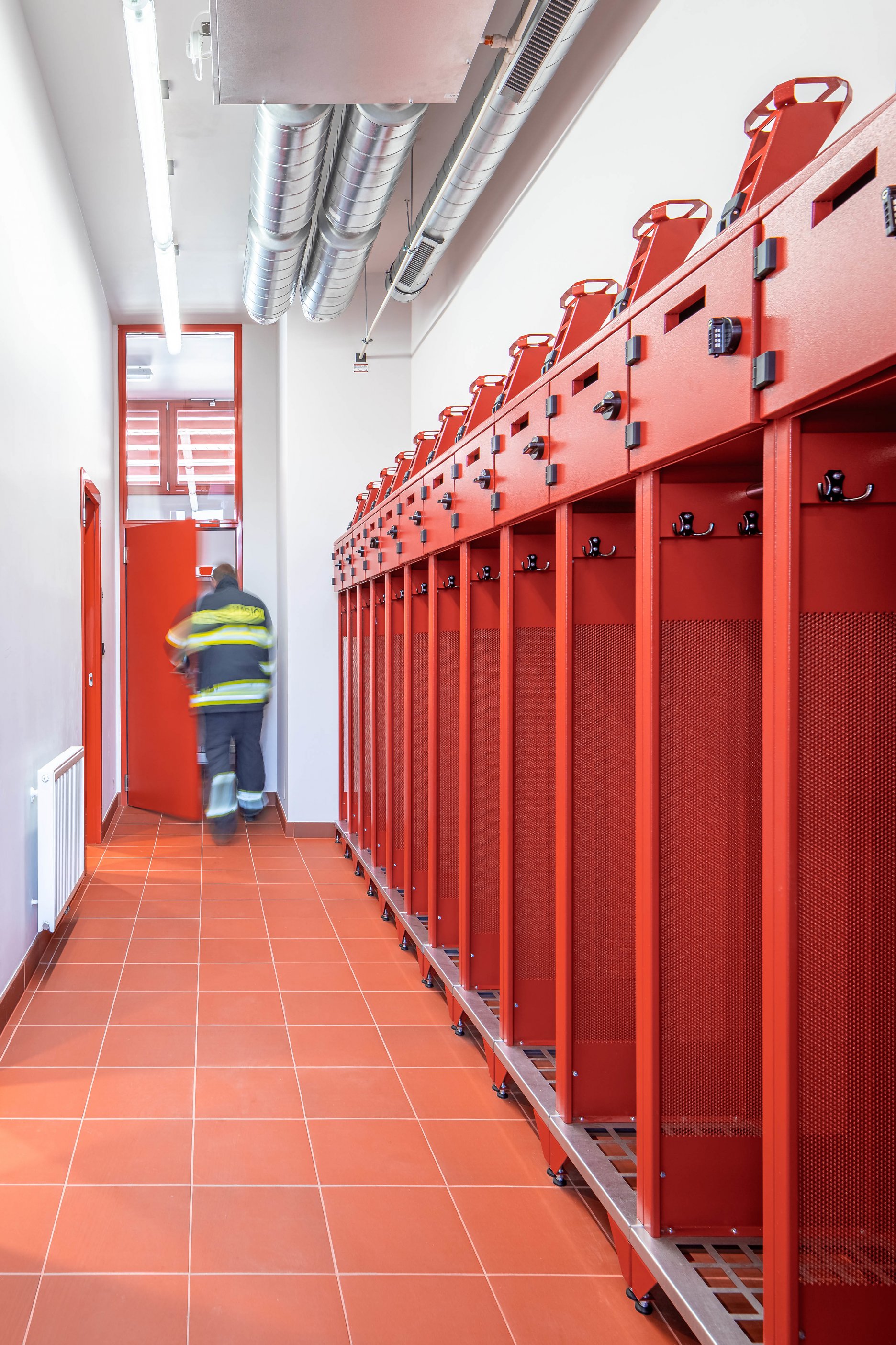 Hasičská zbrojnica je orientovaná čelom do ulice Mělnická. Široké schodisko, vedúce pozdĺž objektu umožňuje dôstojný nástup z ulice do nového verejného priestoru.
