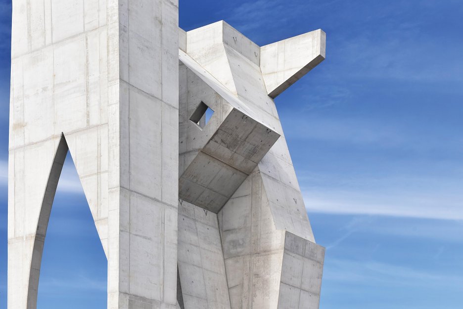 V rámci výstavby po zhotovení monolitů dvou věží - lezecké stěny a polygonu nastal zvláštní moment. Vznikla nádherná socha! (kterou později pohltilo opláštění fasádou a lezeckou stěnou v interiéru). Nestává se příliš často, kdy chcete ponechat stavbu rozestavěnou. Zde tomu tak bylo a proto dokládáme i fotografií ve fázi výstavby.