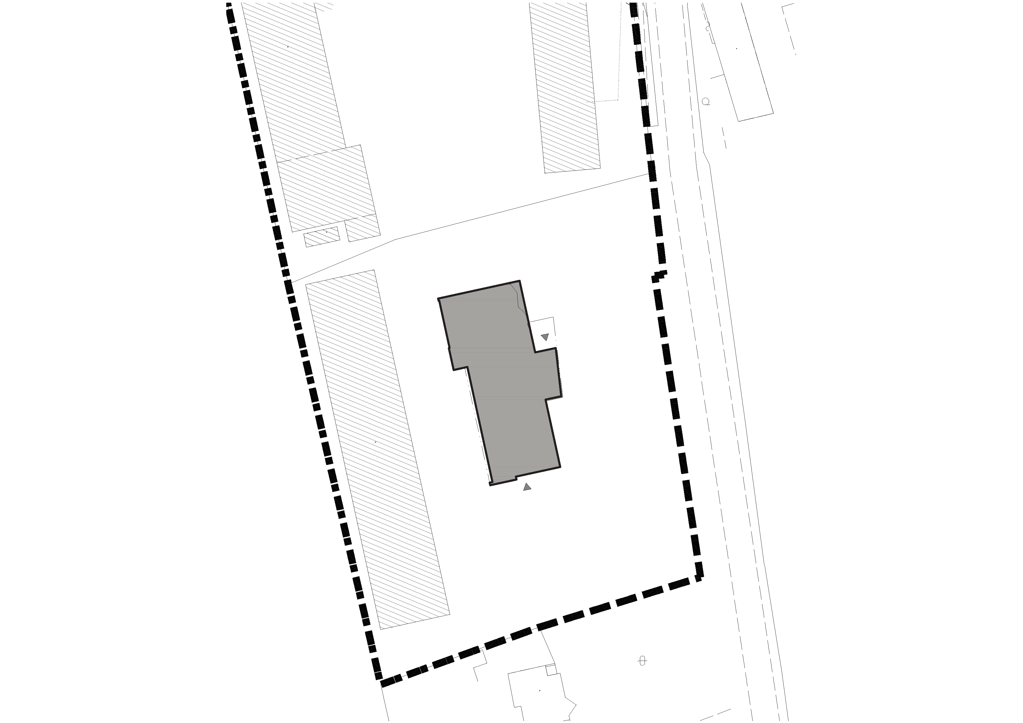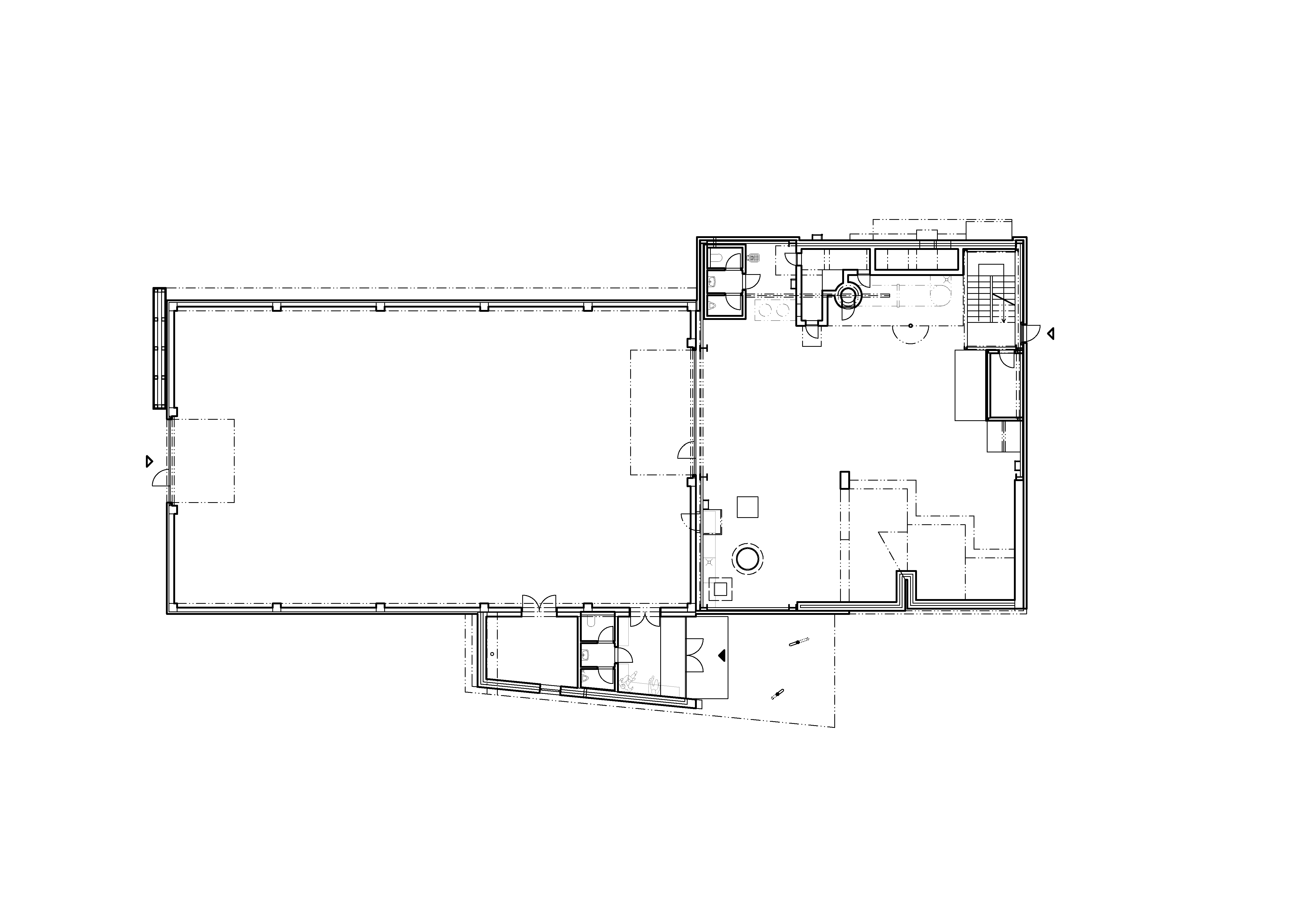 Základná skladba objektu - vzájomne prepojená horizontálna a vertikálna hala je doplnená o vystúpené zázemie, obsahujúce vstup, hygienu a sklady.