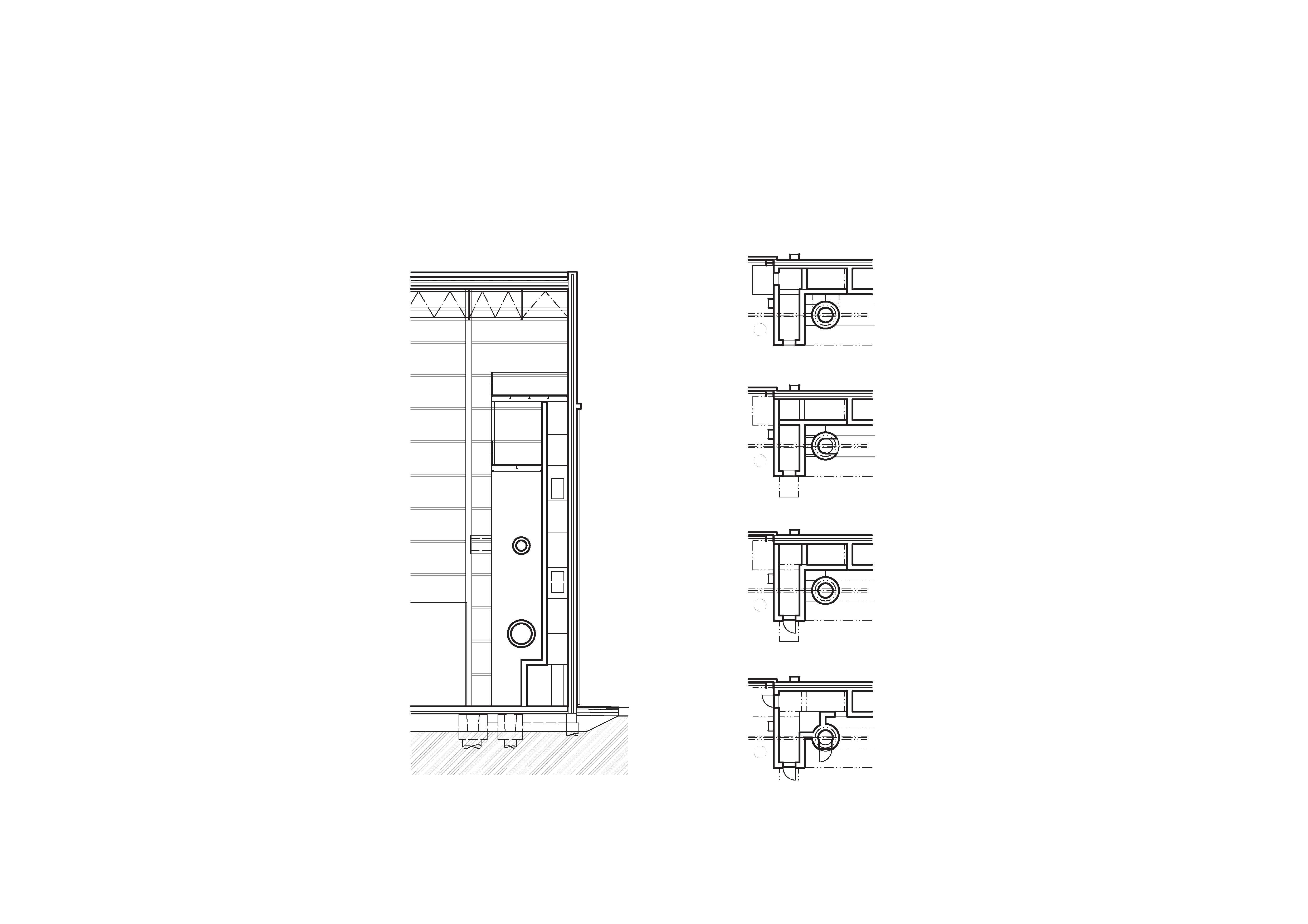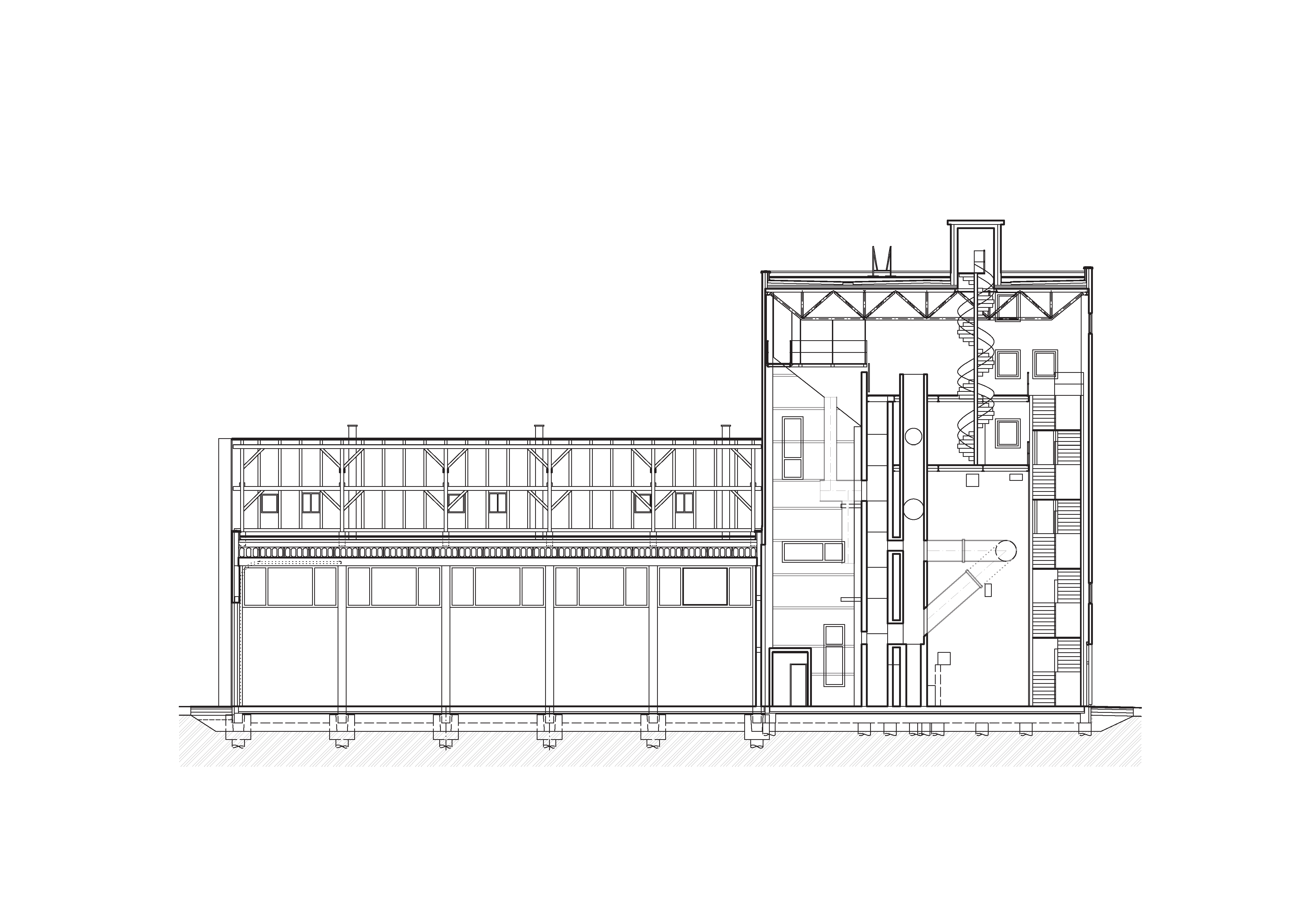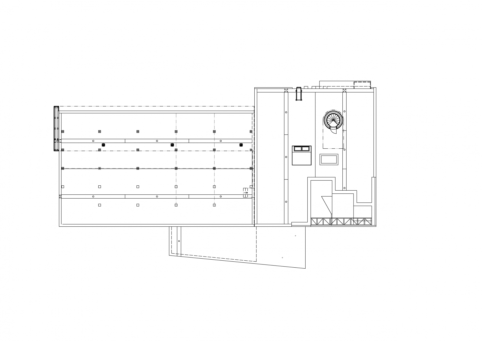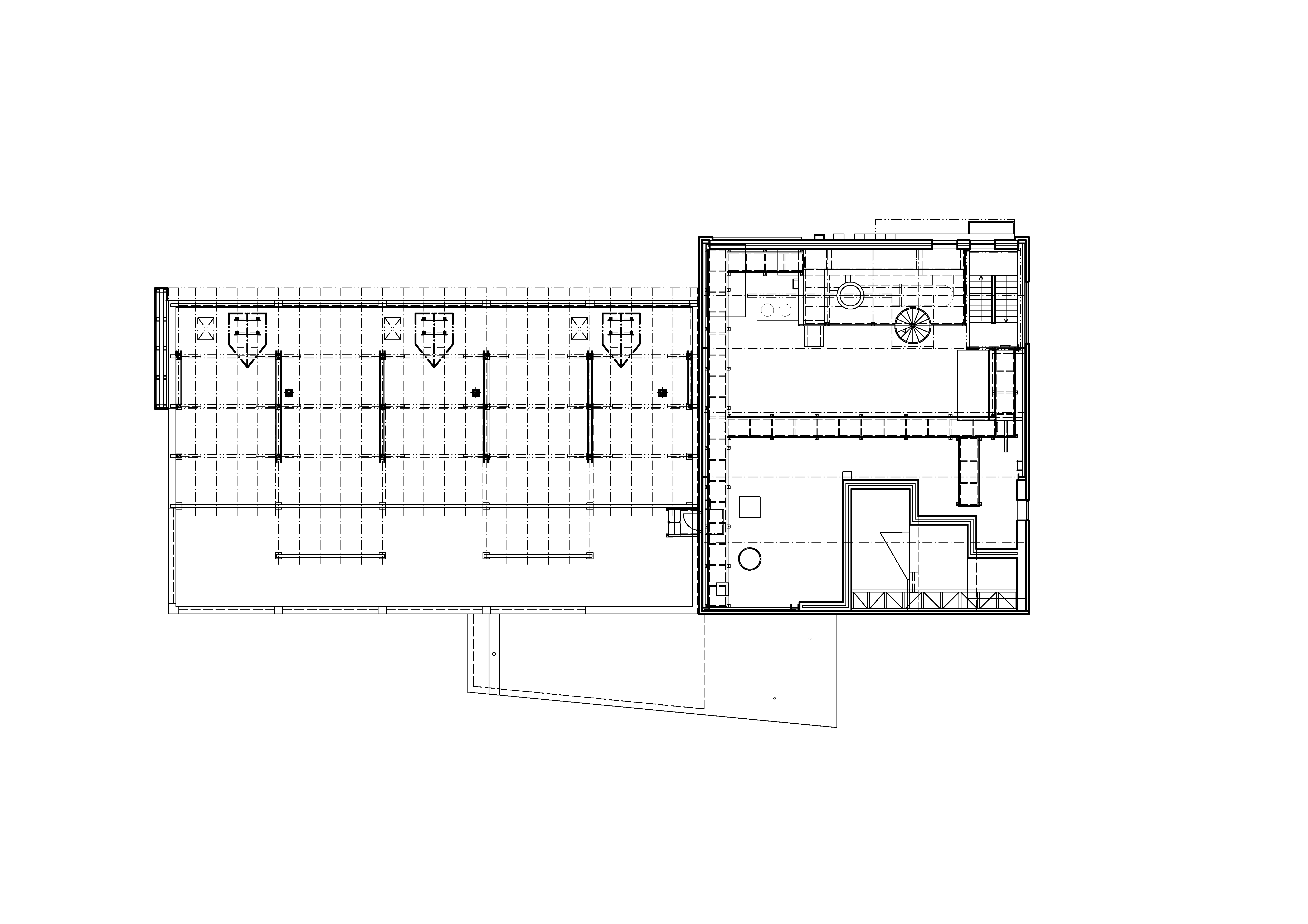 Neobvyklá kombinácia železobetónového a oceľového skeletu reflektuje nielen nároky na univerzálne využitie priestoru, ale aj kotvenie komponentov či umiestnenie istenia. Z tohto dôvodu sú z vodostavebného betónu v pohľadovej kvalite navrhnuté všetky vonkajšie monolitické konštrukcie. V interiéri je rovnaký materiál použitý pri prvkoch umožňujúcich zatopenie vodou.