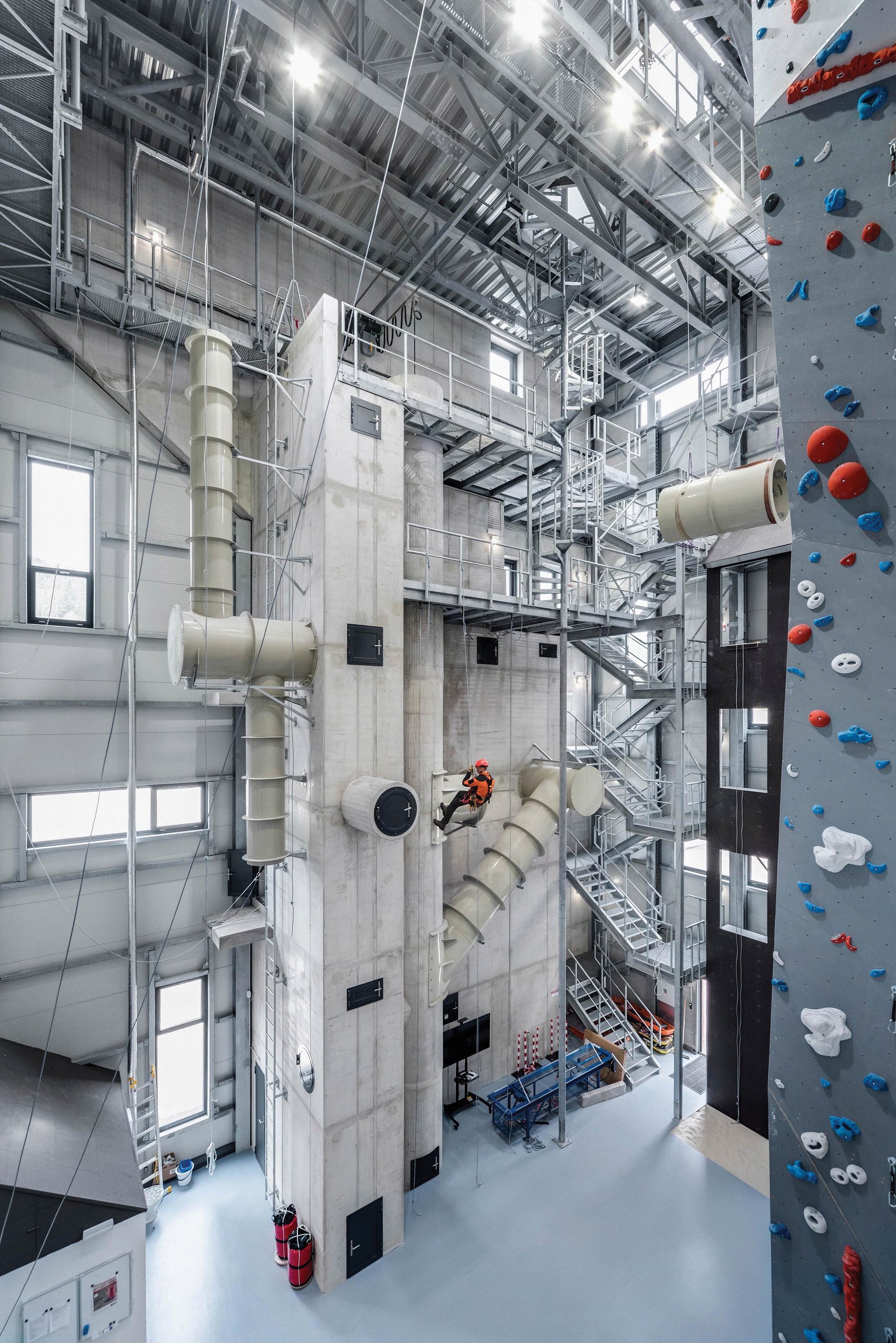 Vnútri zariadenia sa nachádza okrem lezeckých stien aj vybavenie pre simulácie zásahov vo veľmi špecifických podmienkach. Nájdeme tu cvičnú studňovú šachtu alebo adaptabilné polygóny stiesnených priestorov. Sú to imitácie stavebných komponentov, kanalizácií, šácht, ale aj stiesnených prírodných priestorov, ktoré simulujú napríklad jaskyne, pričom sa dá časť bezpečne zaplaviť či zadymiť. V prípade akýchkoľvek problémov je možné využiť núdzové vstupy, priestor je naviac monitorovaný kamerovým systémom.