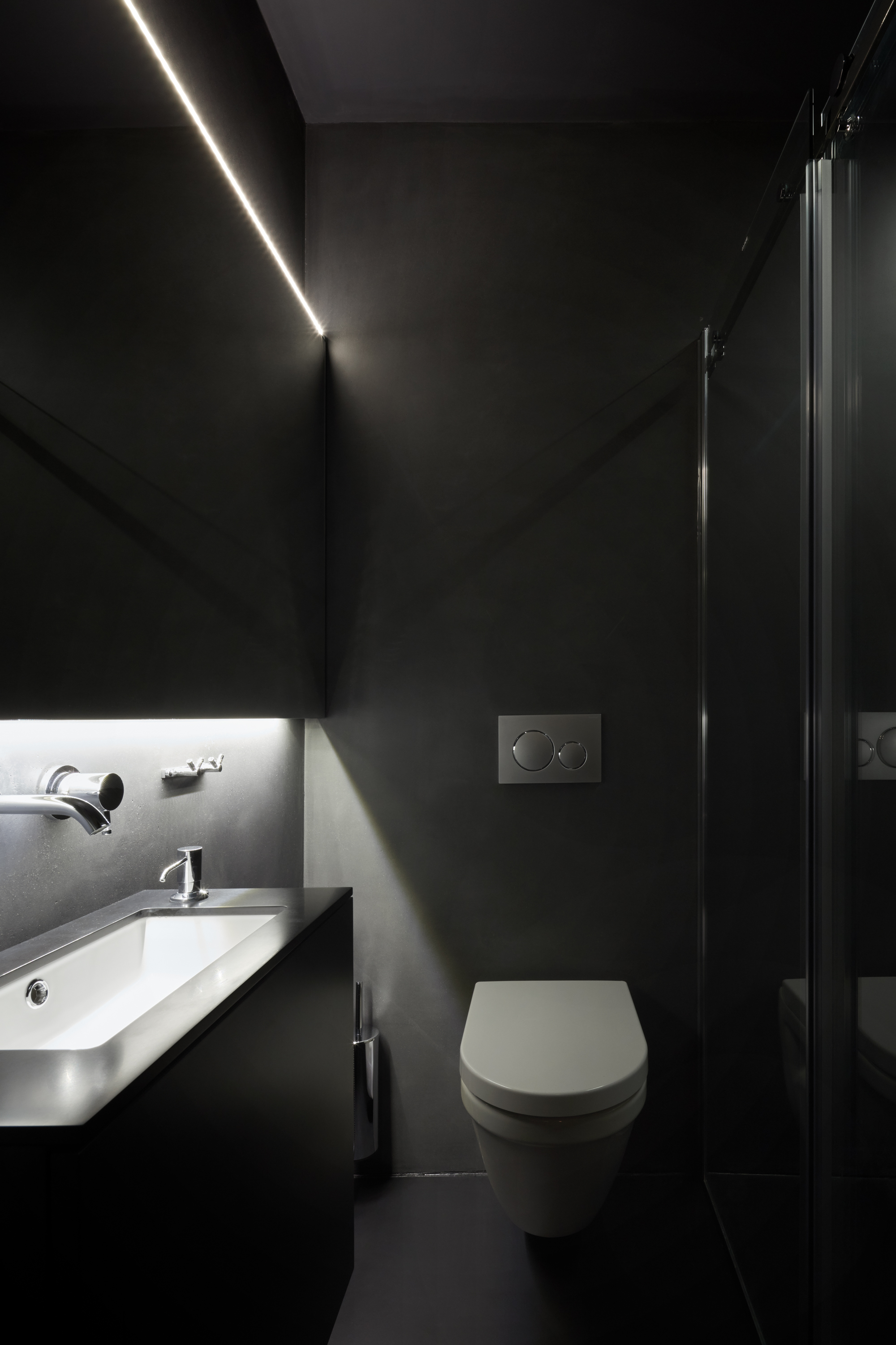 Lenka Míková: Klient mi dal ve výtvarném řešení celkem volnou ruku, měl na interiér nároky hlavně provozní a technické - aby to vyhovovalo danému provozu a jeho specifickým potřebám.. tedy řešila se hodně právě intimita, regulace osvětlení, údržba, anebo například i bezpečnost, aby se nic moc nedalo zničit nebo ukrást.. :)