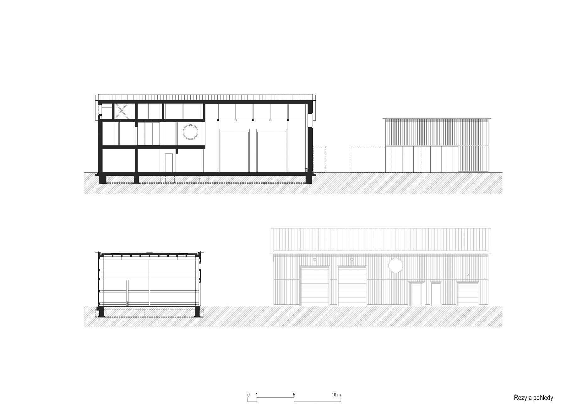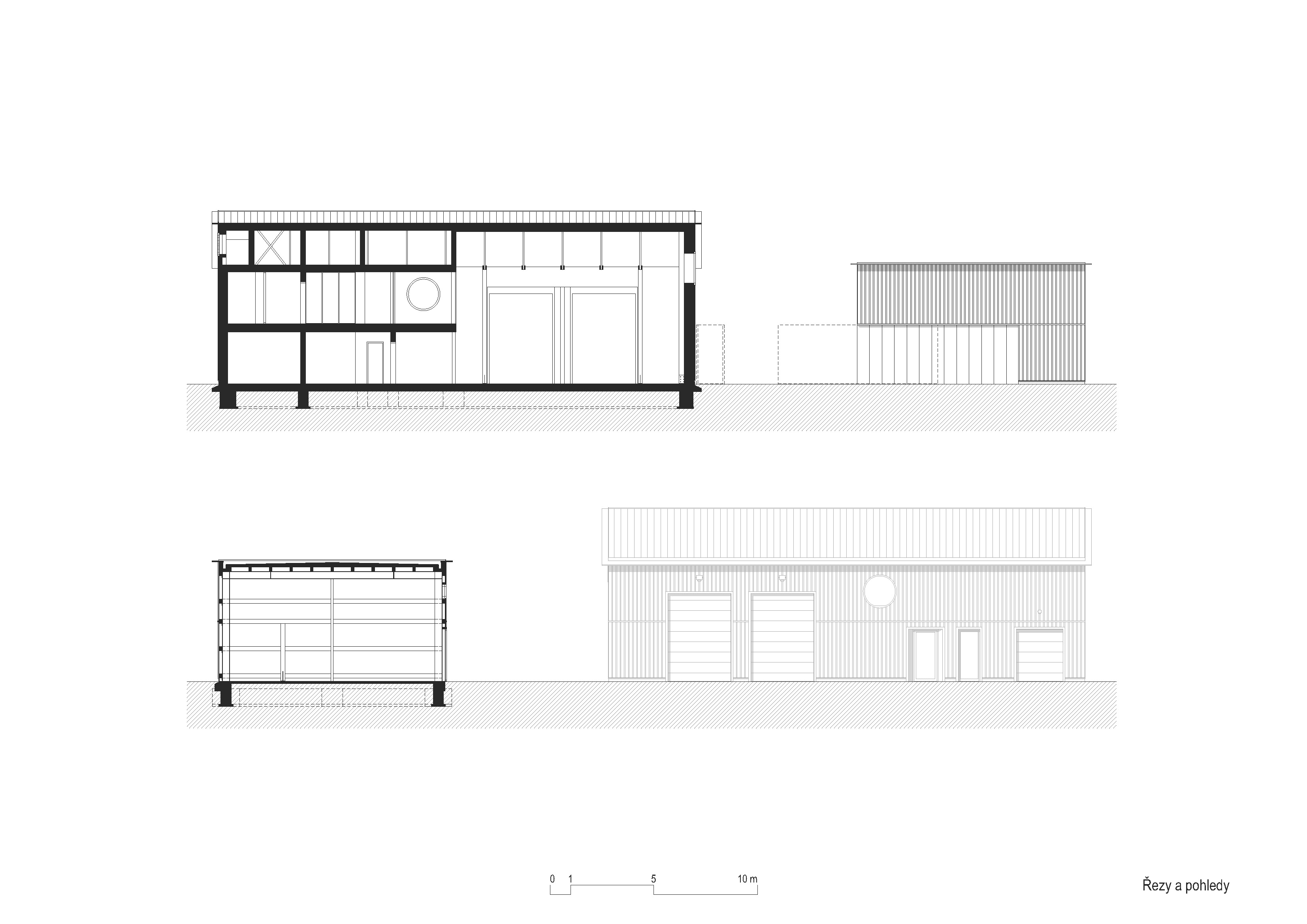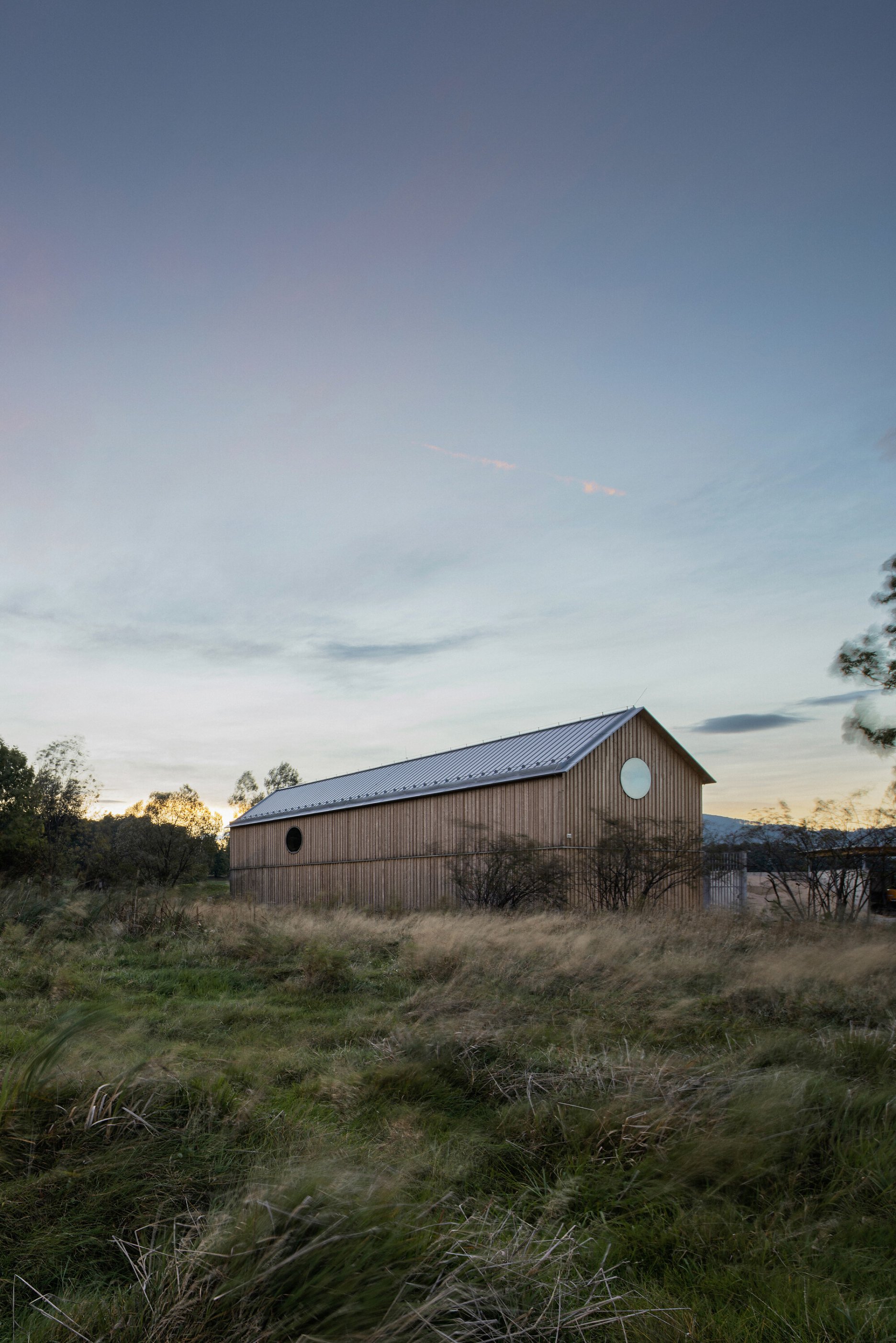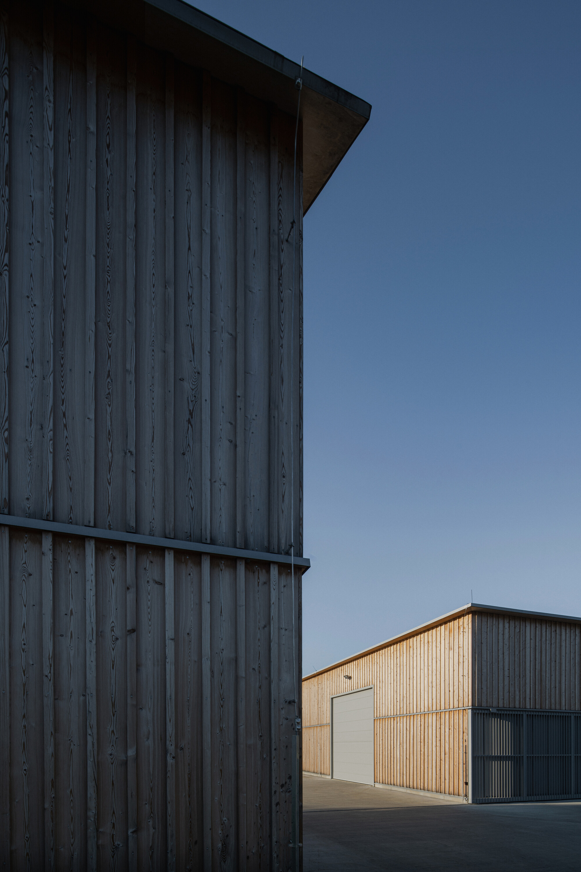 “Z původního očekávání hospodářského zázemí ve standardu plechové skladovací haly se tak úvahy o estetice stavby, jejím členění, a v neposlední řadě o vztahu k širšímu okolí začaly ubírat jiným směrem. Naším záměrem bylo přispět ke kultivaci výstavby v této krajině a to konkrétně použitím měřítka a estetiky, která z ní vychází,” približujú architekti svoj zámer a genézu projektu.