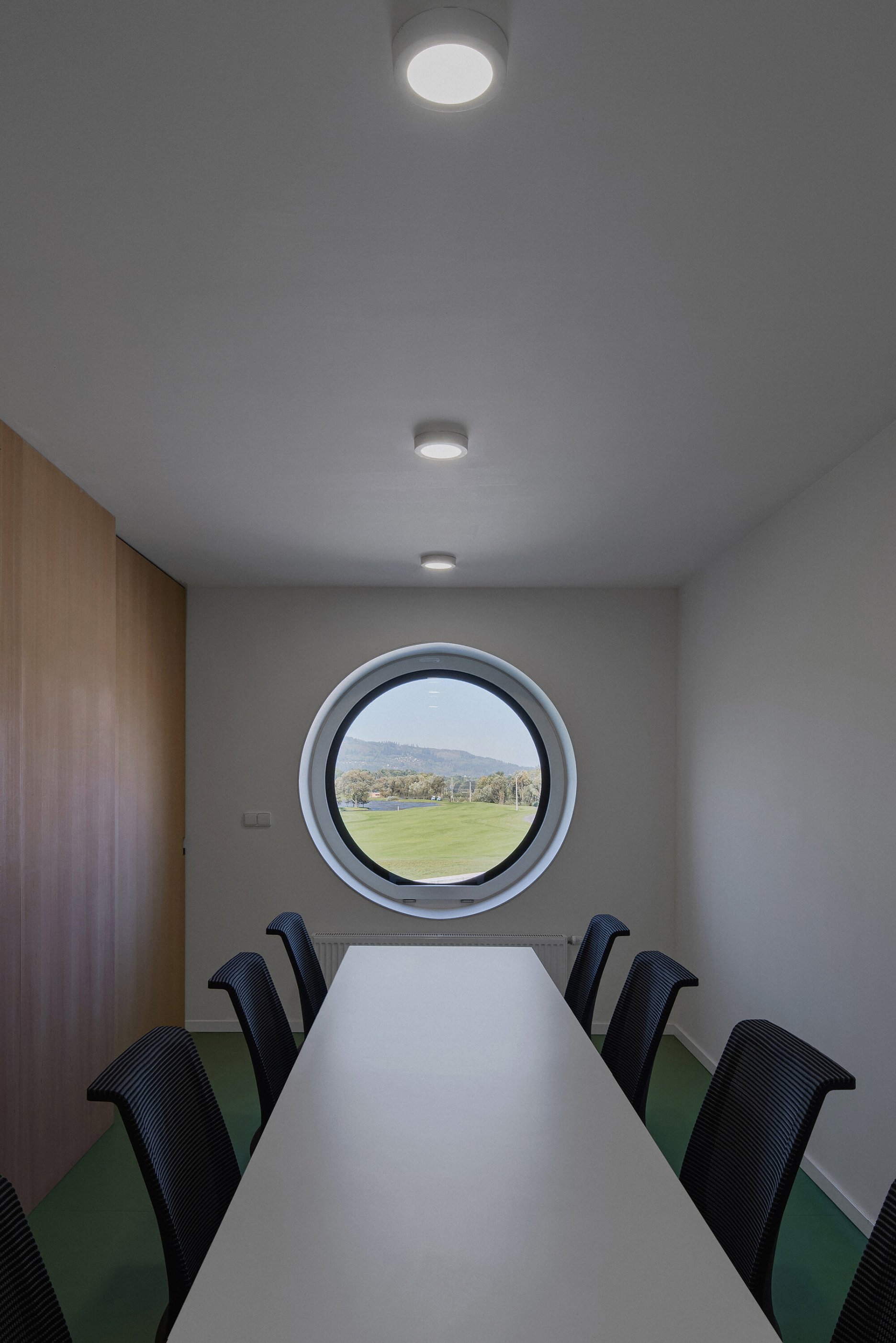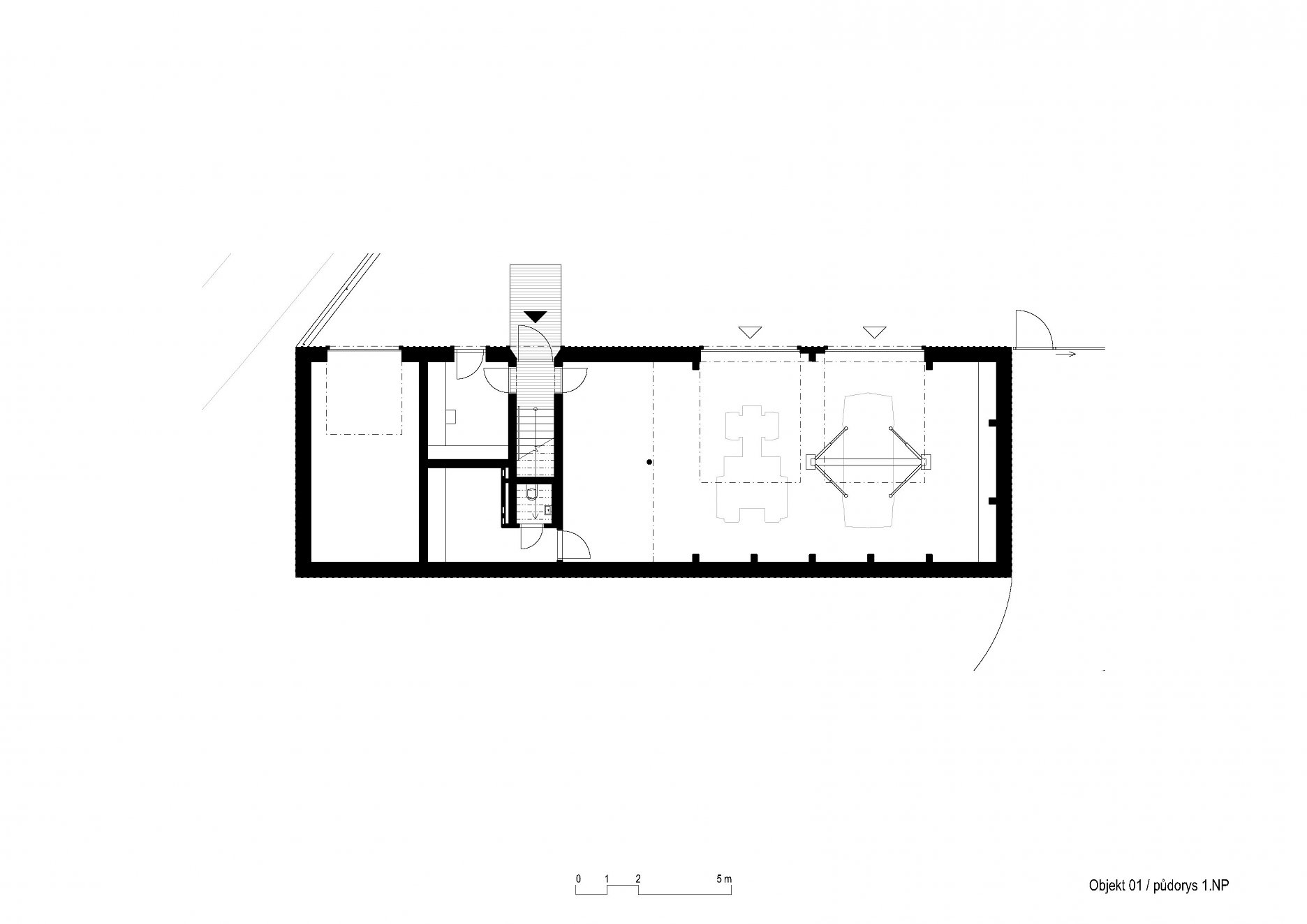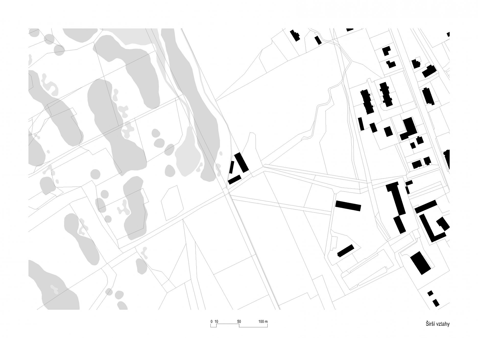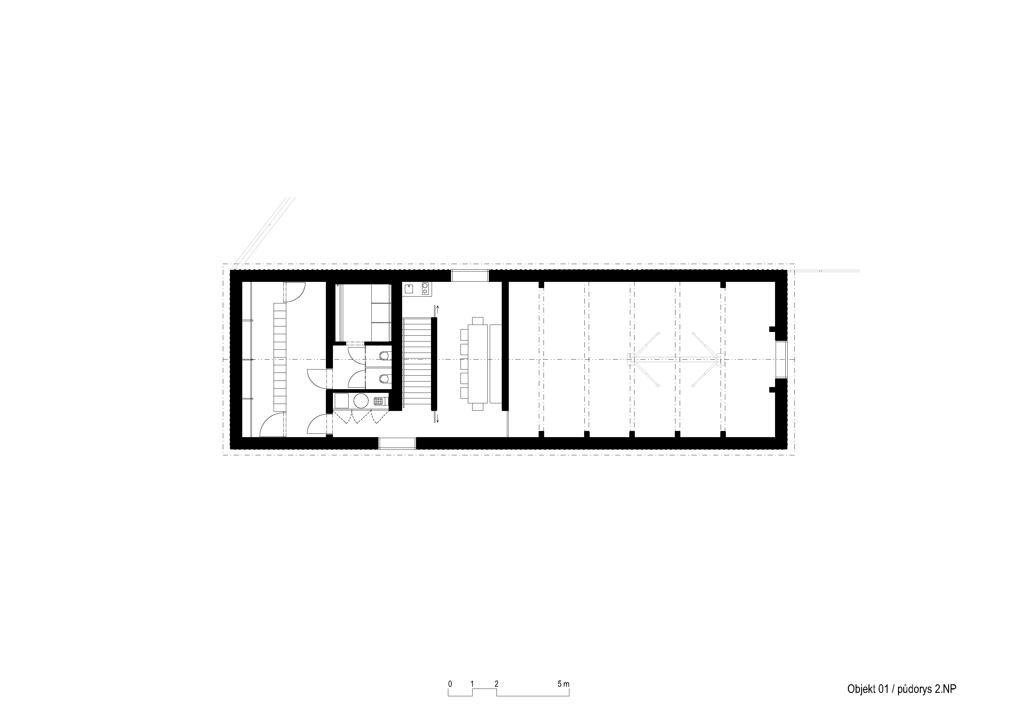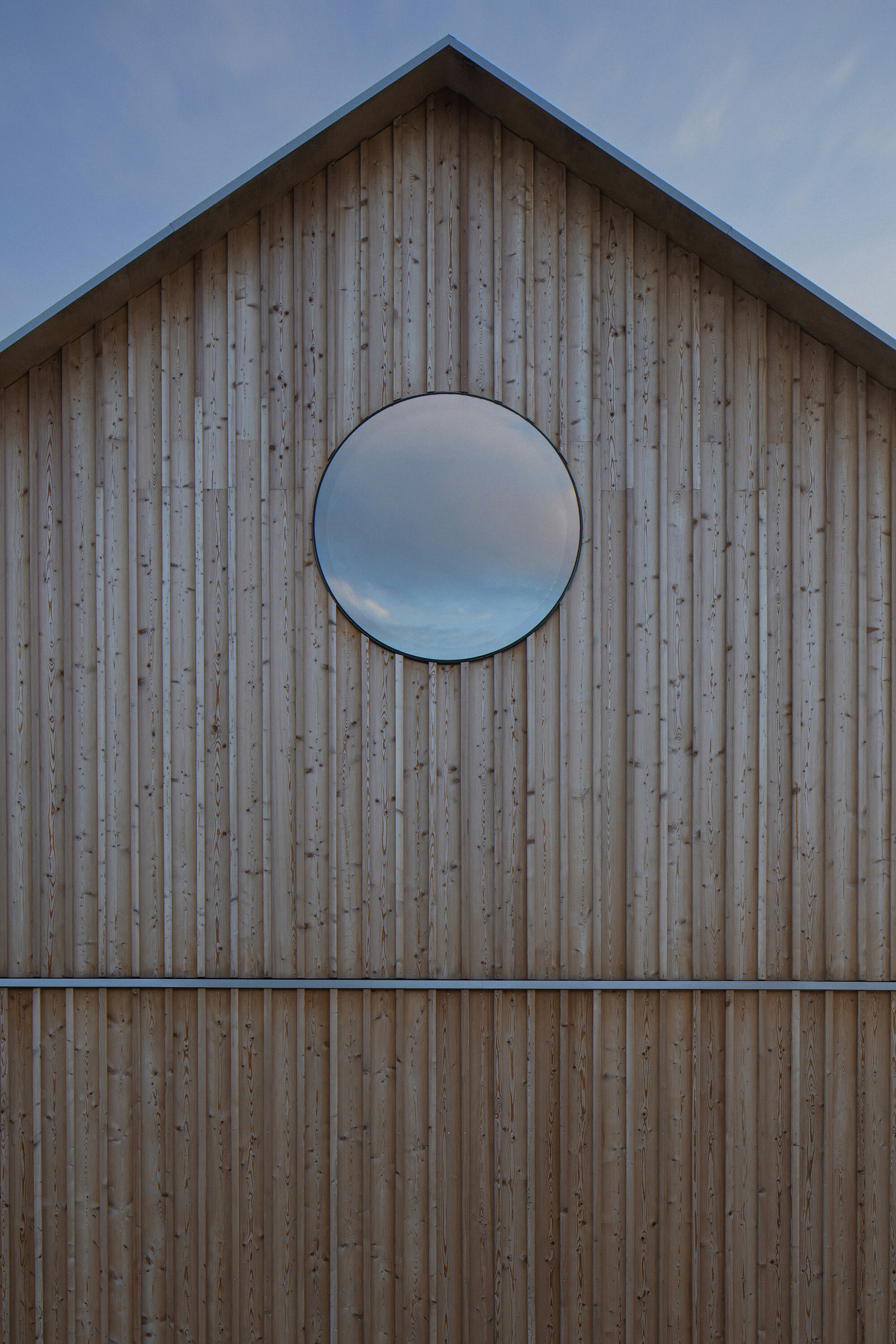 “Z původního očekávání hospodářského zázemí ve standardu plechové skladovací haly se tak úvahy o estetice stavby, jejím členění, a v neposlední řadě o vztahu k širšímu okolí začaly ubírat jiným směrem. Naším záměrem bylo přispět ke kultivaci výstavby v této krajině a to konkrétně použitím měřítka a estetiky, která z ní vychází,” približujú architekti svoj zámer a genézu projektu.