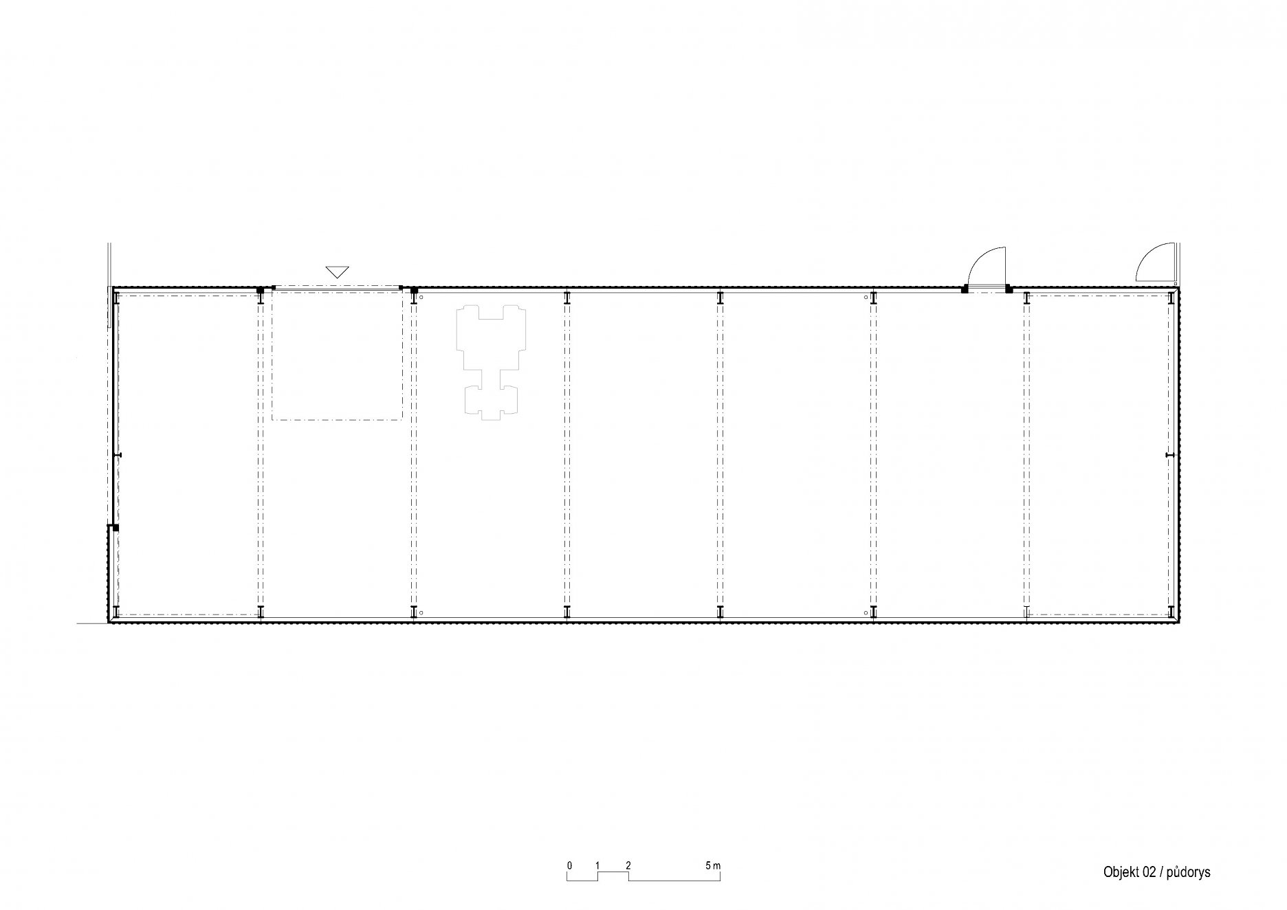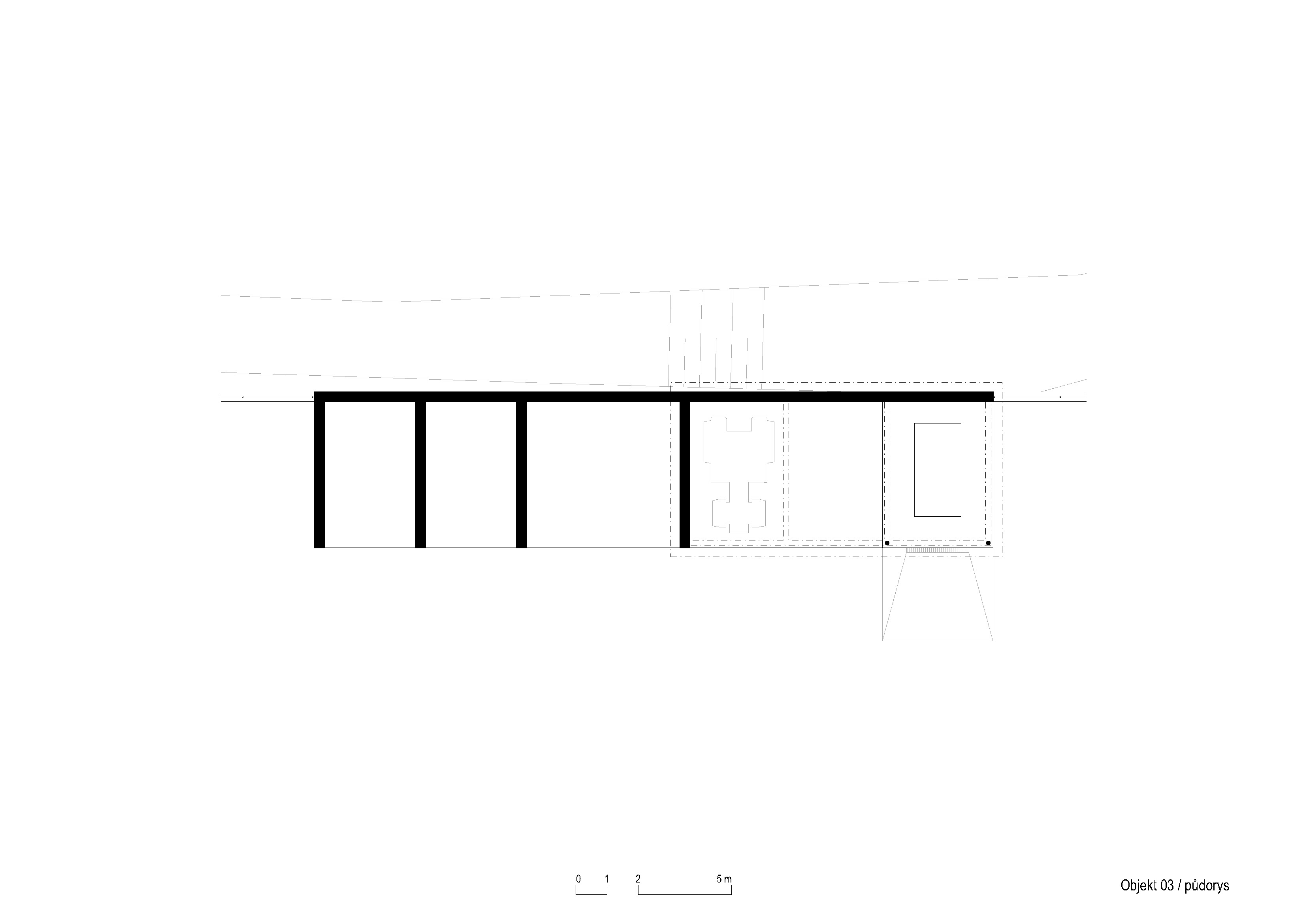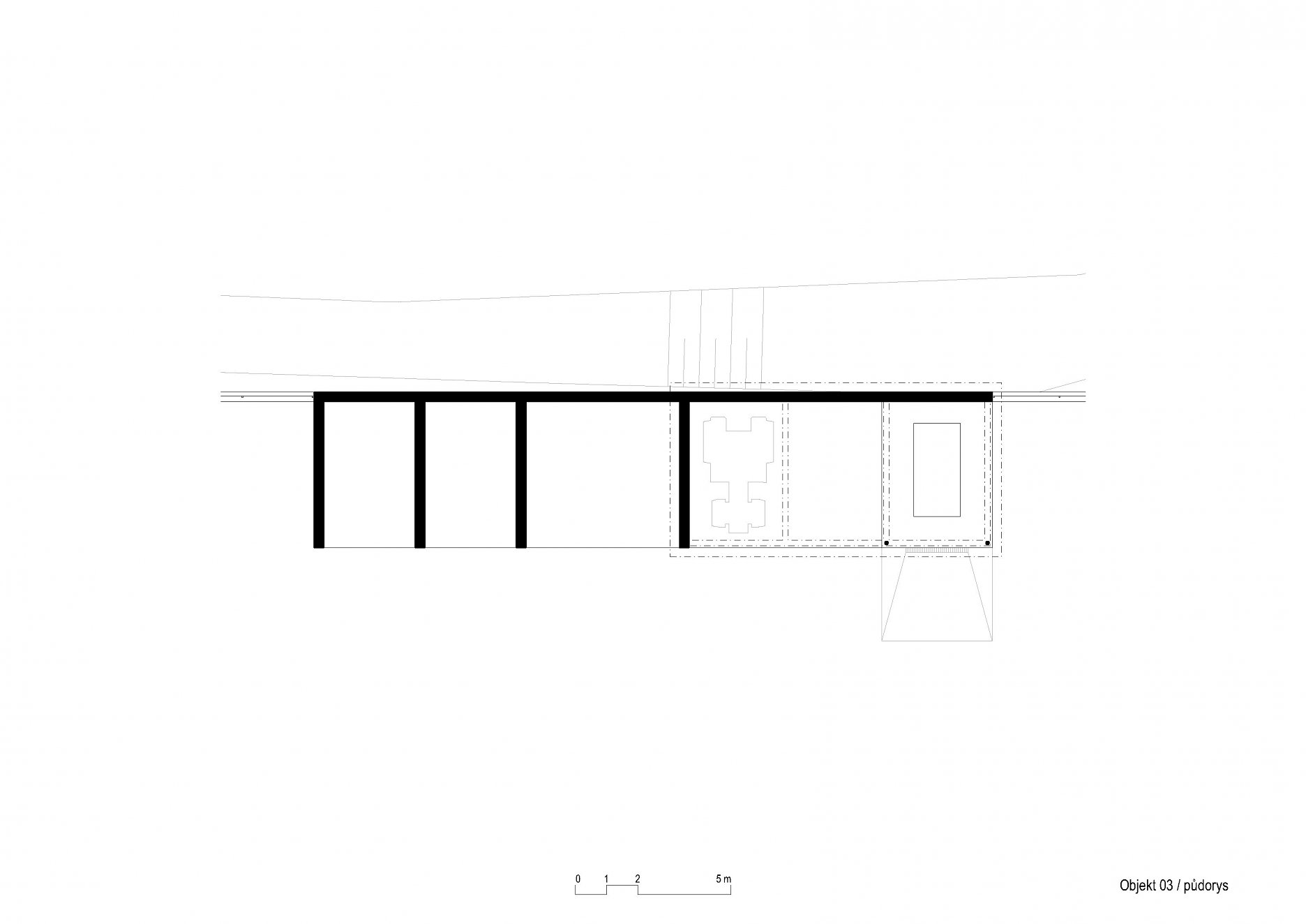 Tretí objekt, ktorý areál oddeľuje od potoku a ihriska, slúži na skladovanie sypkých hmôt v betónových kójach. Jeho súčasťou je prístrešok na parkovanie.