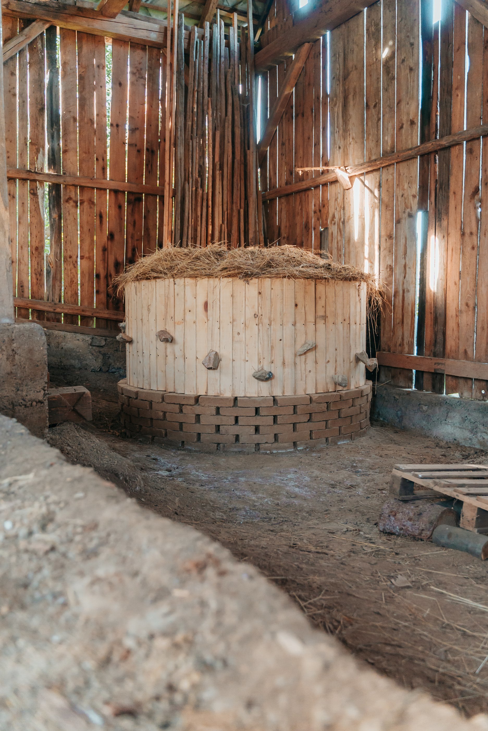 Témou prvého ročníka architektonického workshopu PRAKS bola Indiánska sauna v stodole. Dielo, realizované v priebehu troch dlhých dní, s minimálnym rozpočtom a s využitím lokálnych materiálov, vzniklo rukami lektorov Matthiasa Arnoulda, Roberta Provazníka a študentov, menovite: Adam Hronský, Andrej Bražnik, Dávid Frntol, Filip Varga, Henrieta Horváthová, Jakub Sadloň, Mária Bezányiová, Michal Brincko, Miroslav Borovička a Vladimír Makara. Za teoretické prednášky patrí vďaka Tomášovi Ružiakovi z ateliéru HAUS, Martinovi Křenovi z ProMonument, Matúšovi Horvátovi z PORR a Viktórii Žigmundovej z Myceelab Umprum.