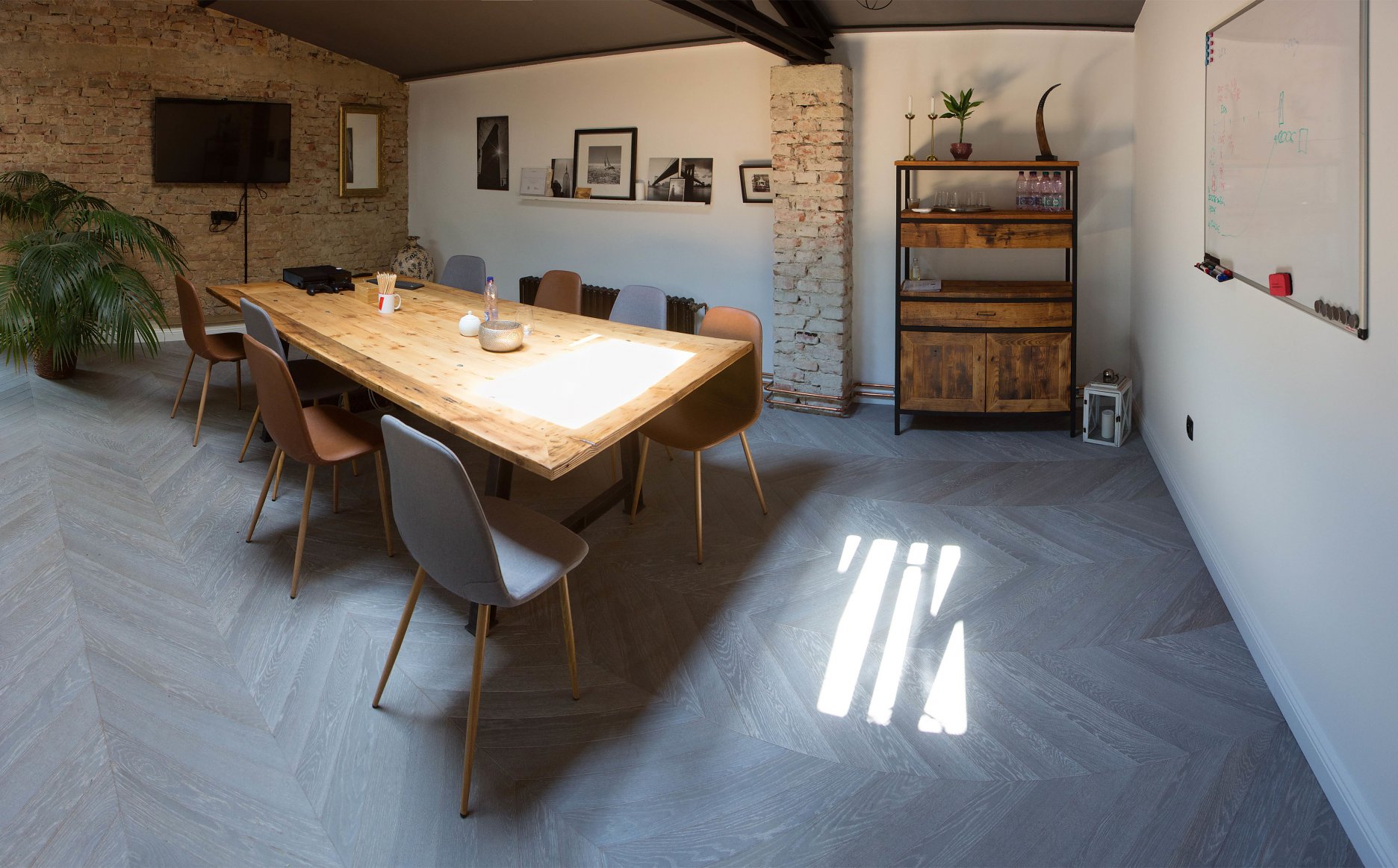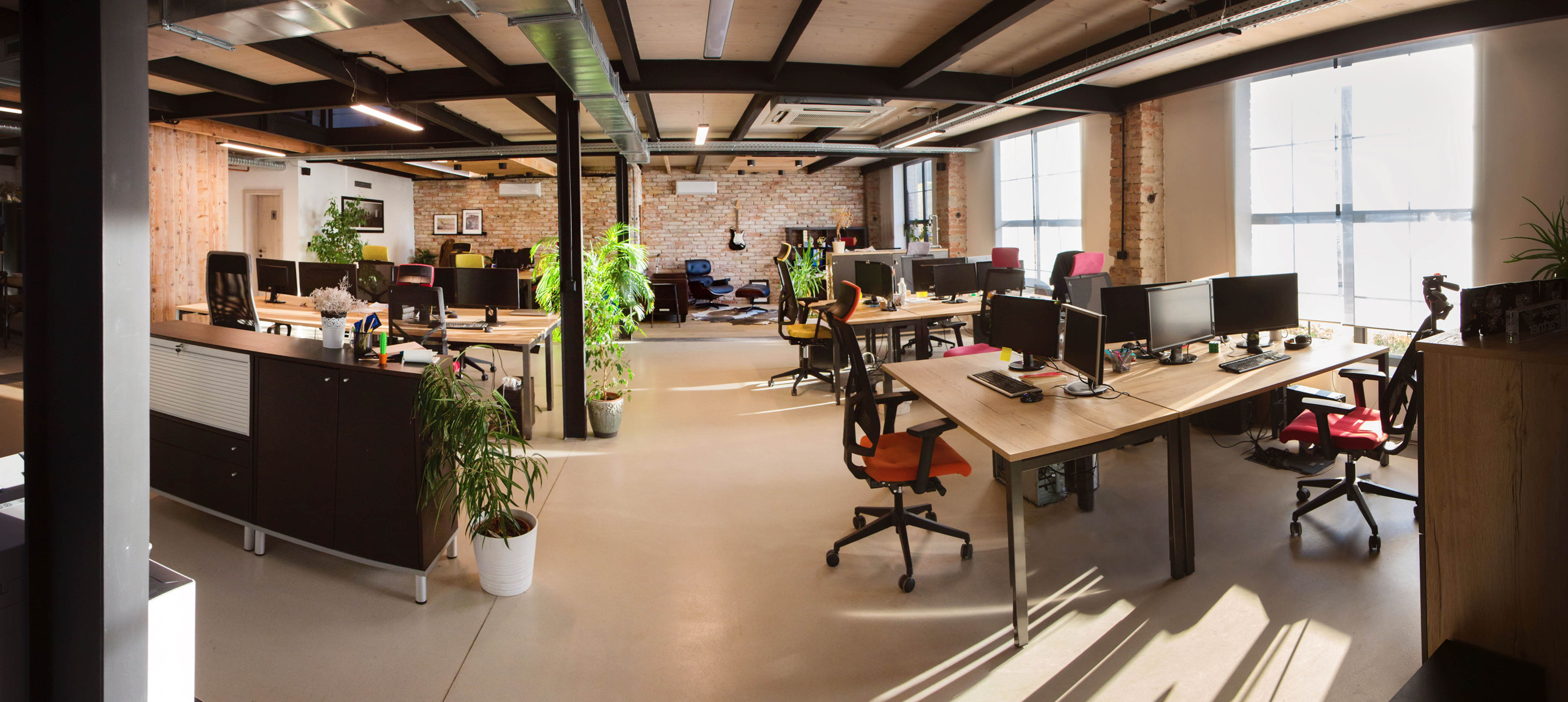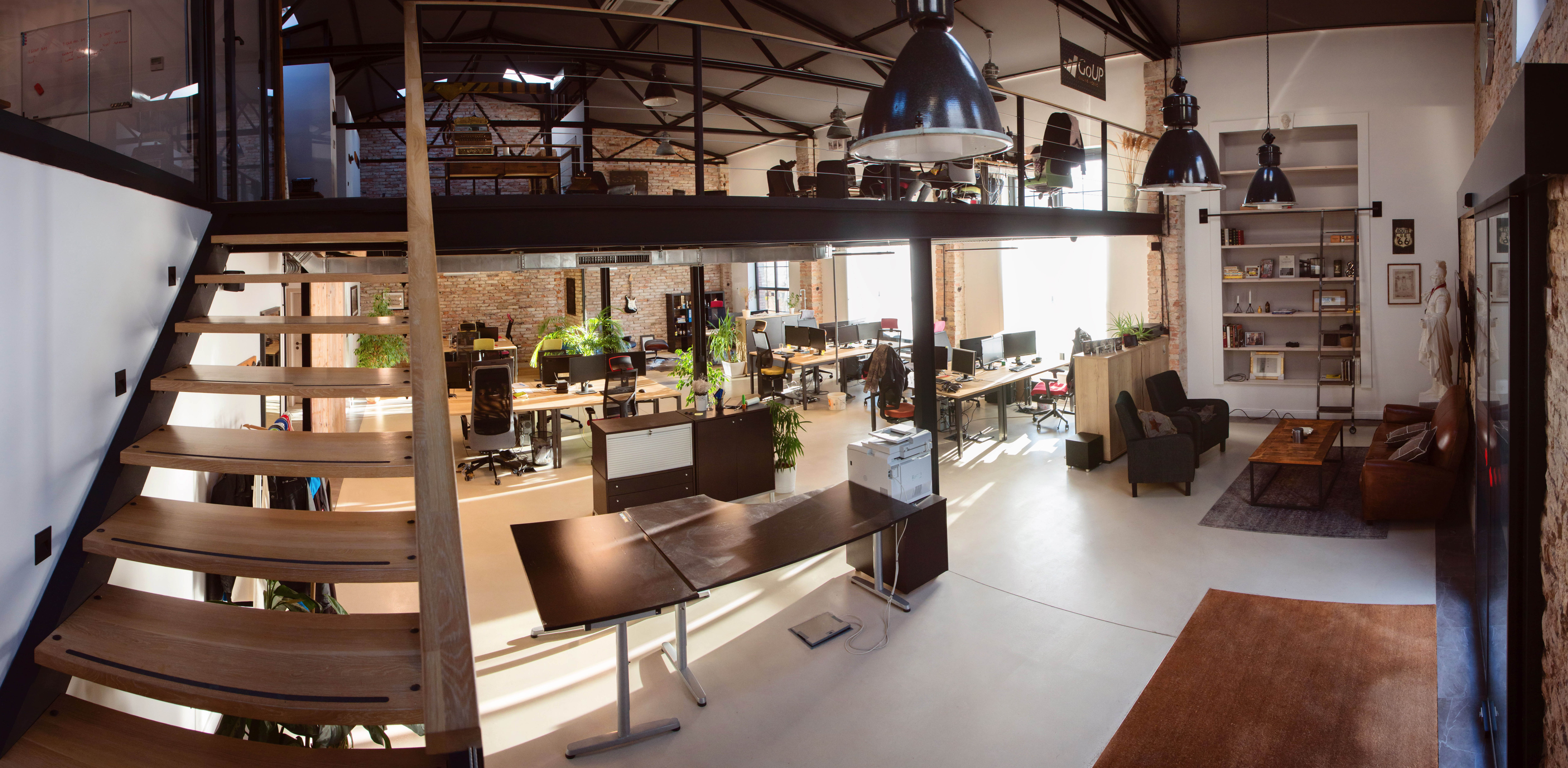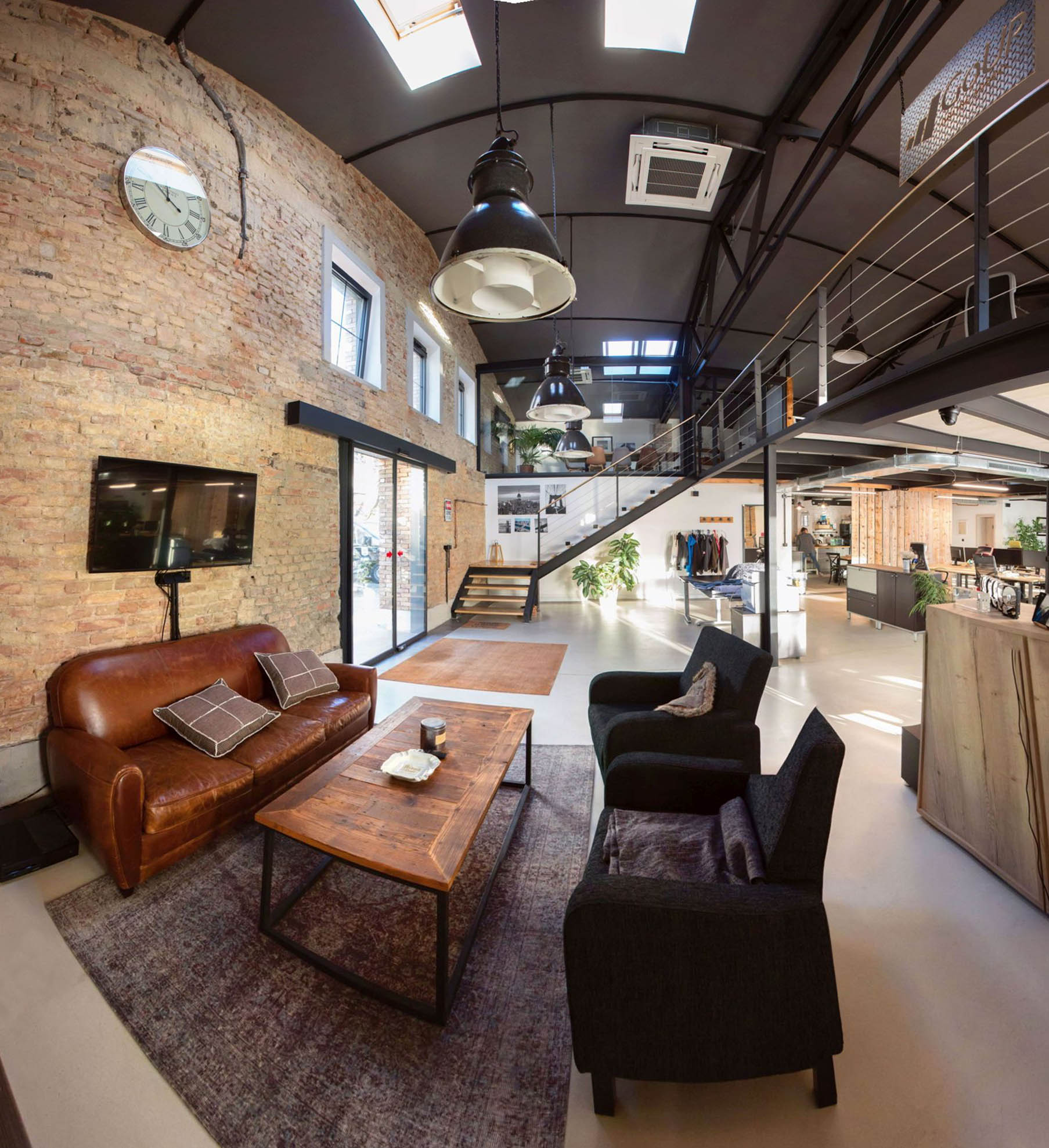 Open space kancelárie na prízemí dopĺňa oddychová zóna s posedením a kuchynkou. Na poschodí je k dispozícii presklená zasadačka s výhľadom do otvorenej galérie.