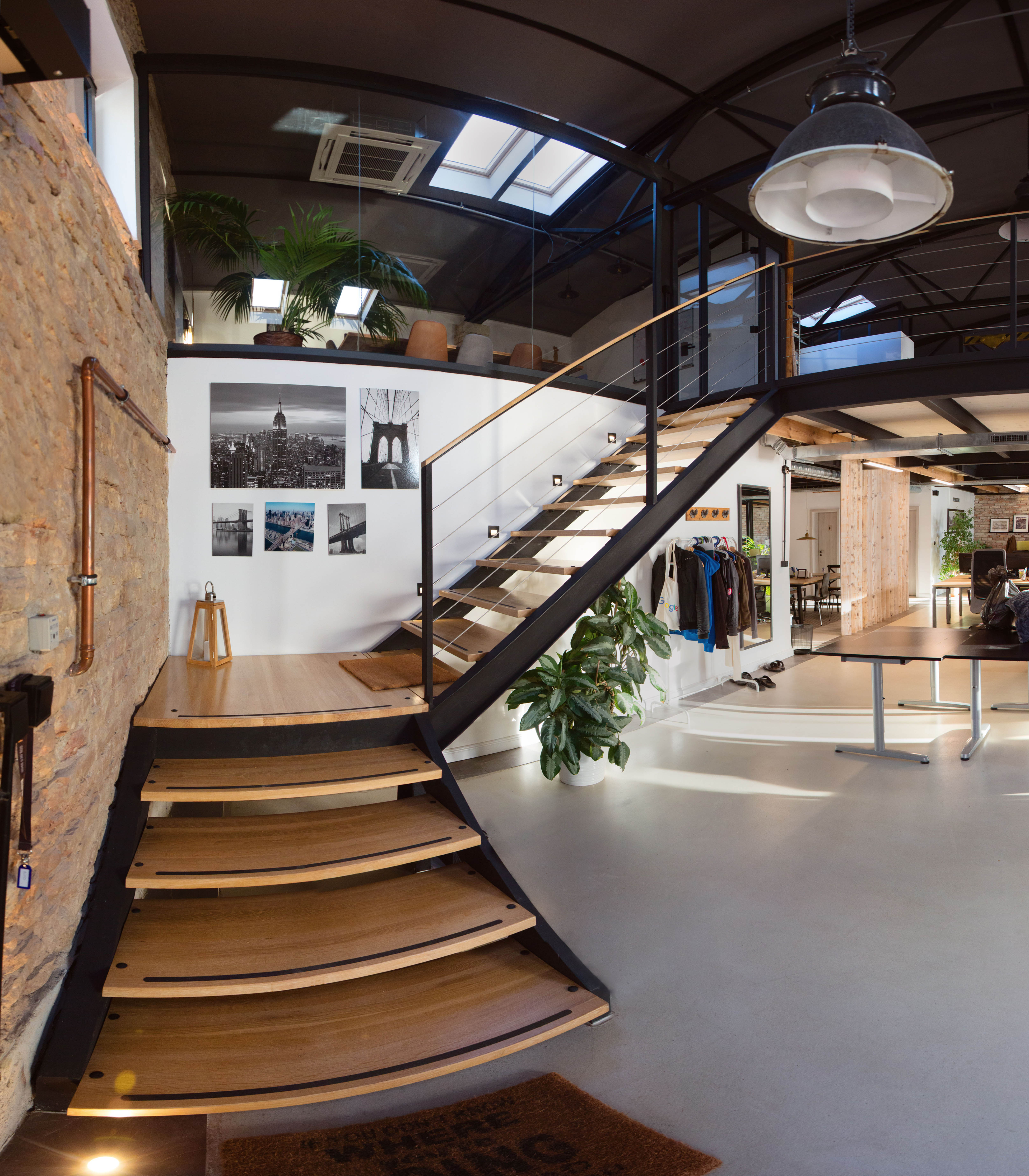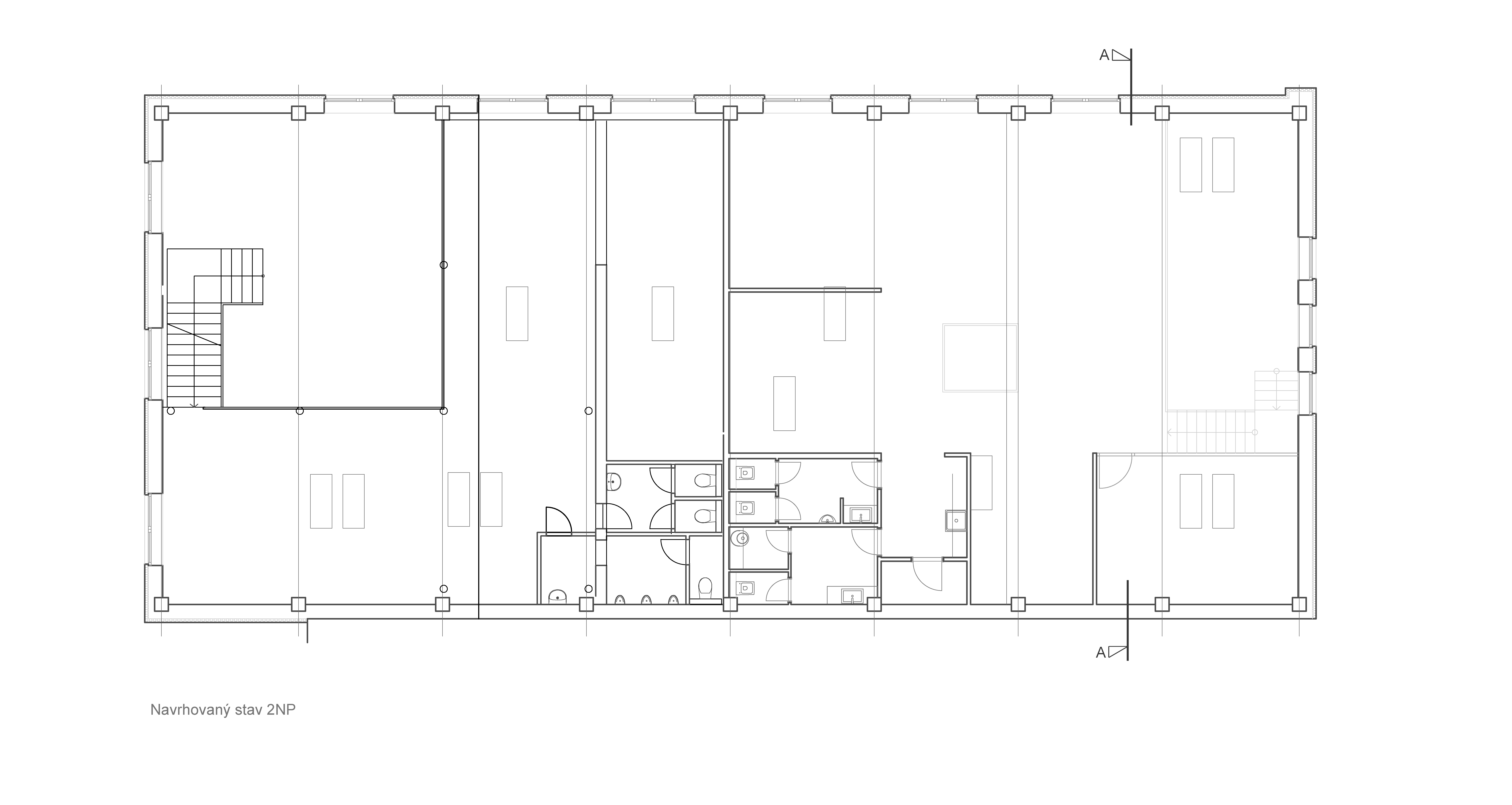 Nové medziposchodie, vložené do otvoreného priestoru haly, výrazne rozšírilo využiteľnú podlahovú plochu. Otvorená galéria pri vstupe prepája obe úrovne a zachováva pôvodnú dimenziu priestoru. Kancelársky blok zahŕňa otvorené pracovisko pre 30 zamestnancov, spolu so zasadačkou, hygienickým zázemím na každej z úrovní, kuchynkou a lobby na druhom nadzemnom podlaží.
