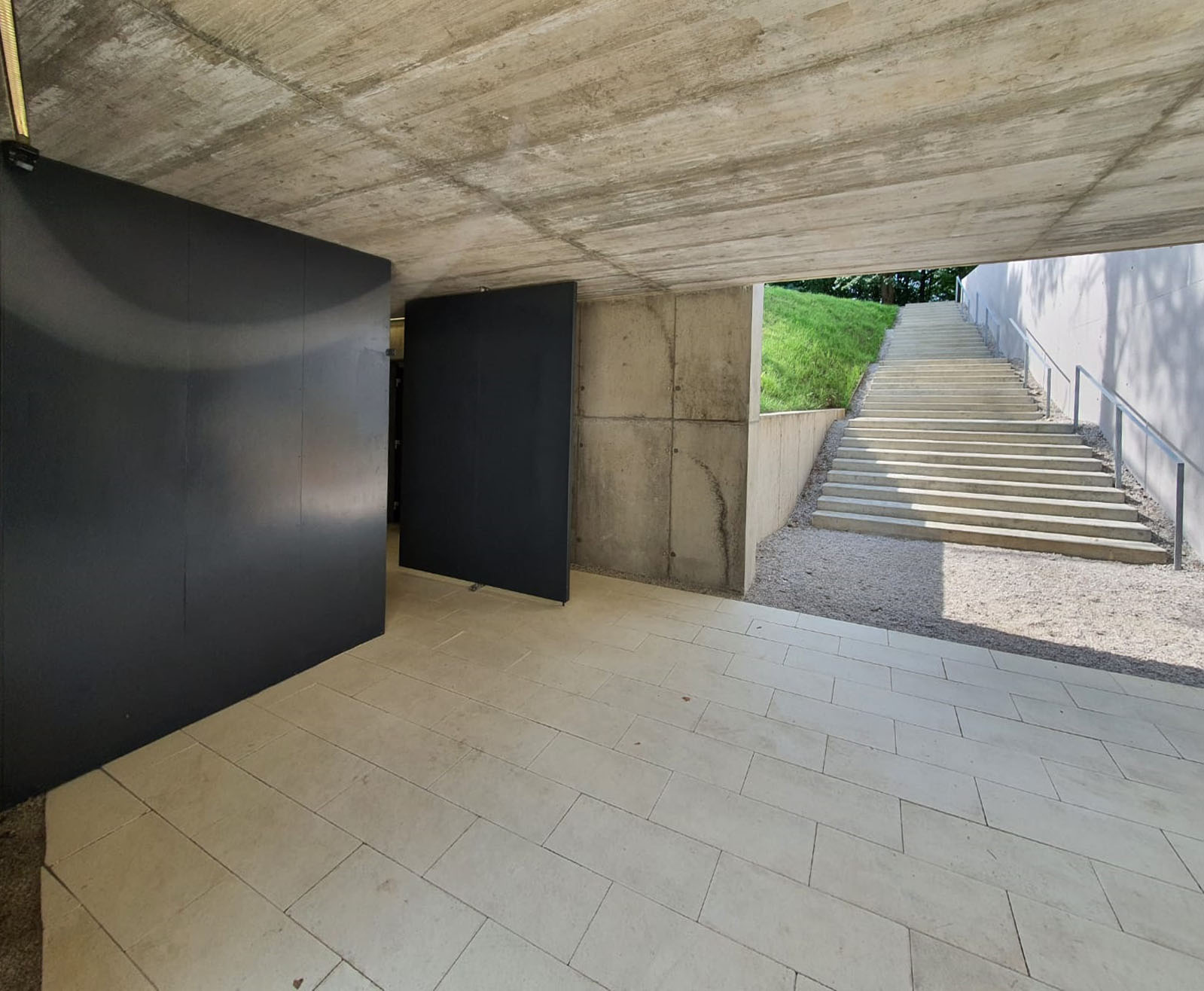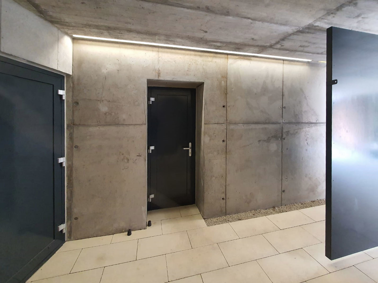 Je kompletne odliata z vodostavebného železobetónu, dokonca v dvoch farebných riešeniach. To umožnilo vynechať štandardné hydroizolačné vrstvy a otvorilo možnosti "odvážnejšieho" riešenia detailov.