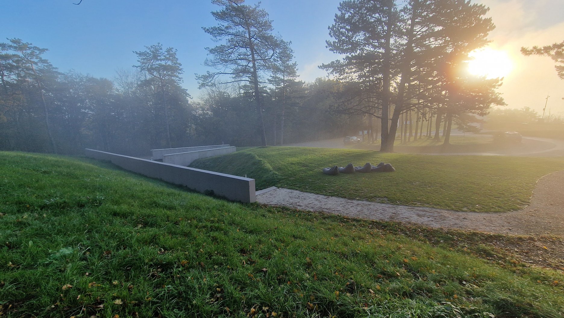Príjemné letné ráno. Cesta vedúca k Mohyle na Bradle. Povinná jazda pre každého architekta v podobe návštevy Jurkovičovho monumentálneho diela.