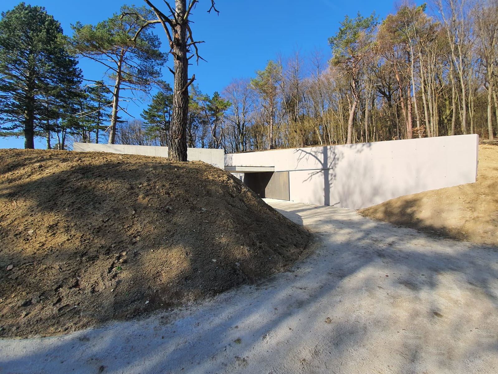 MŠ: Jednoznačne adrenalín pri oddebňovaní liatych stien a samozrejme finálne terénne úpravy. Obnažená hmota hrubej stavby sa spätne zasypávala tak, aby splynula s okolitým terénom, čo začalo ukazovať výsledný charakter stavby.