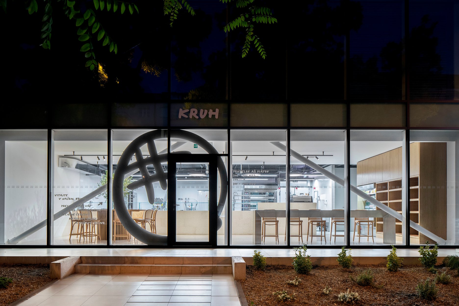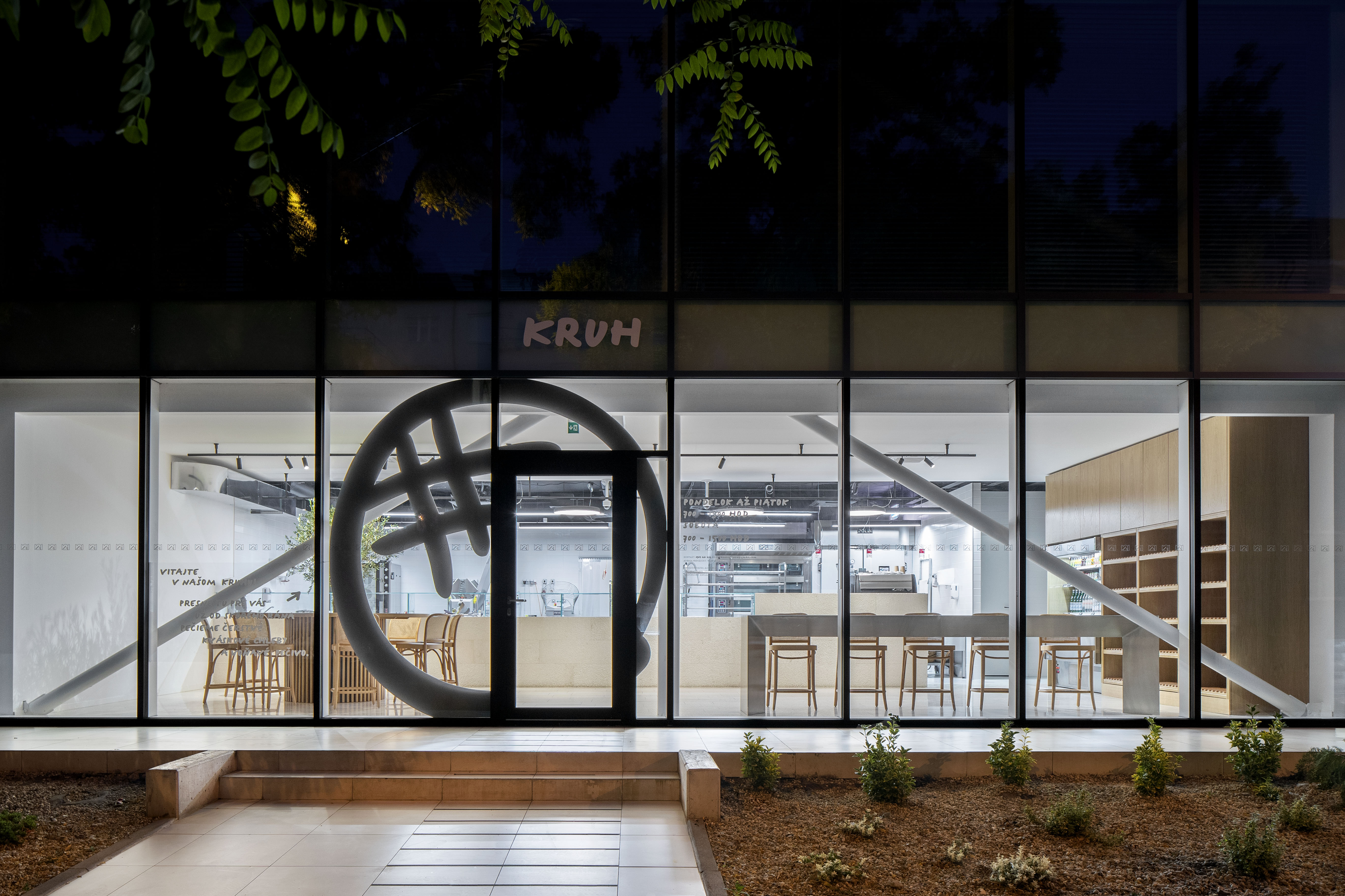 Majiteľ pekárne je pôvodom Chorvát. Preto názov prevádzky a voľba kameňa boli jasné už od začiatku. Dominantným materiálom v interiéri pekárne KRUH (po chorvátsky chlieb) je charakteristický bračský mramor. Logo KRUH a celkový branding navrhlo štúdio Calder v spolupráci s majiteľom a jeho manželkou, ktorí v pekárni tiež pracujú.