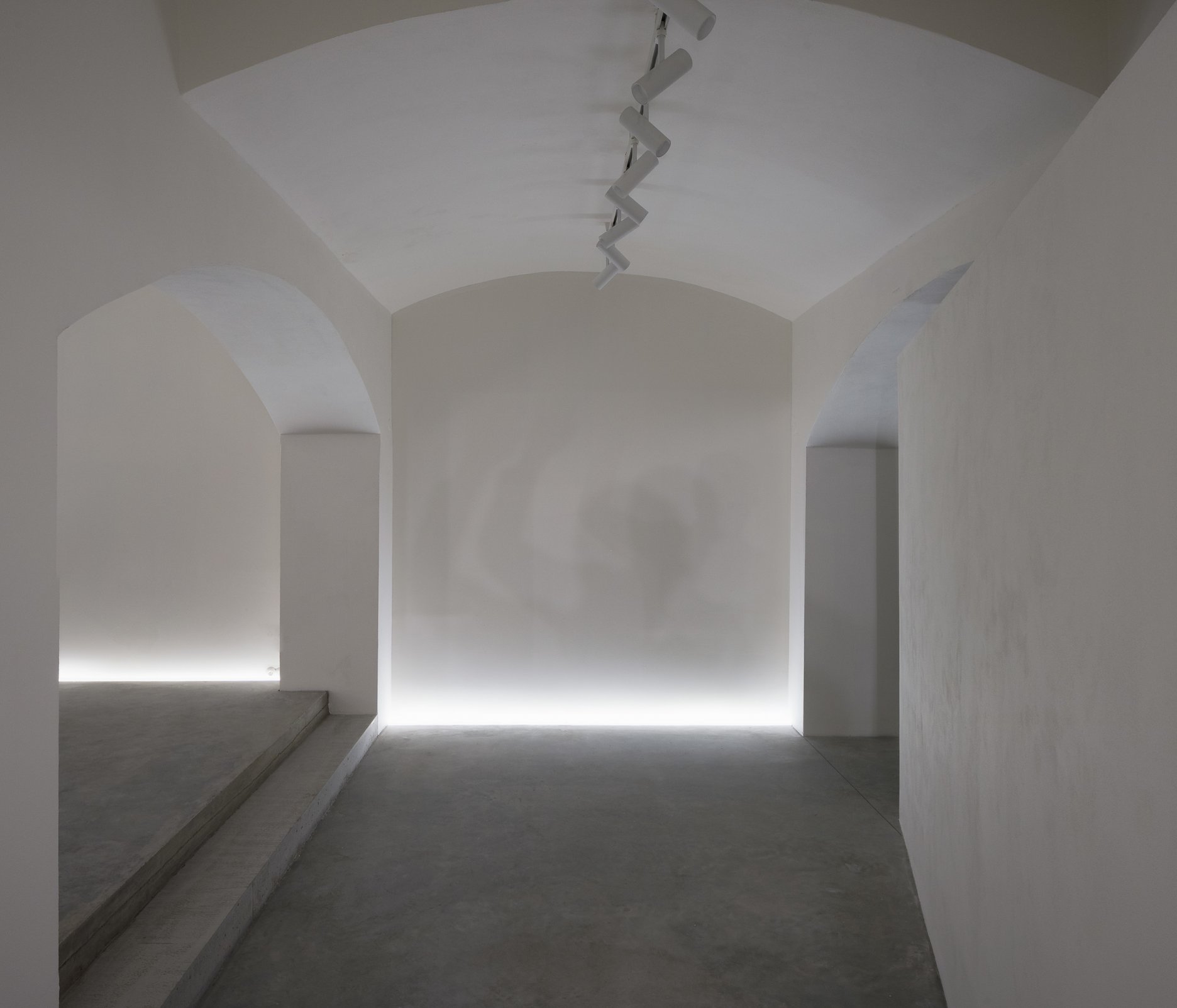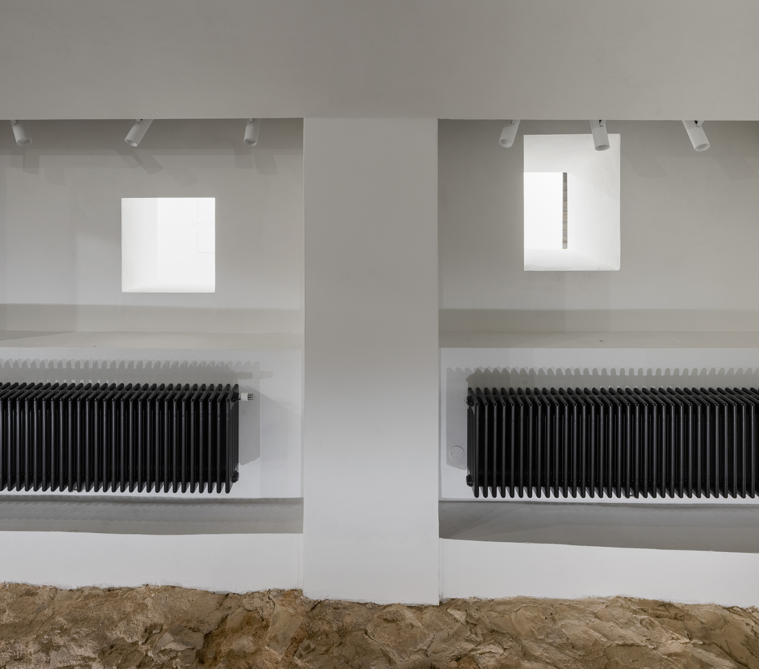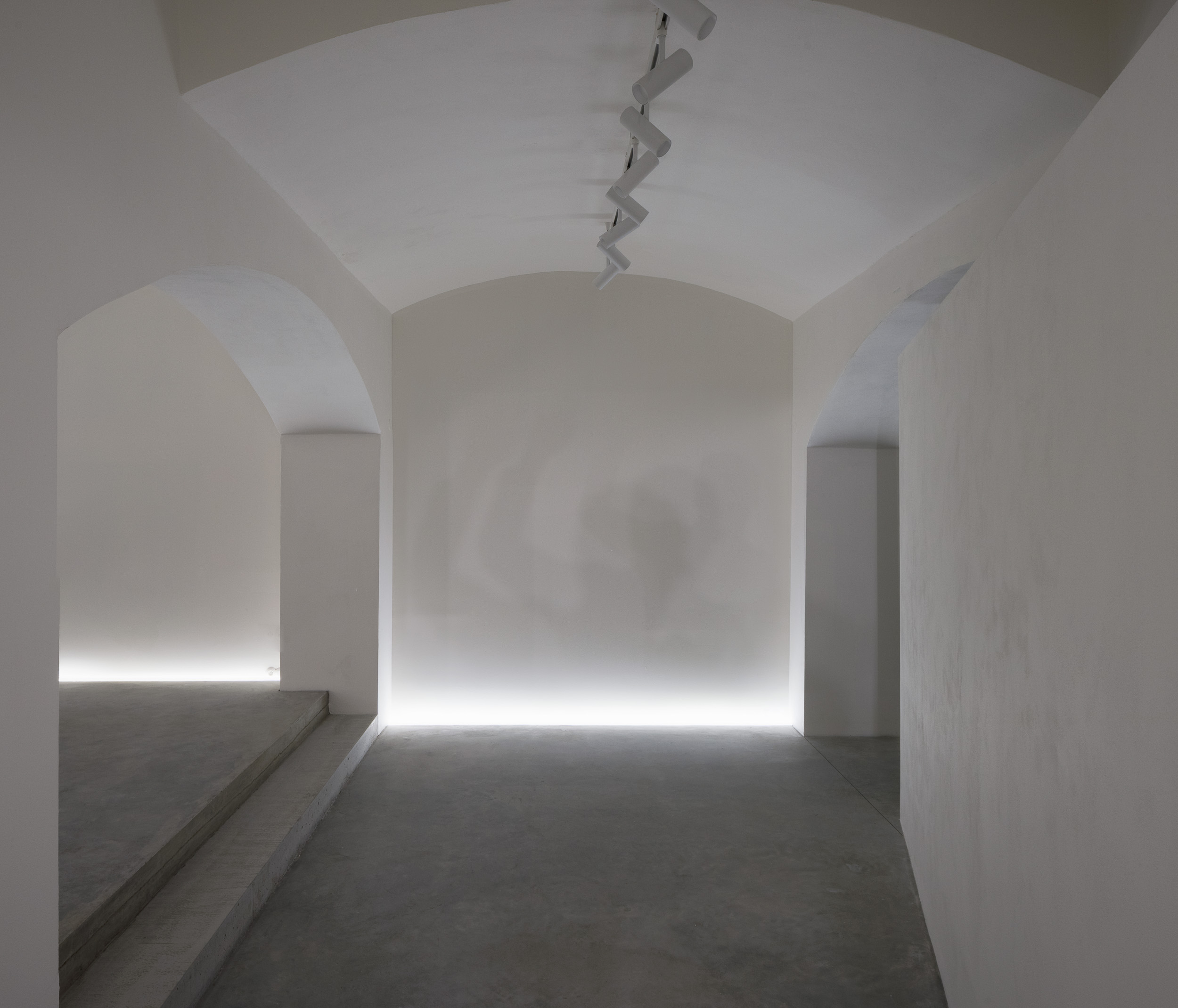 Suterénní expozice je průchozím labyrintem. Tektonika masivních stěn, průhledy, výškové rozdíly, atmosféra rostlého prostředí abstraktního města. Odkryté románské základy dají nahlédnout až do hloubky nejstarší zástavby; přemostěny ocelovou lávkou. Prostor umí být galerií, přednáškovou místností, kulturním prostorem...
