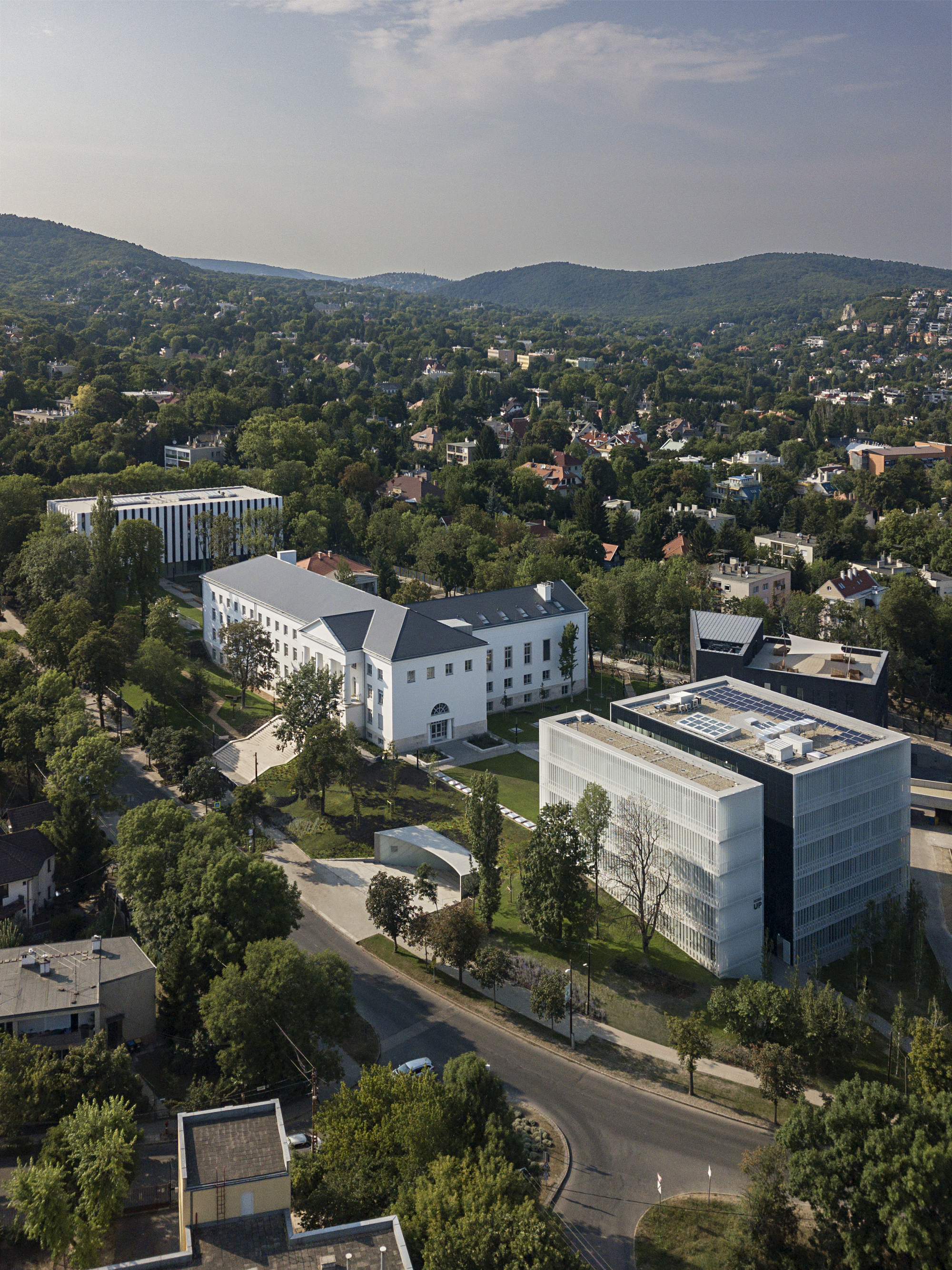 Kampus leží na zvažujúcim verejne prístupnom parku, v budatínskej štvrti Szépilona. Rozvoj areálu urbanisticky nadviazali na pôvodný plán architekta Zoltána Farkasdyho, ktorý od začiatku počítal s komplexom troch stavieb v osi. V jej strede leží jeho pôvodná budova A z roku 1953. Kampus rozšírili vyučovacie kapacity, výskumné centrum a podzemné fórum. Architektonický koncept vniesol do areálu dynamiku prostredníctvom voľného prepojenia funkcií a ich prepojením s verejným priestorom. Okoloidúci sa môžu zastaviť a pozrieť si v otvorenom priestore výstavu študentských prác...