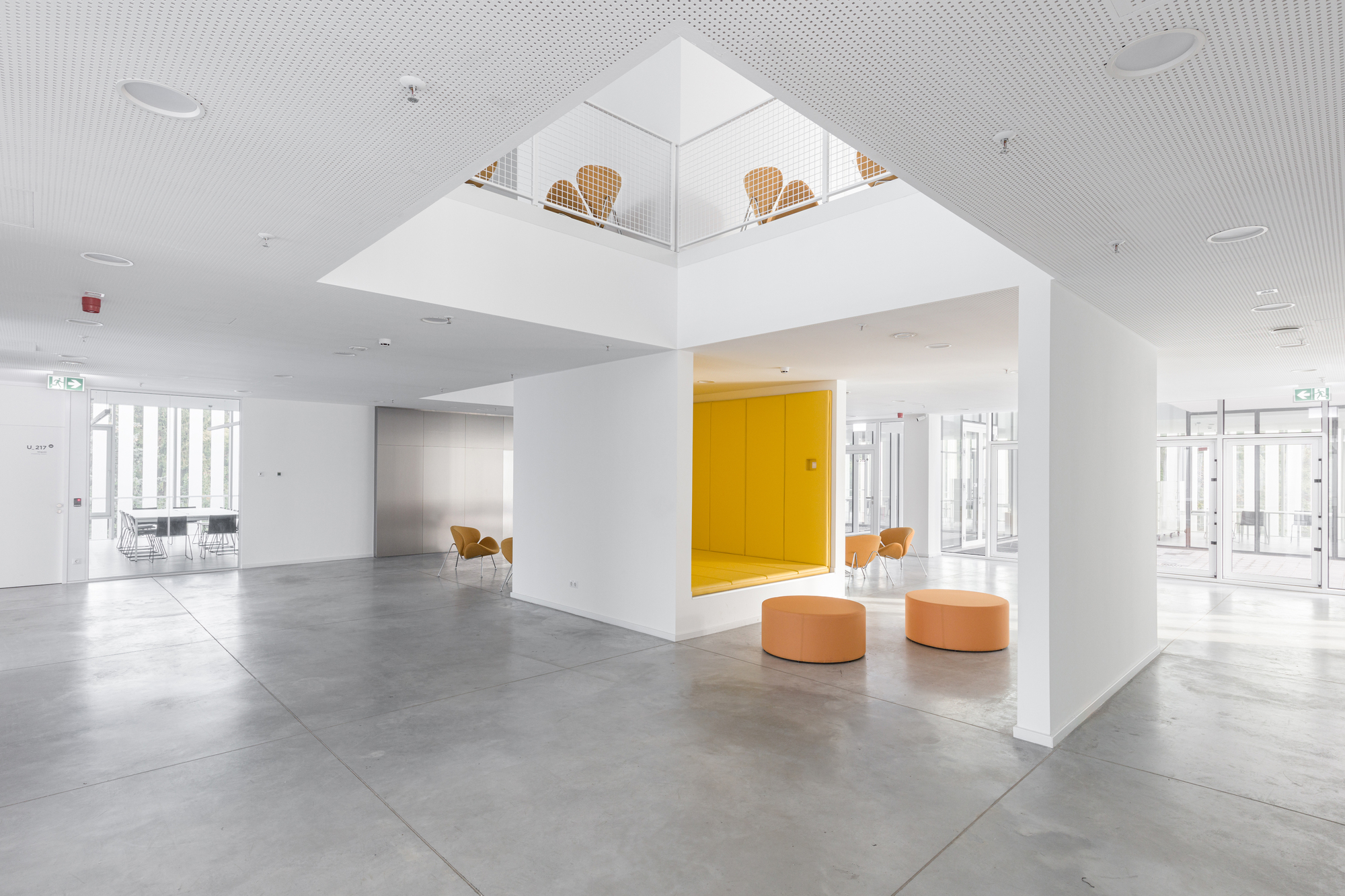 “Nové objekty dávajú jasne najavo dobu svojho vzniku. Každá z nich má osobité priestorové riešenie. Zavesená konštrukcia pavilónu 'BASE' maximalizuje slobodu využitia naprieč poschodiami, Interiér historickej budovy 'A' podporuje interdisciplinárny dialóg, zatiaľ čo exteriér bloku 'UP'”, dopĺňa Zsolt Gunther.