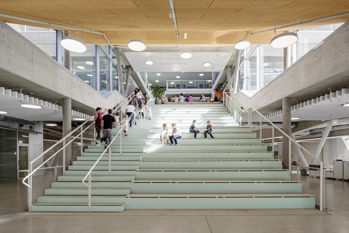 V nasledujúcich mesiacoch sa budeme snažiť predstaviť realizácie z okolitých krajín, ktoré boli nominované na Cenu európskej únie za súčasnú architektúru EU mies award. Slovenský výber sme koncom januára predstavili v samostatnom článku, ostatné realizácie nájdete v súvisiacich článkoch v závere textu. Pokračujeme predstavením ďalšej zo šiestich nominovaných školských stavieb u našich západných susedov.