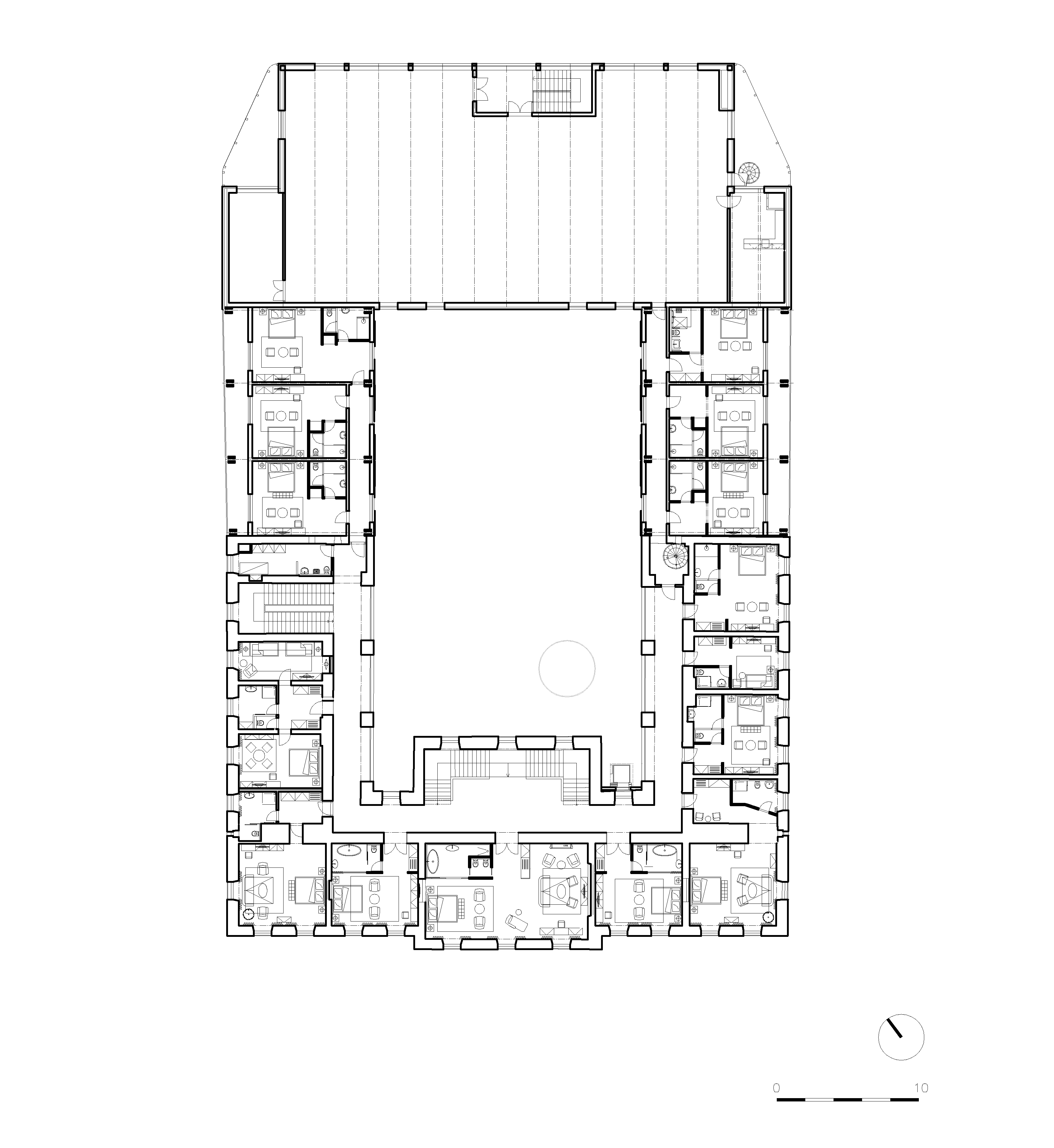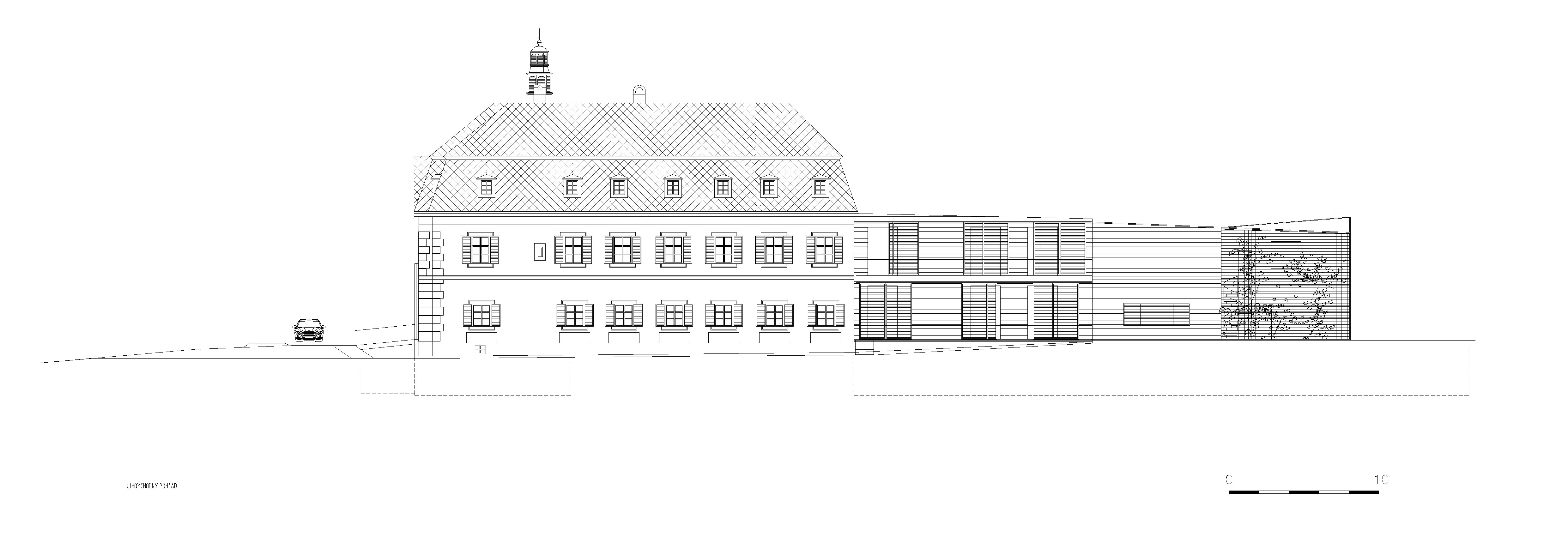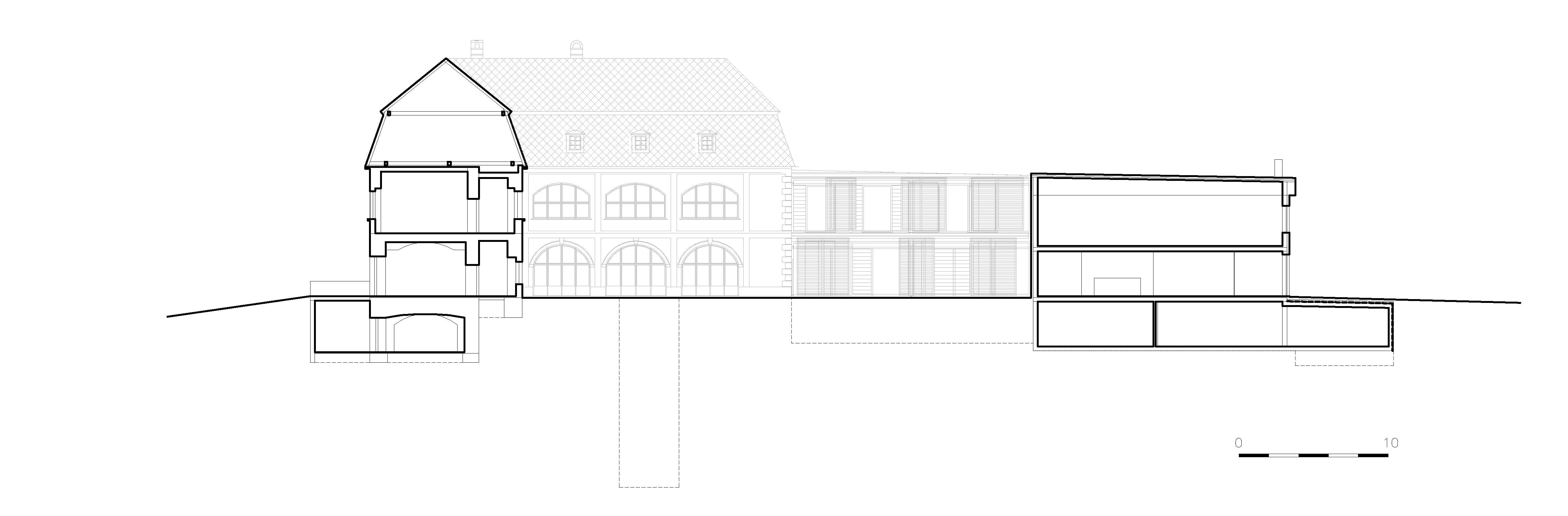 Spojením dvoch častí s pôdorysným tvarom "U" vzniklo vnútorné átrium, z ktorého je súžitie starého a nového vnímateľné najlepšie.