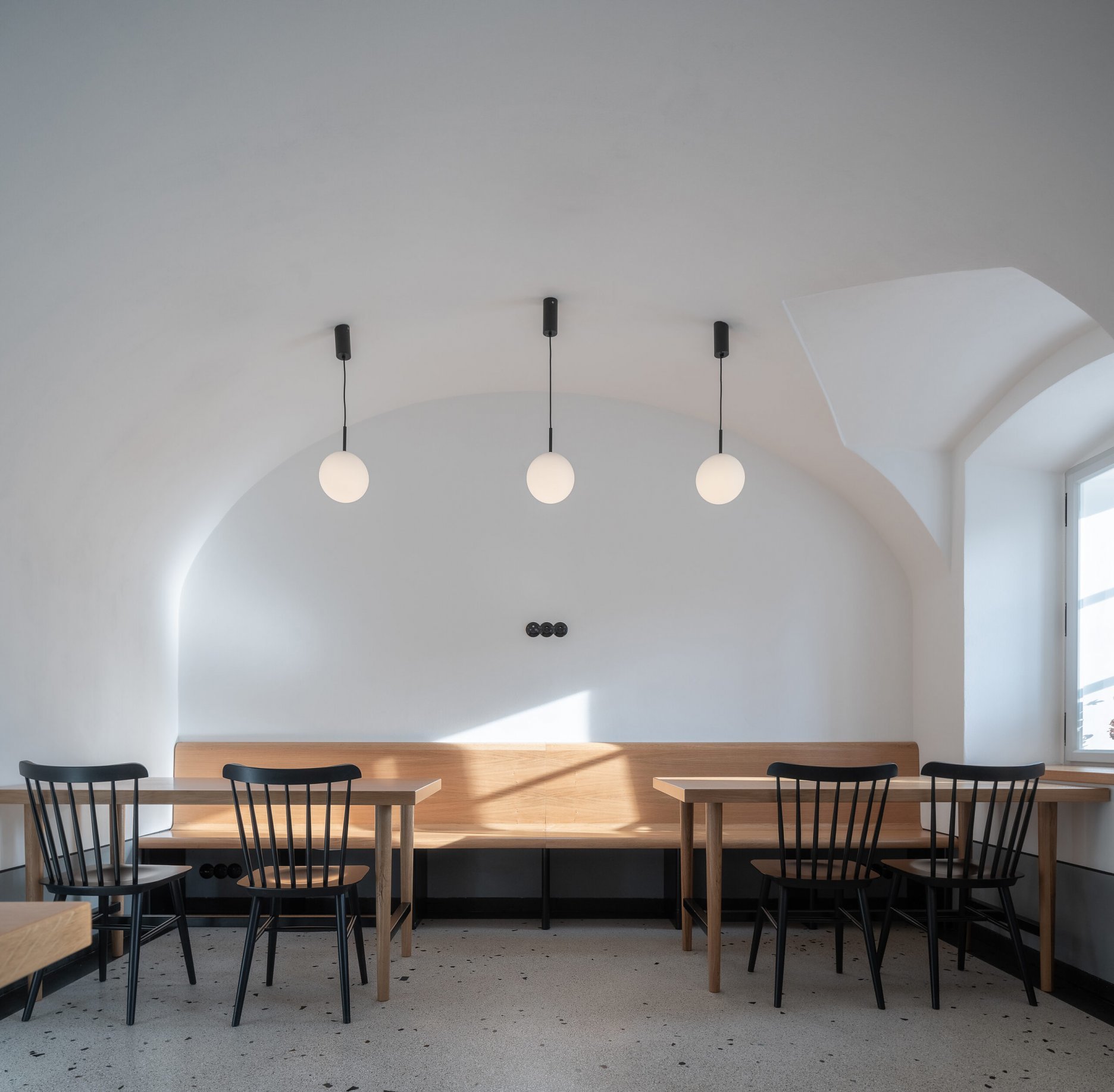 “Tektonicky působivé prostory jsme očistili od nánosů času. Ten se do nich pomalu vrací postupným zabydlováním interiéru svým provozovatelem. Důležitým funkčním prvkem pro obsluhu dvora byl návrh nového otvoru výdejního okna. Při zahájení stavebních prací se zjistilo, že toto okno už na místě historicky stálo. Asi je vše, jak má být,” vysvetľujú autori z ateliéru OBJEKTOR ARCHITEKTI, ktorí pokračujú v spolupráci s investorom aj pri revitalizácii priľahlého jazdeckého areálu a ďalších stavebných zámerov v obci.