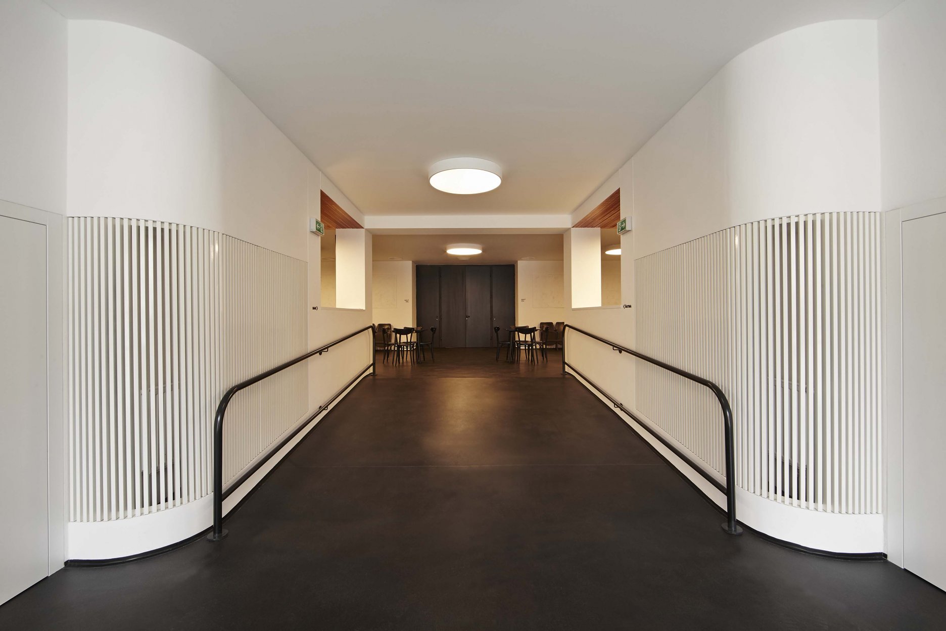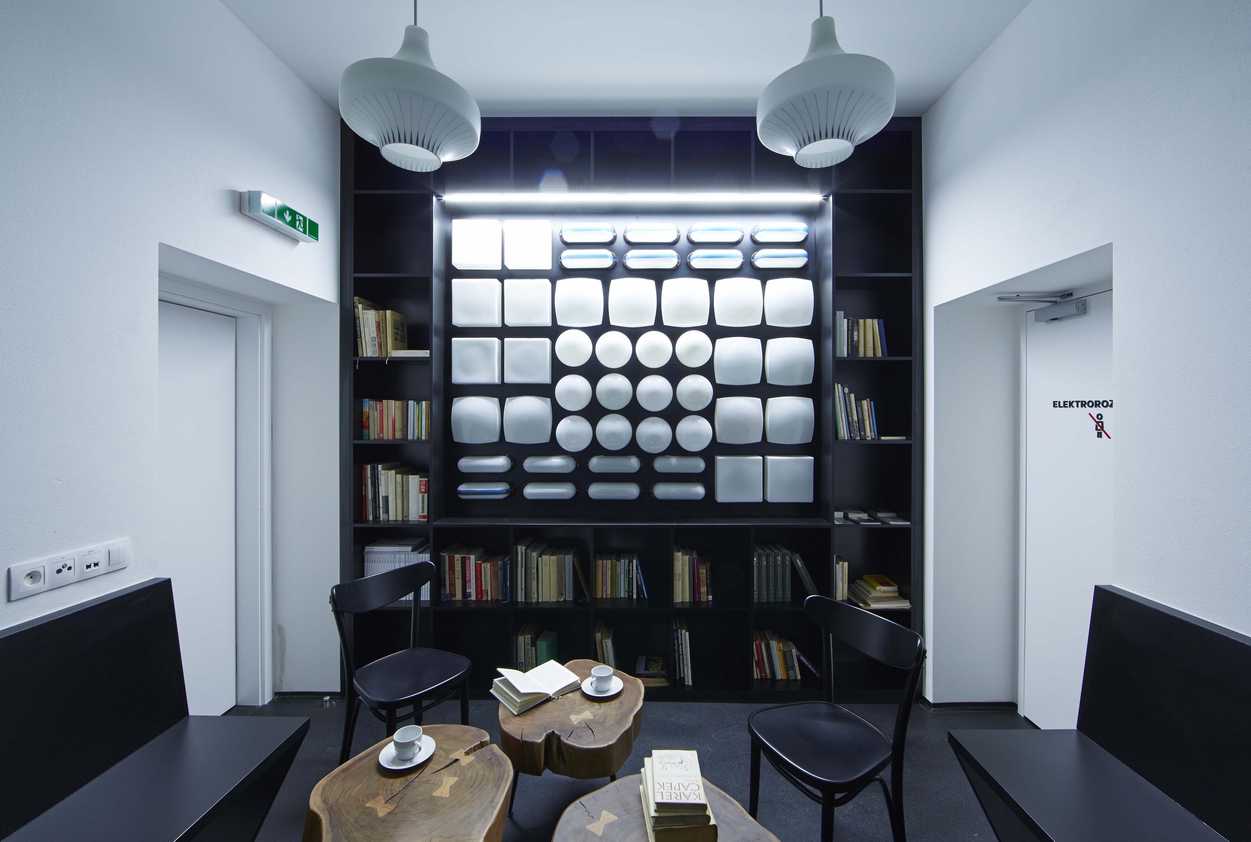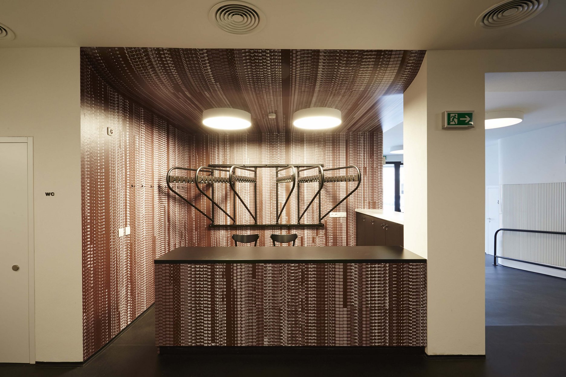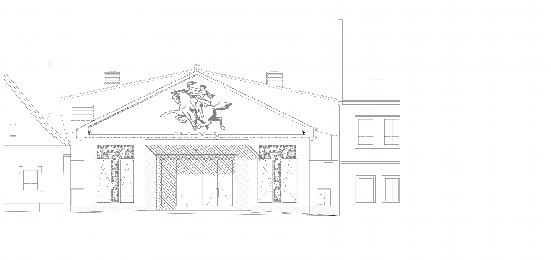 Detail zrkadliaci pôvodnú funkciu budovy možno objaviť na stenách baru a šatní pre návštevníkov. Tie pokrýva tapeta zobrazujúca sken štyristo metrov dlhého filmového pásu týždenníka, ktorý sa v kine kedysi premietal. Len obďaleč, na stenách foyer, sa “prepisujú” fragmenty pôvodných “peesáckých” (v minulosti išlo o Kino pohraničnej stráže) reliéfov.