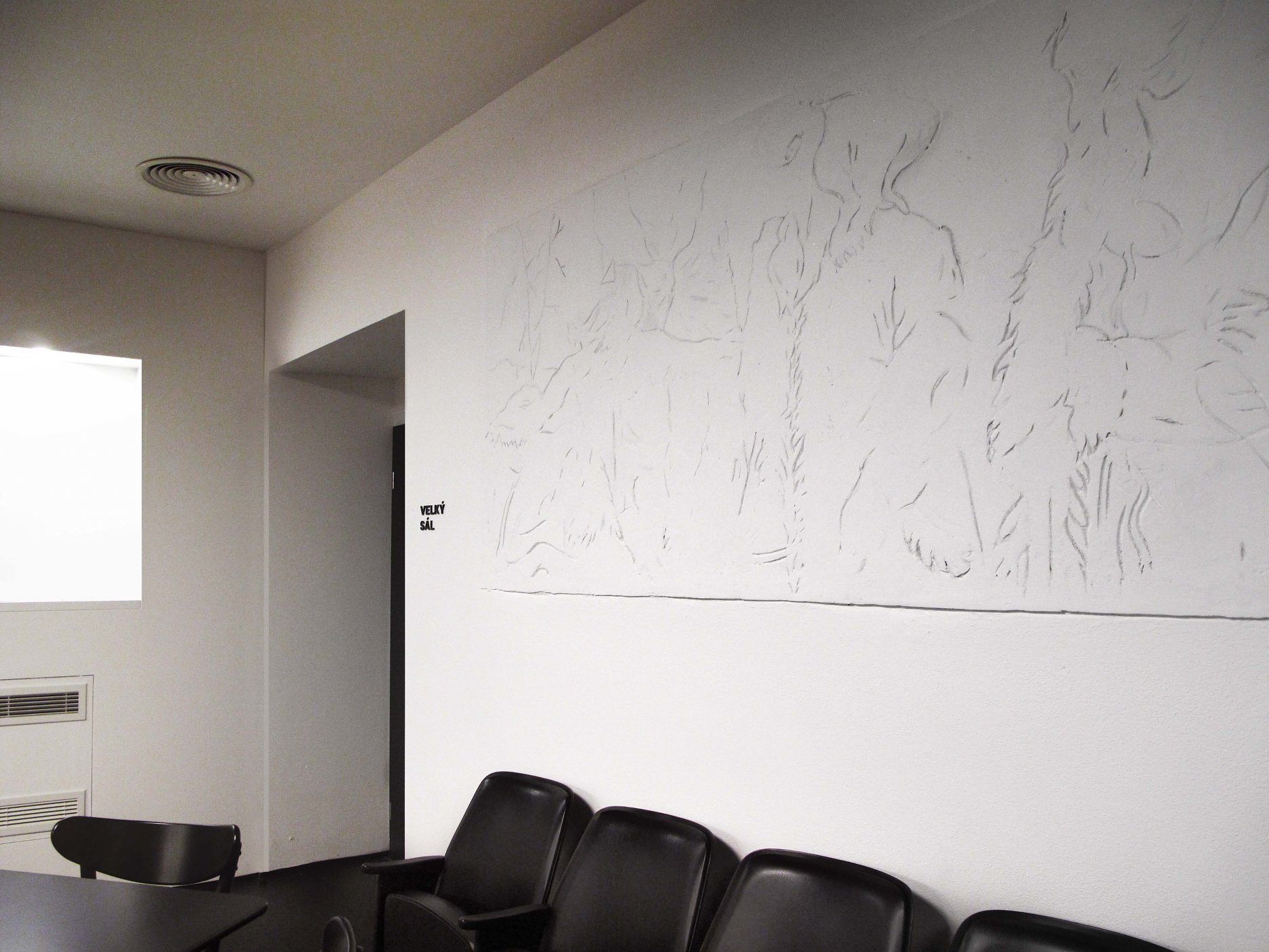 O obnovu medziokennej sgrafitovej výstavy sa postaral Libor Kaláb. Hlavným motívom umeleckého diela sa novo stávajú neuróny. Neuróny koordinujú funkciu celého tela. Môžu spoločne tvoriť väčšie funkčné celky. “S nadsázkou lze obdobně nahlížet na nové KINONEKINO - jako na jakýsi středobod, kde se navazují vazby, spojení a uskutečňuje se setkání všech jednotek obce. Spojuje se zde svět umění, kultury a společenského života. Vznikají tak nové kvalitativní vazby a obohacují tak intelektuální potenciál celého města,” hovoria autori.