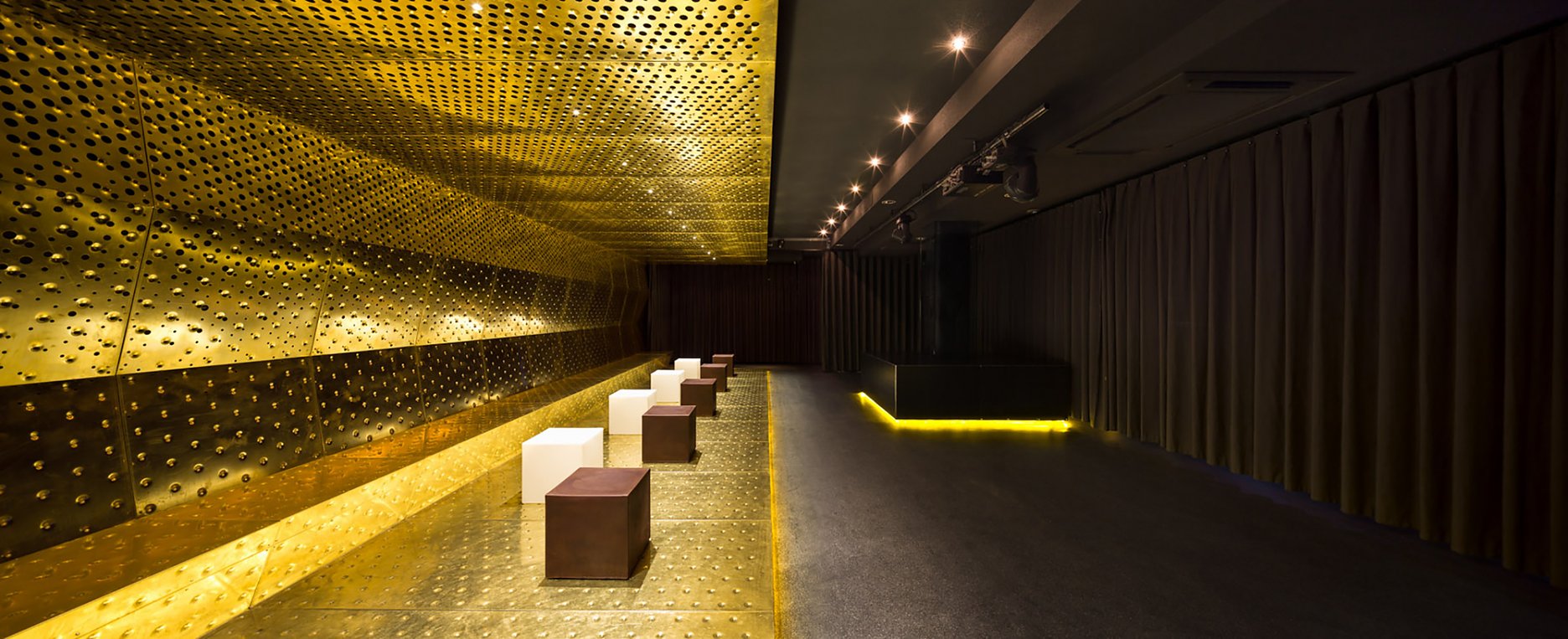 Systém závesov umožňuje rozdelenie jednotlivých častí klubu a umožňuje tiež oddelenie priestoru, kde sa konajú špeciálne akcie.