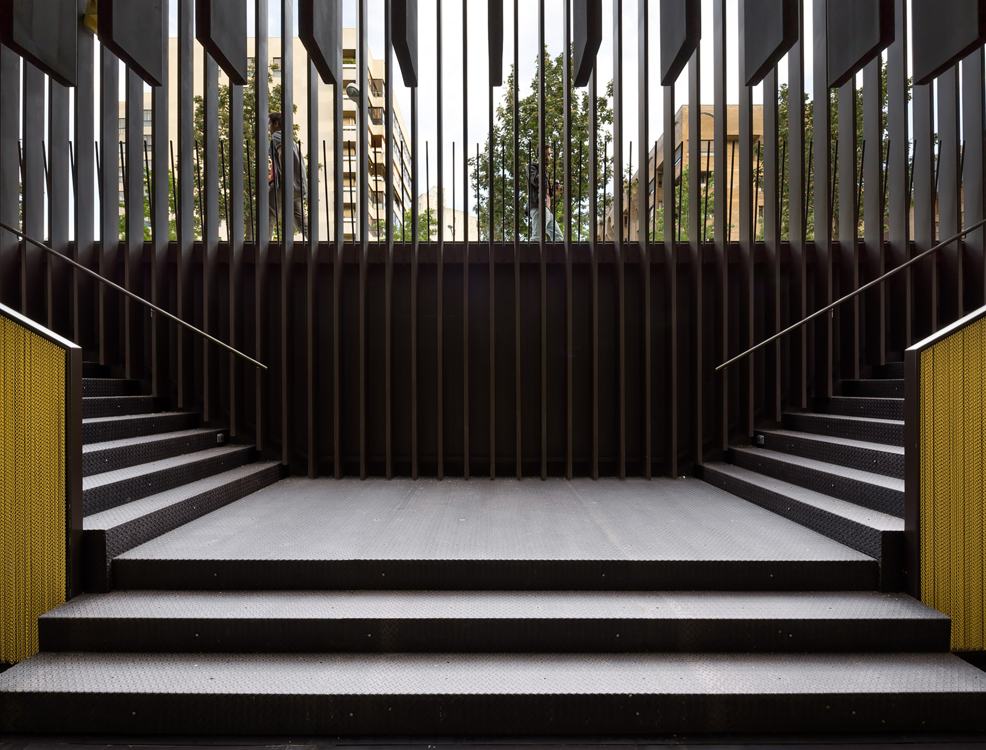 Polygonálna konštrukcia mosadzných častí s množstvom hrán podporuje tuhosť konštrukcie a umožňuje použiť väčší rozmer prvkov. Samostatnou otázkou bolo sedenie integrované do mosadzného plášťa. Autori tu riešili dilemu komfort vs. vzhľad. Nakoniec sa rozhodli pre riešenie s relatívne ostrou hranou, ktoré sa ukázalo ako funkčné: “During the design process many prototypes of the brass box-bench were made with rounded corners. The appearance that these ‘soft’ edges conveyed was contrary to the concept we were looking for”.