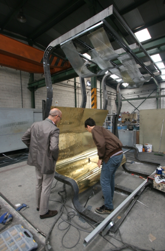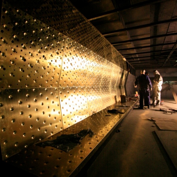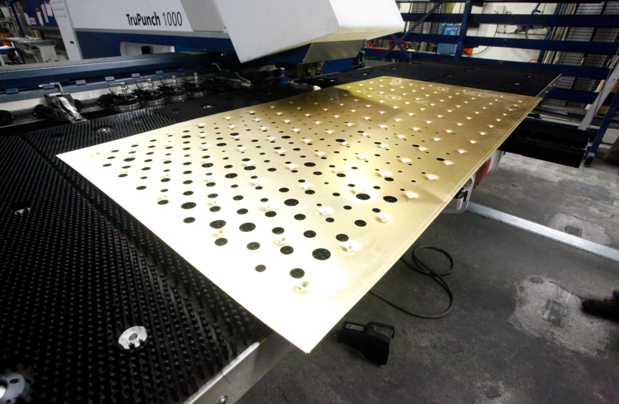 Panely z masívneho mosadzného plechu boli strojovo perforované.