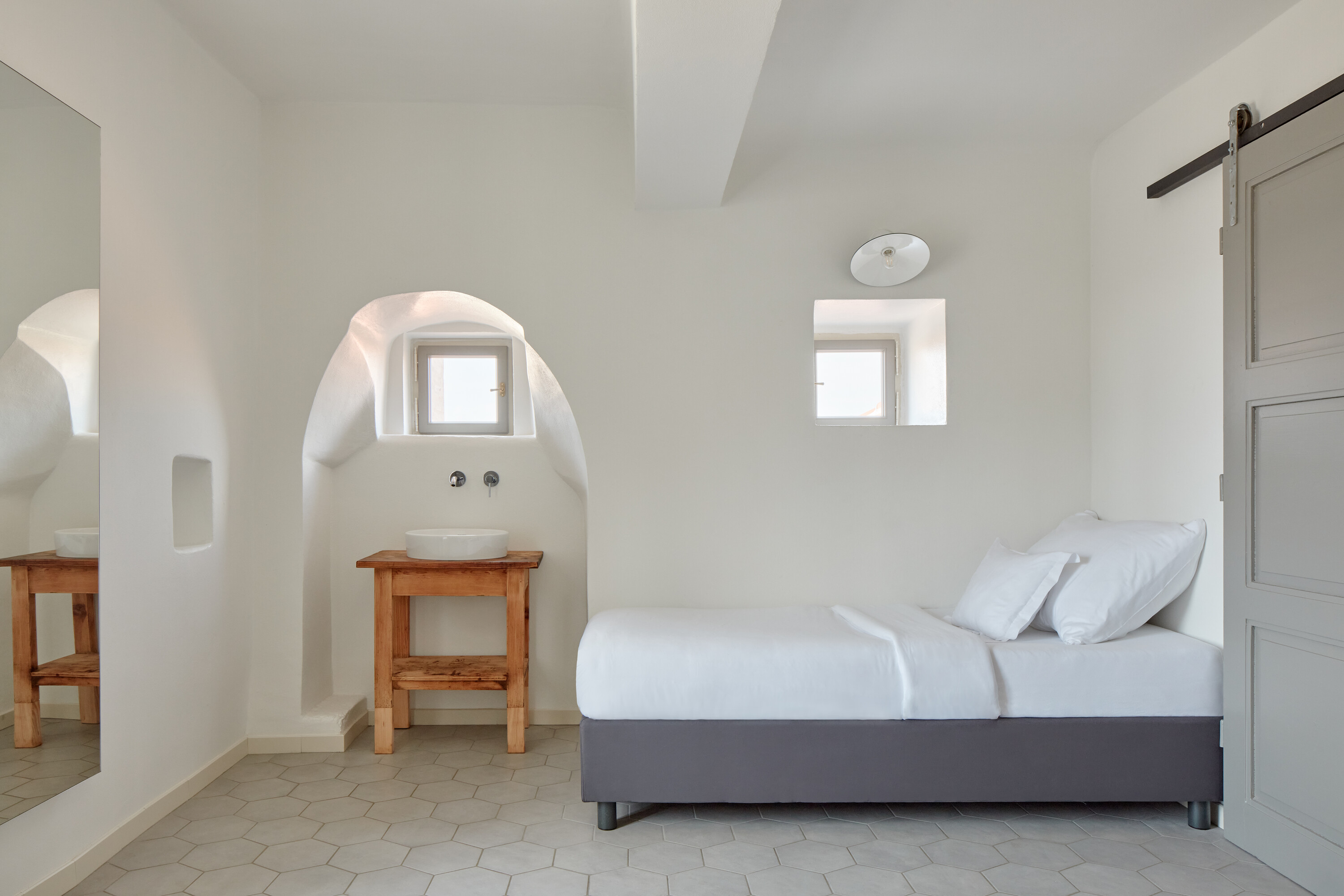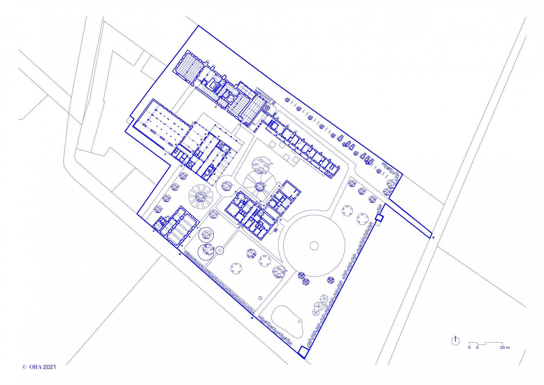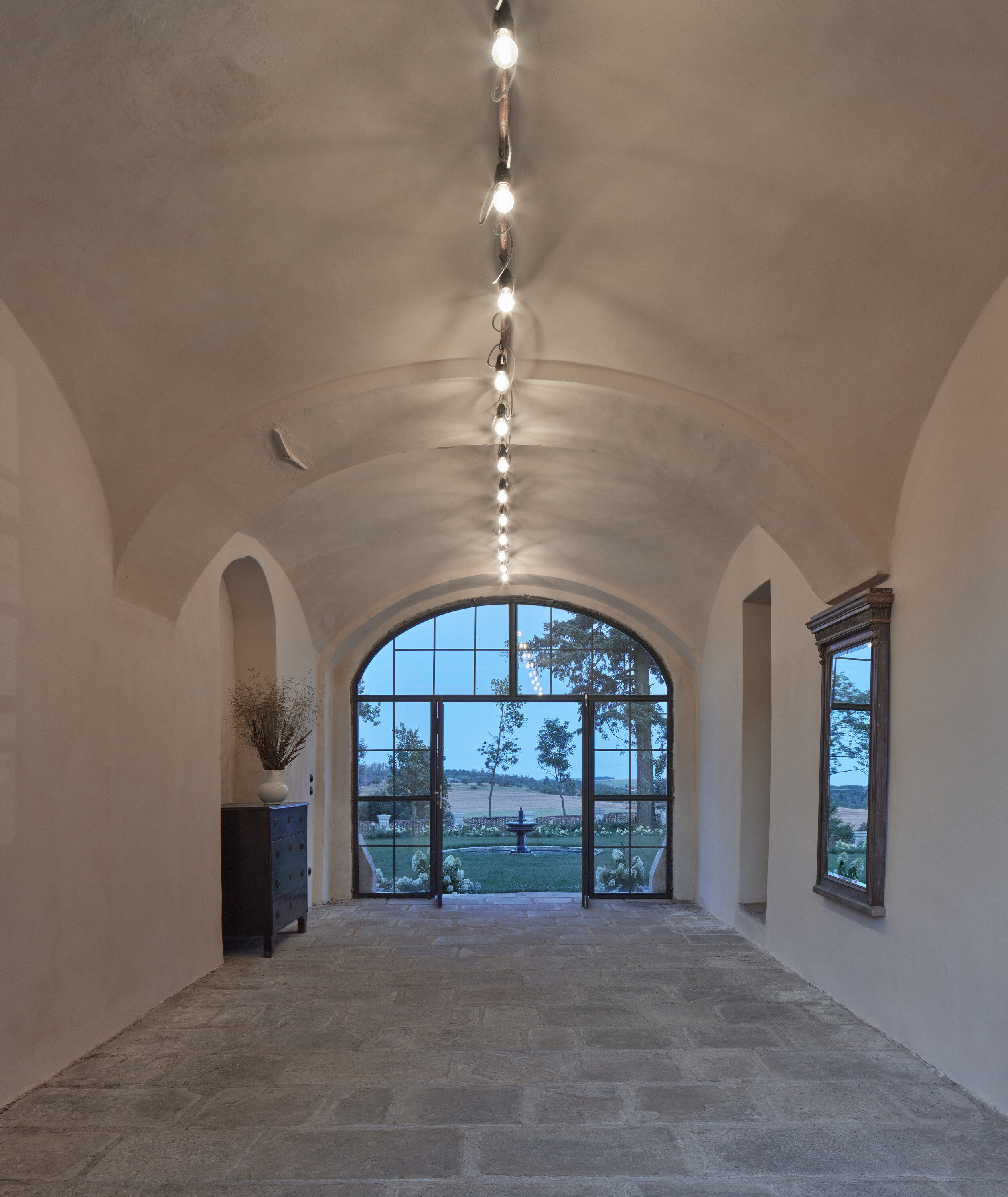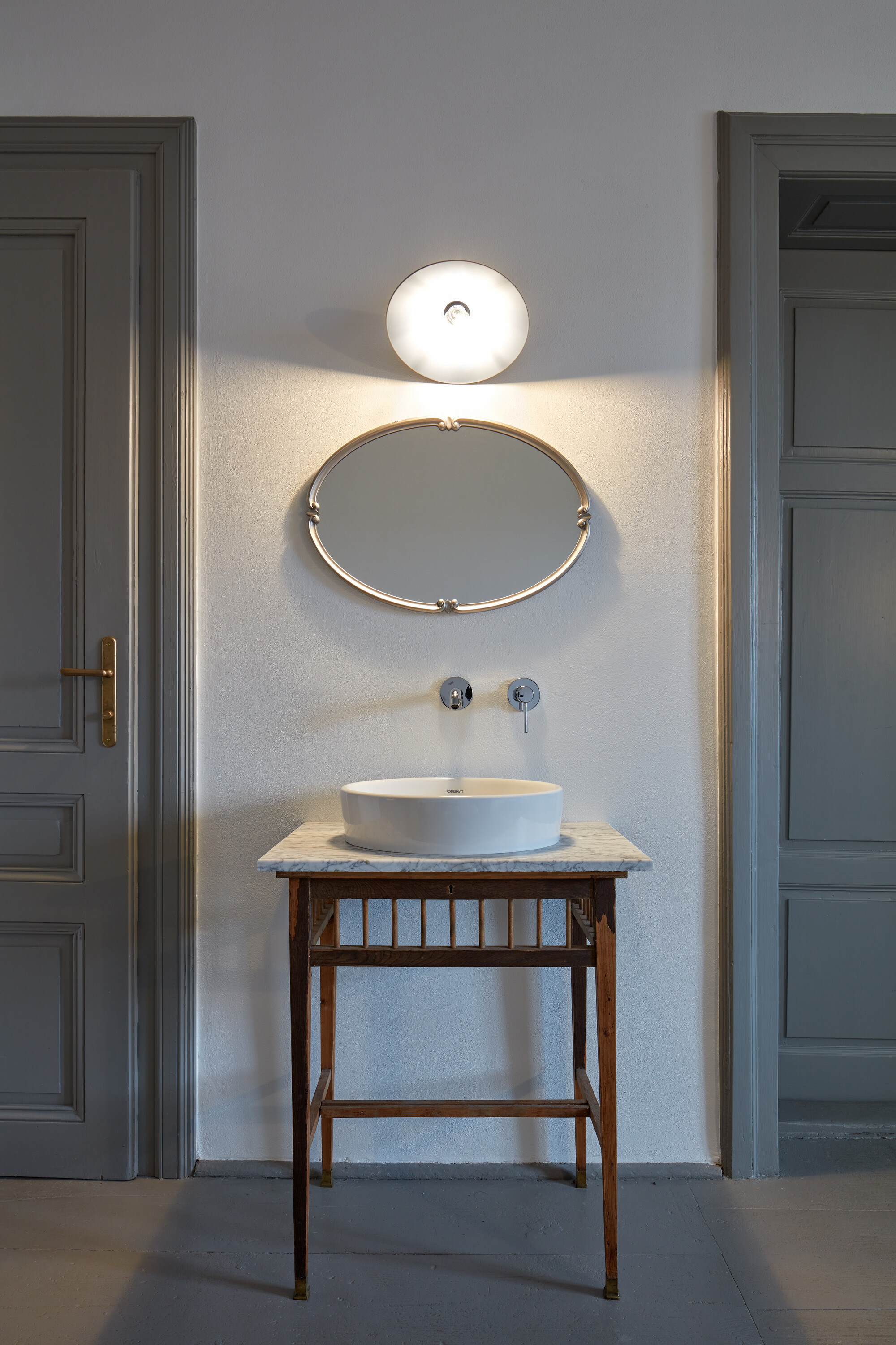 “Interiér je záměrně spartánský, nechybí mu ale přívětivost,” vysvetľujú architekti z ateliéru ORA, ktorí dbajú na zachovanie autentických materiálov a detailov. Ako príklad môžu slúžiť dobové dvere, ktoré nahrádzajú nové jednoduché výplne len v prípade absencie originálu. Rovnakú logiku aplikovali pri rekonštrukcii podláh, kde možno vidieť dobové masívne drevené kazety, doplnené čadičovými a cementovými dlaždicami. V interiéri sa odhaľujú fragmenty pôvodnej výmaľby.