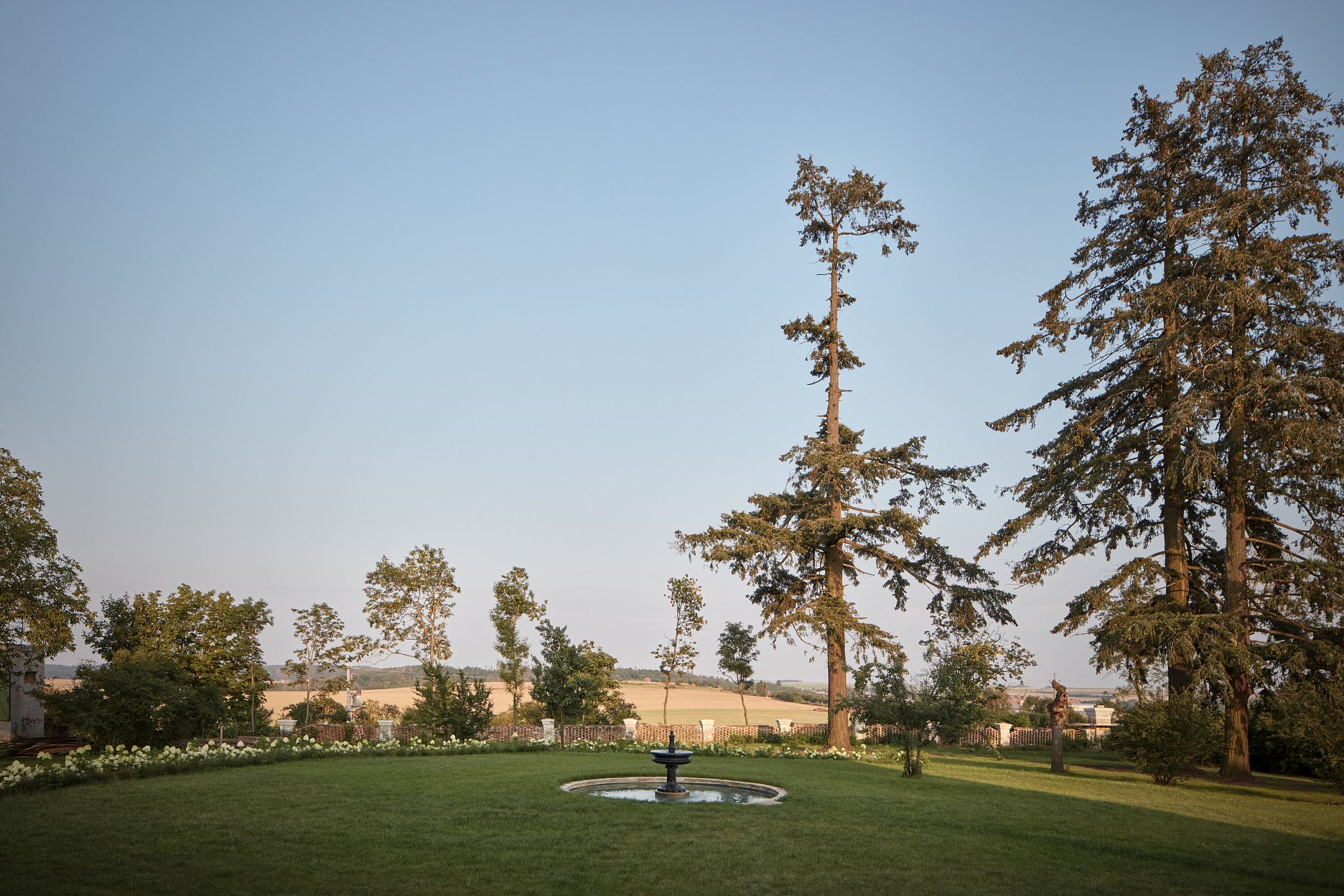 Záhradné úpravy zodpovedajú charakteru jednotlivých častí areálu. K najmladšej výrobnej budove, ktorá v súčasnosti slúži ako reštaurácia, prilieha malý úžitkový záhon doplnený starými odrodami ovocných stromov. Staršiu výrobnú časť obklopuje divoká zeleň. Malé jazierko v rohu záhrady plní dažďová voda zo žľabov Kocandy.