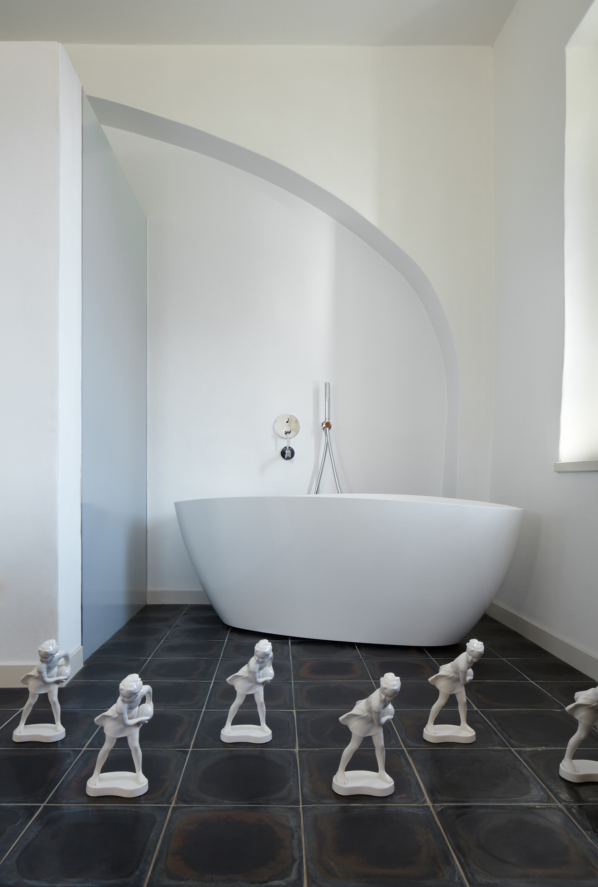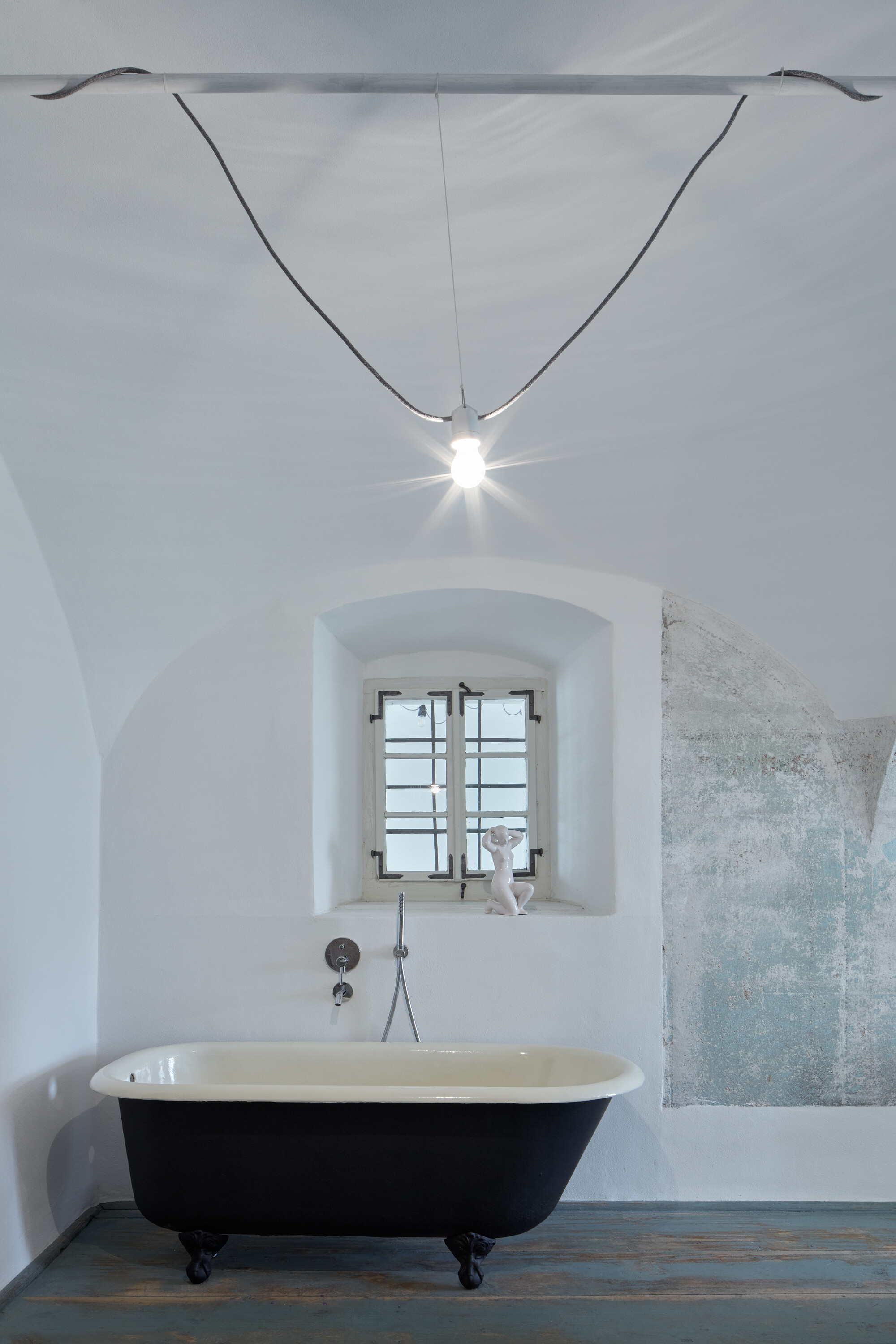 “Při zařizování jsme maximálně využili starého nábytku - stoly, skříně, židle, ale i stolky pod umyvadla nebo staré litinové vany, které jsme sami posháněli z různých koutů republiky, nebo nakoupili u oblíbeného antikváře,” dopĺňajú autori.