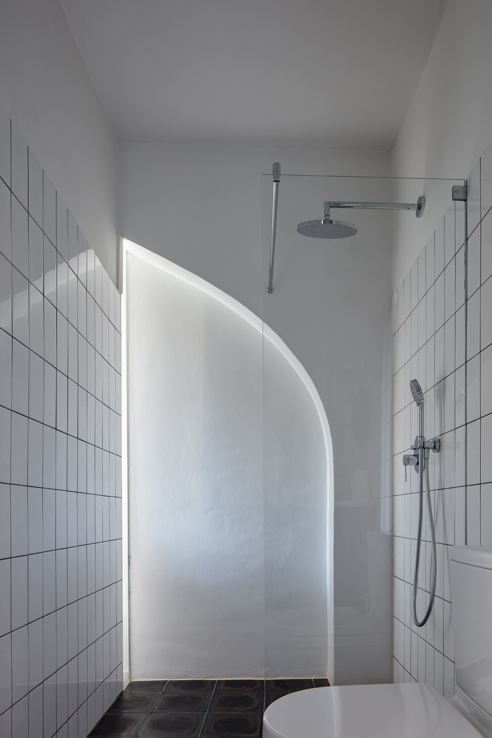 “Člověk si všude uvědomuje, že je ve starém domě. Není to ale hra na staré, bílé zdi poskytují dostatek uklidnění k výsledné koláži,” dopĺňajú architekti.