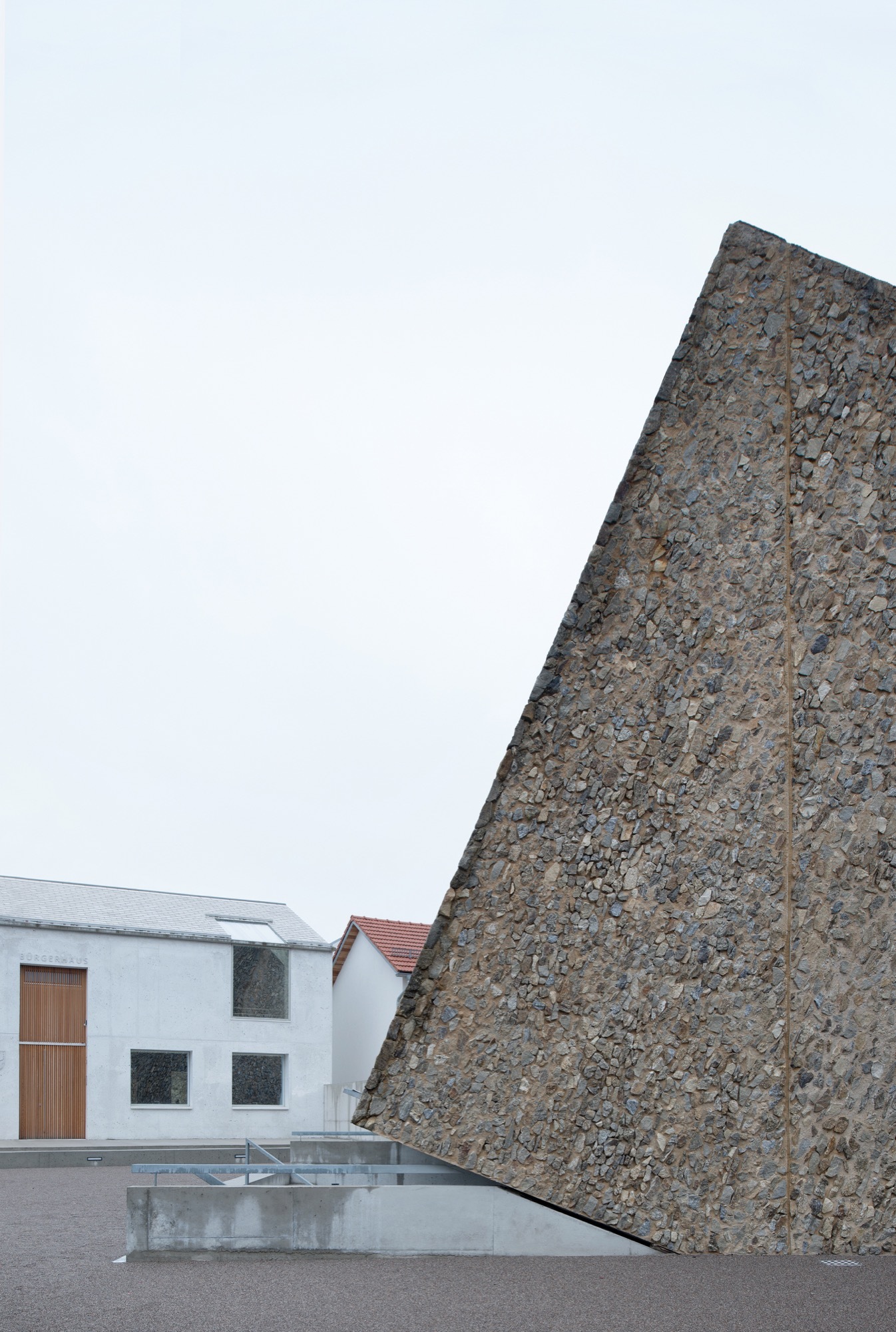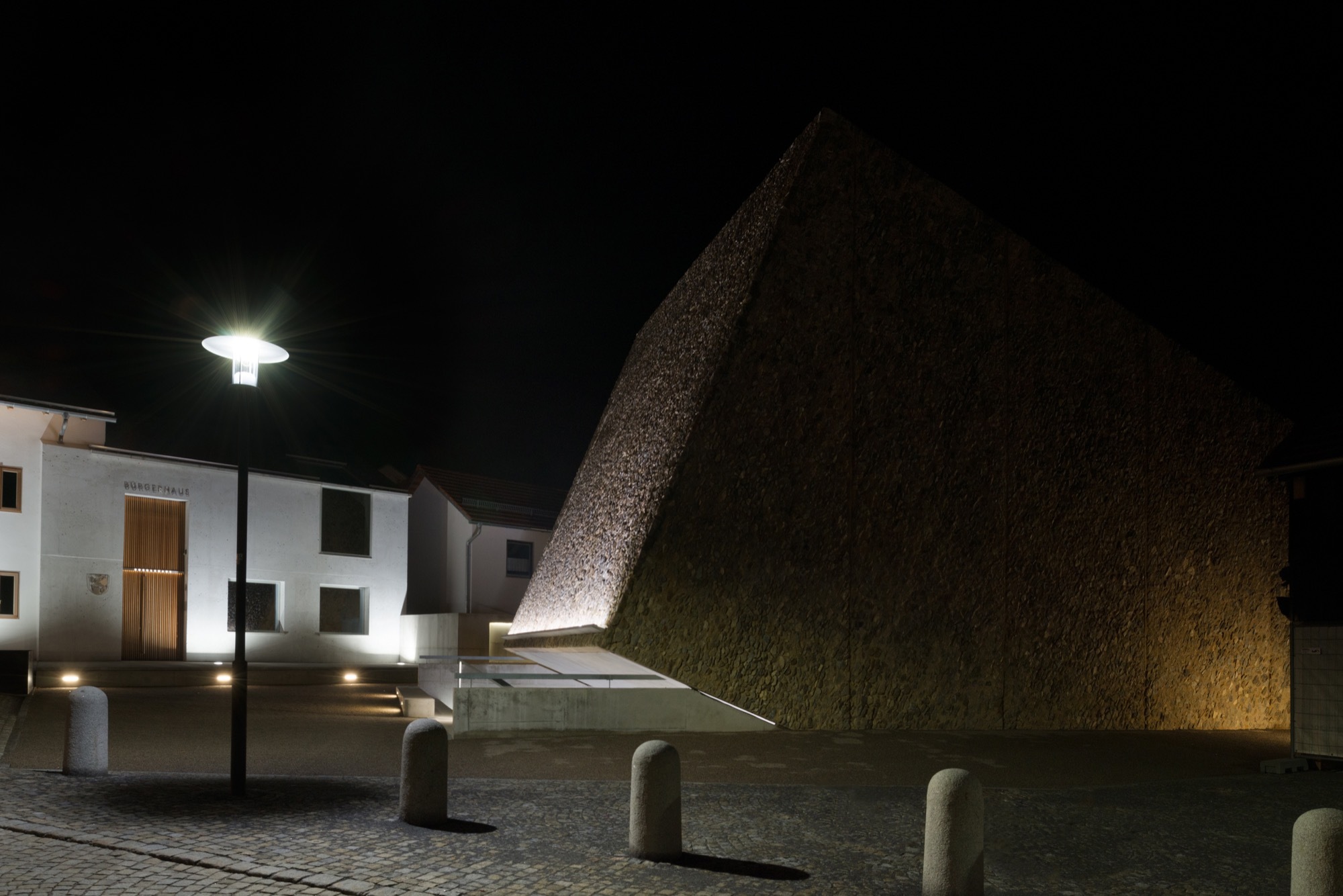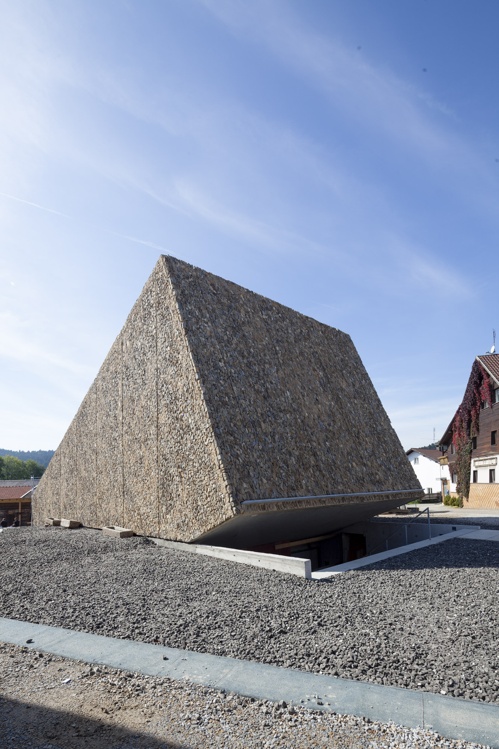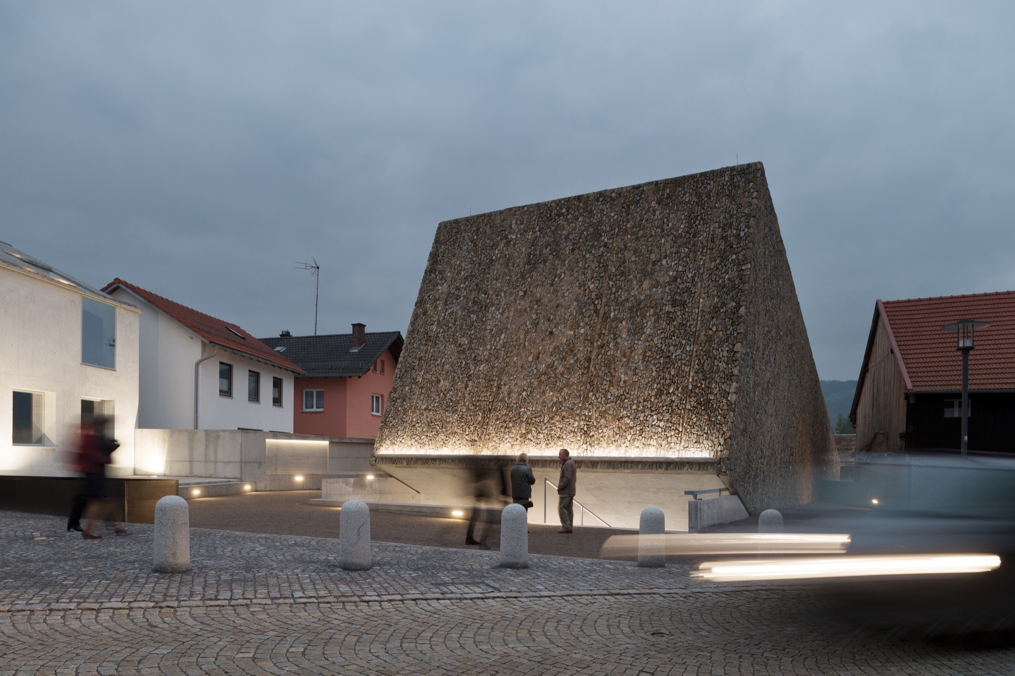 Malá bavorská dedina Blaibach, neďaľeko českej hranice podstúpila v priebehu roku 2014 ambiciózny projekt revitalizácie. V dedine bola postavená nová radnica, penzión a v neposlednom rade malá koncertná hala, ktorú navrhol tím architektov mníchovského ateliéru Petera Haimerla. Skulpturálny objekt napoly ponorený do priestoru námestia vytvára novú, zaujímavú dynamiku v architektúre obce a zároveň reaguje na topografiu okolia. Fasáda obložená miestnou žulou pripomína tradíciu Blaibachu.