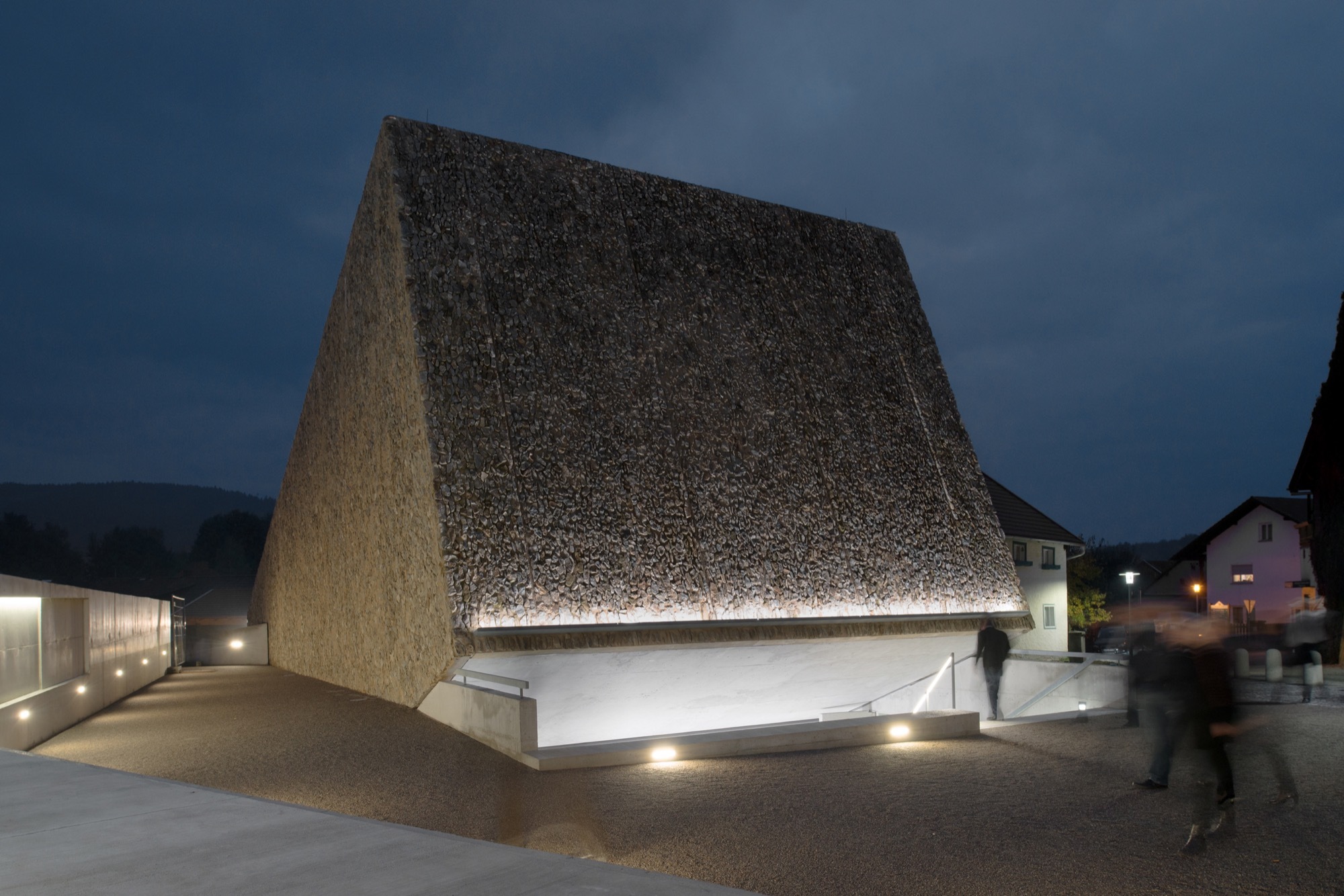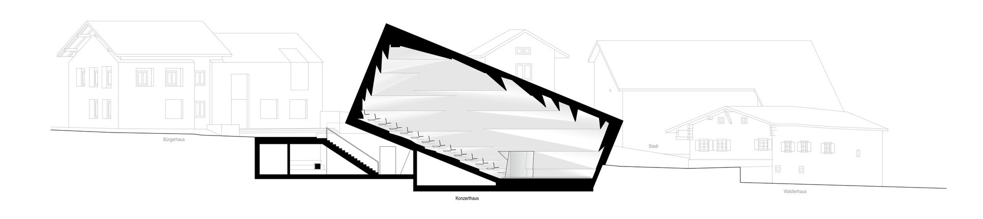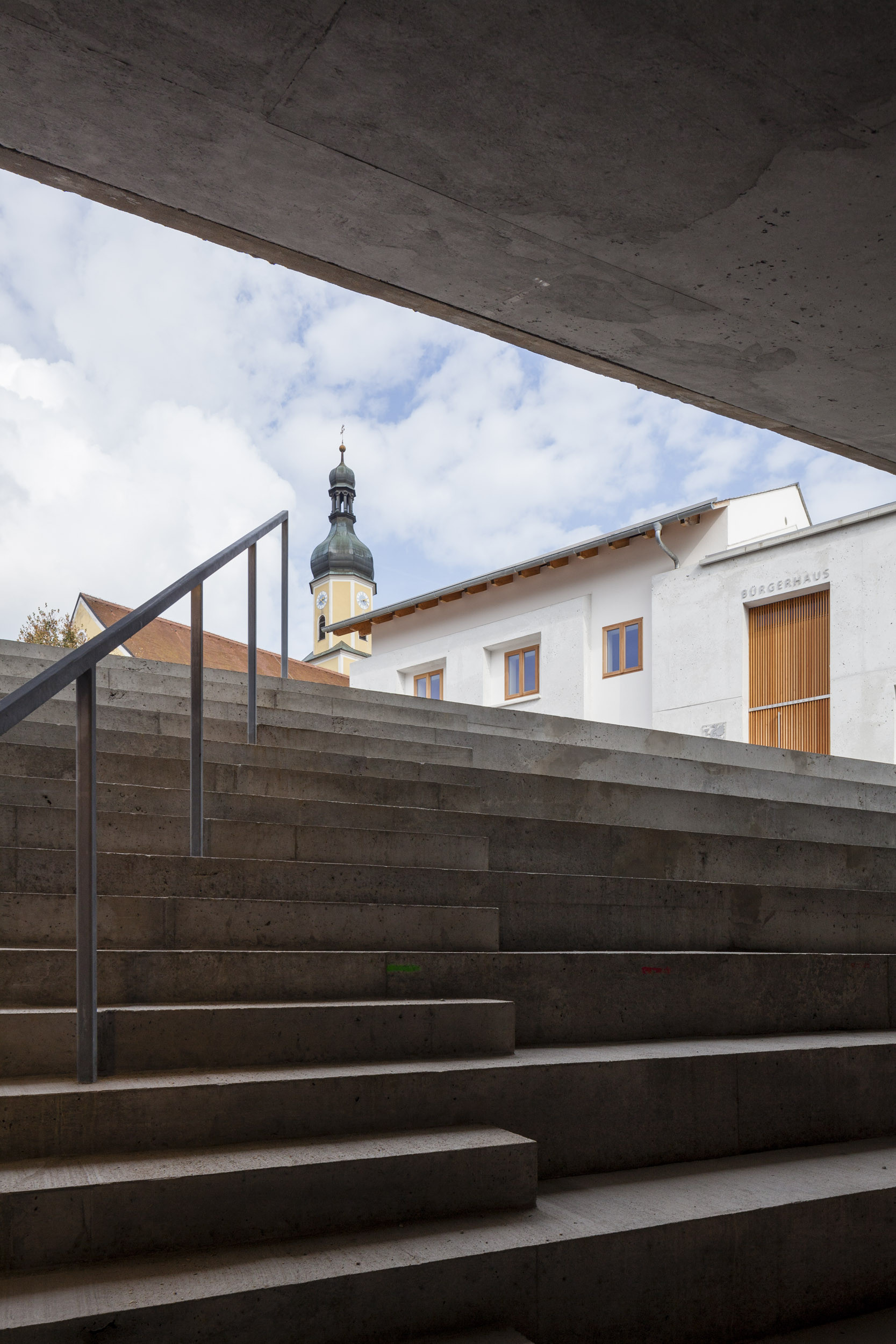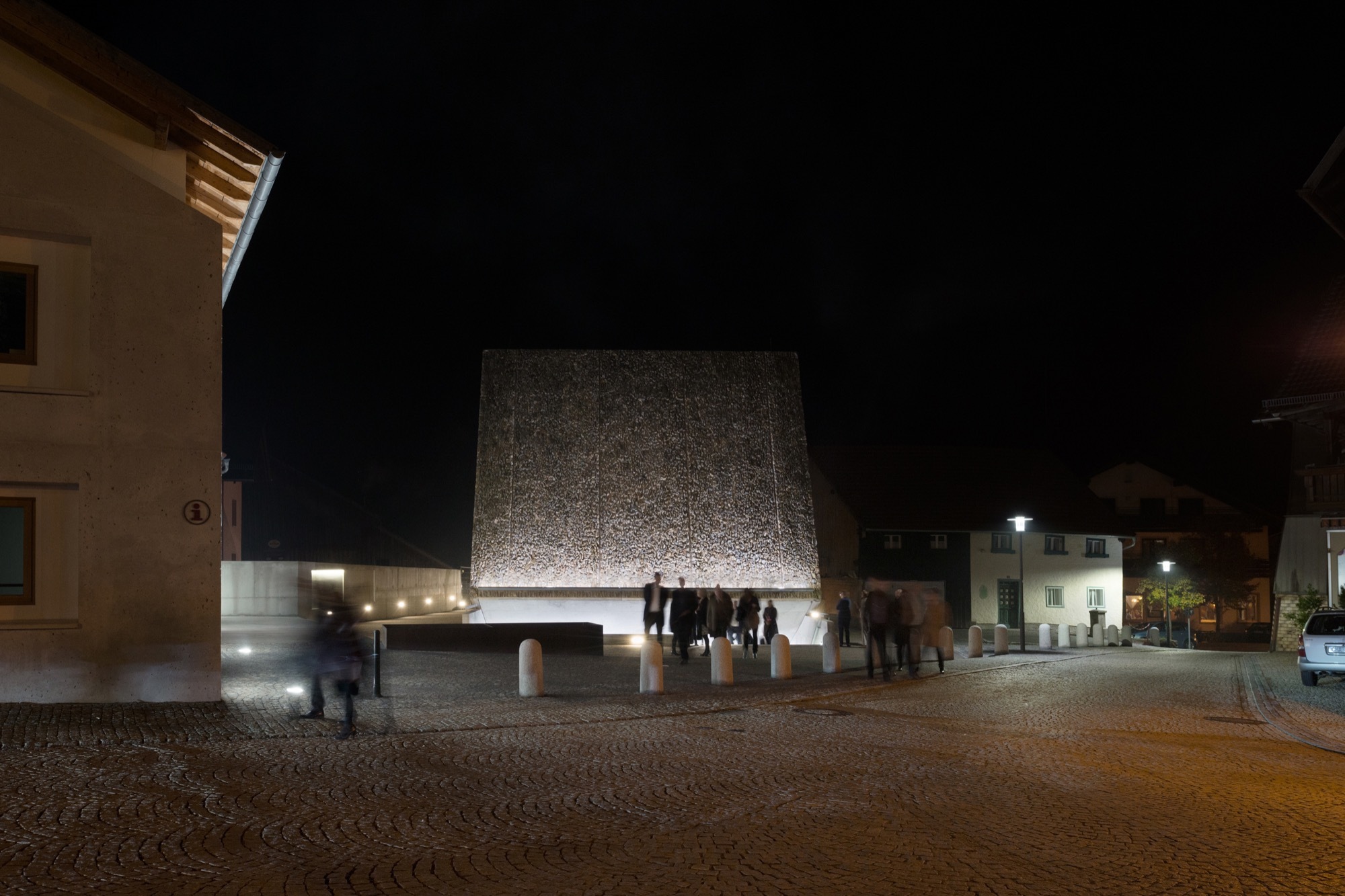 Malá bavorská dedina Blaibach, neďaľeko českej hranice podstúpila v priebehu roku 2014 ambiciózny projekt revitalizácie. V dedine bola postavená nová radnica, penzión a v neposlednom rade malá koncertná hala, ktorú navrhol tím architektov mníchovského ateliéru Petera Haimerla. Skulpturálny objekt napoly ponorený do priestoru námestia vytvára novú, zaujímavú dynamiku v architektúre obce a zároveň reaguje na topografiu okolia. Fasáda obložená miestnou žulou pripomína tradíciu Blaibachu.