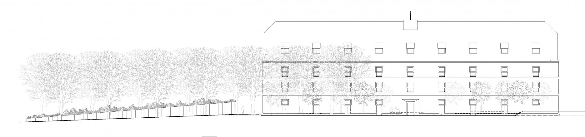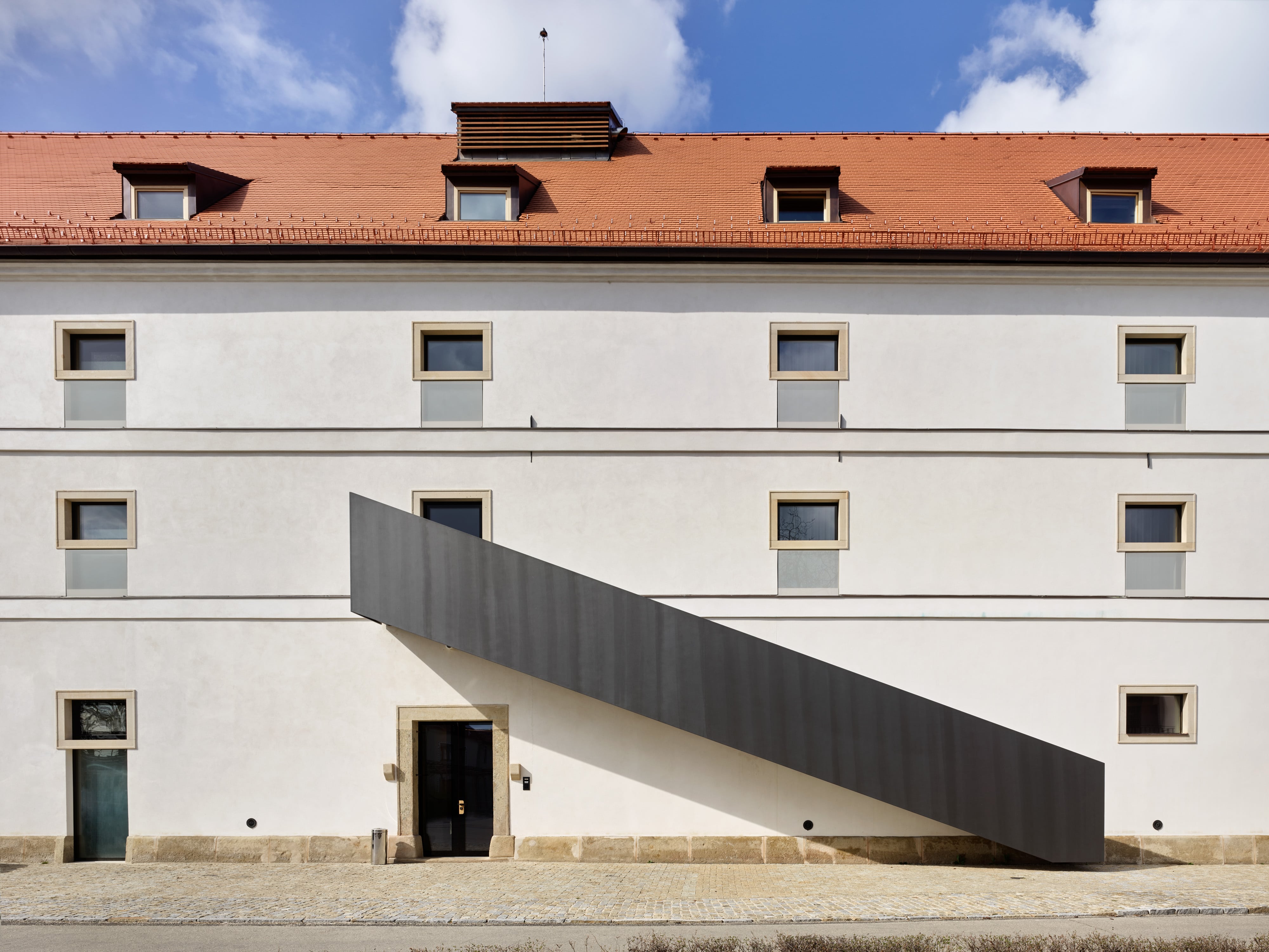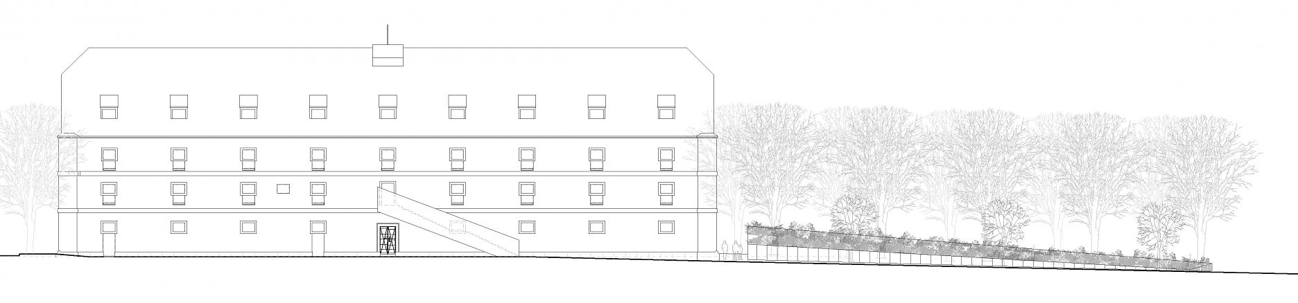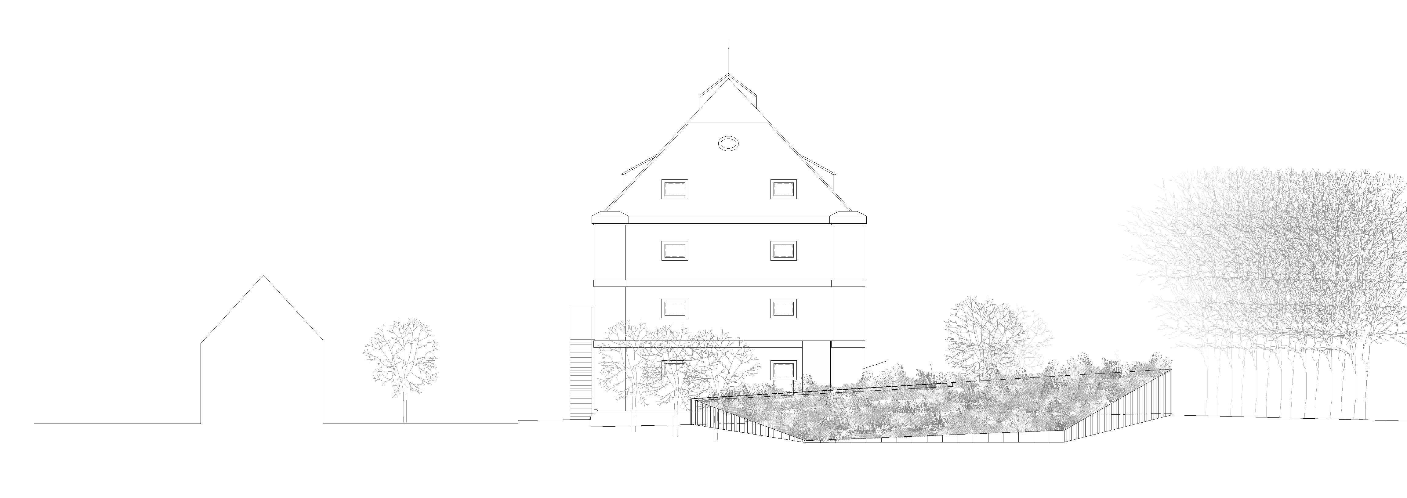 Z dôvodu zachovania autenticity historickej stavby a minimálnych zásahov do pôvodných konštrukcií navrhli architekti samostatný objekt s technickým zázemím, ktorý je zapustený do terénu.