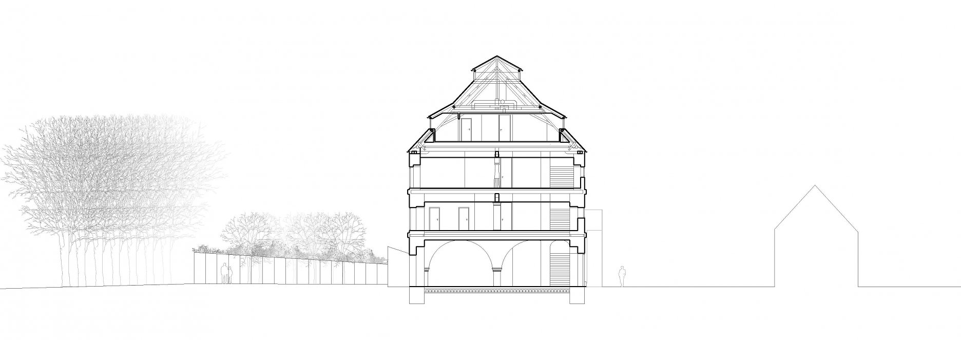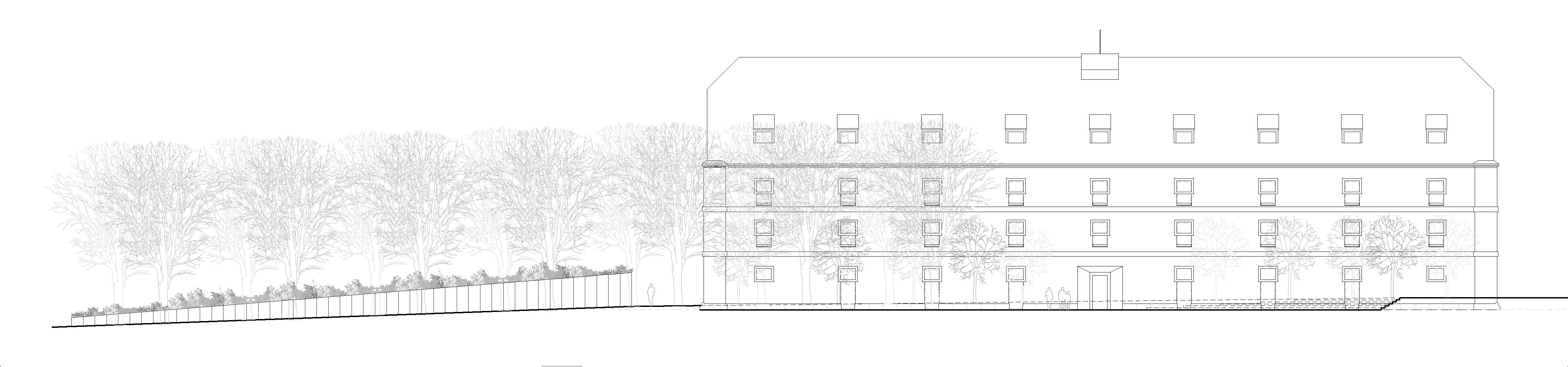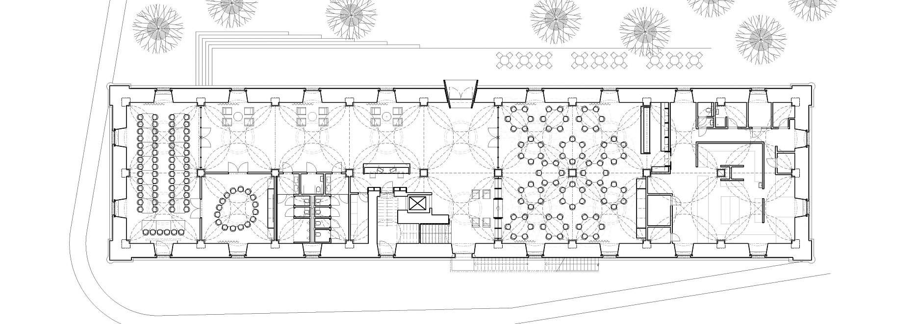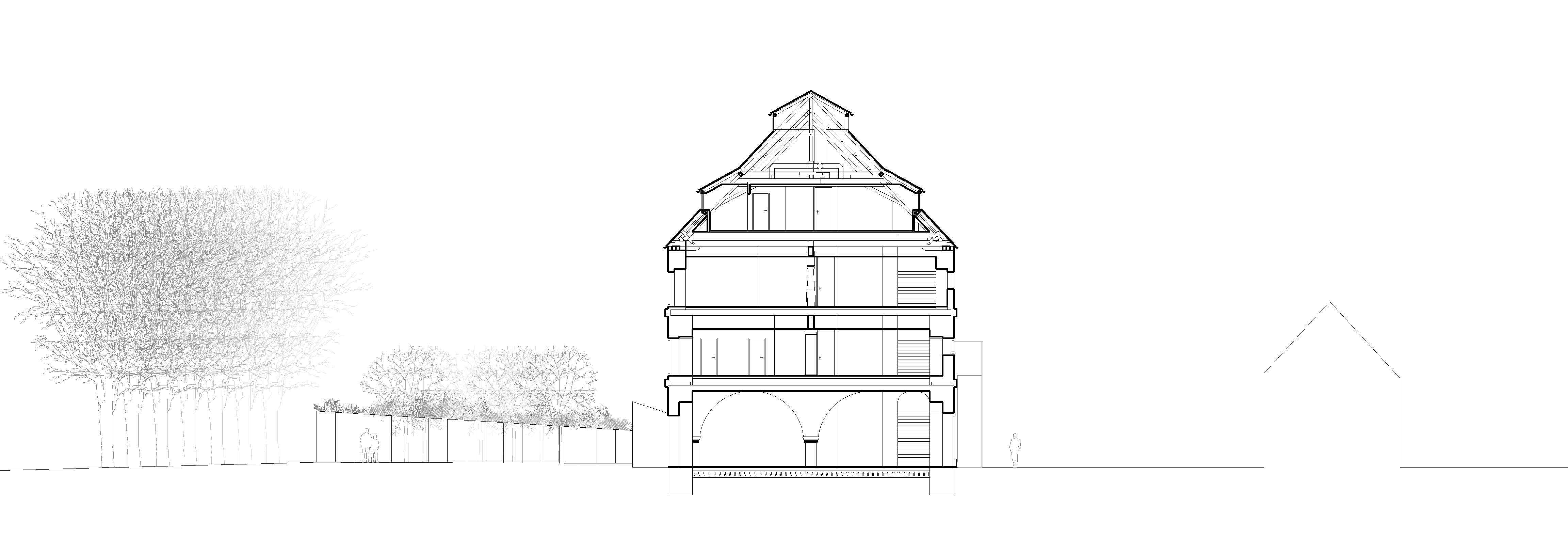 Z dôvodu zachovania autenticity historickej stavby a minimálnych zásahov do pôvodných konštrukcií navrhli architekti samostatný objekt s technickým zázemím, ktorý je zapustený do terénu.