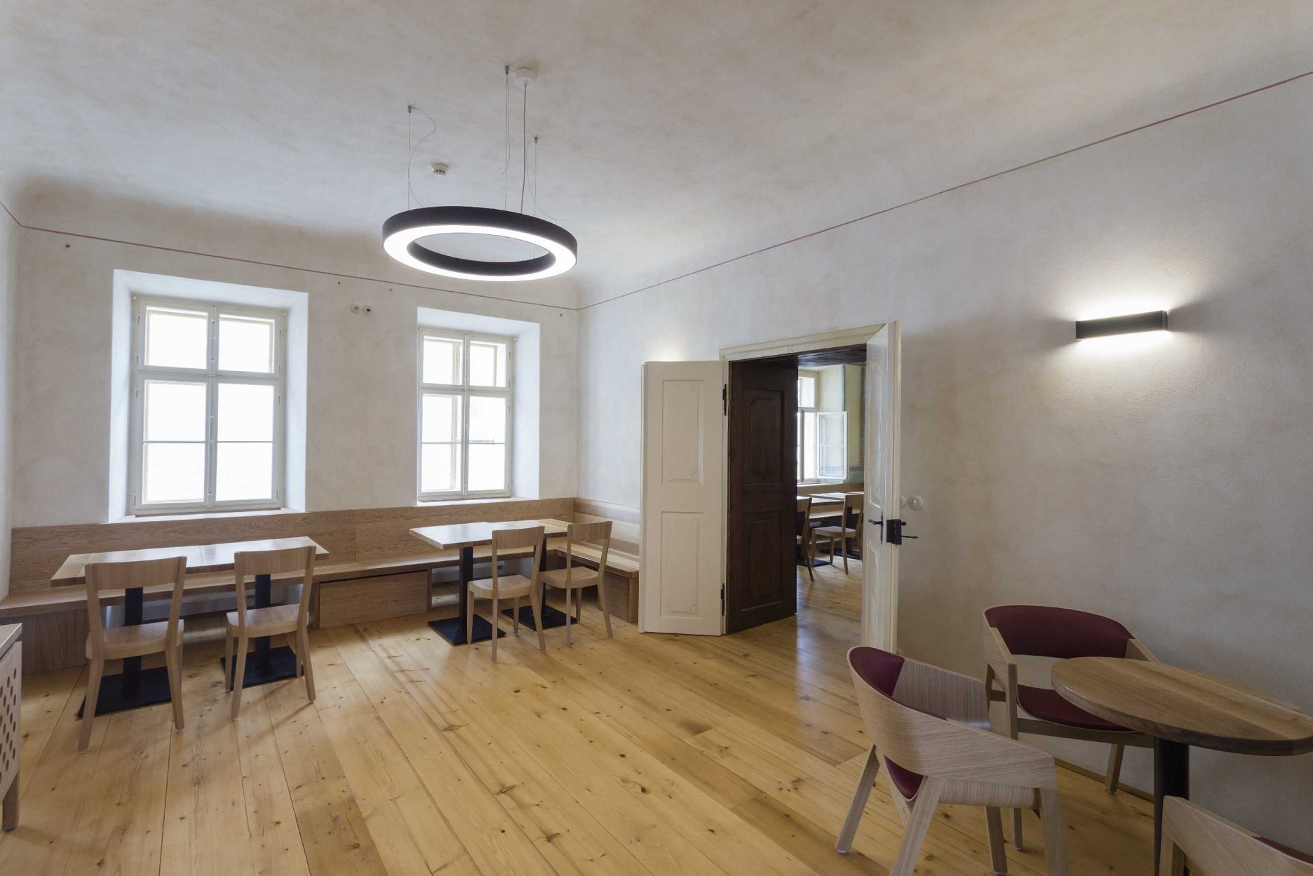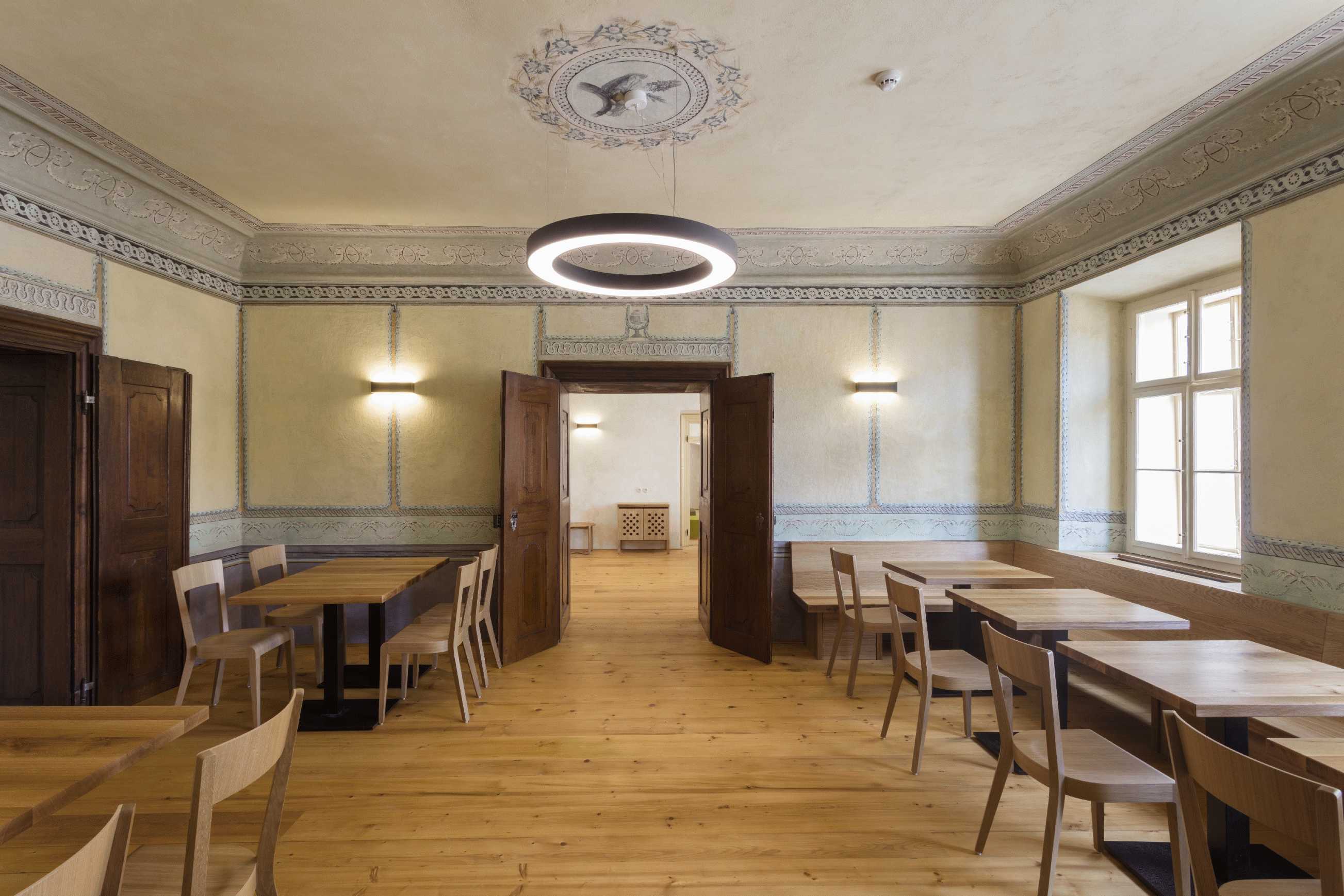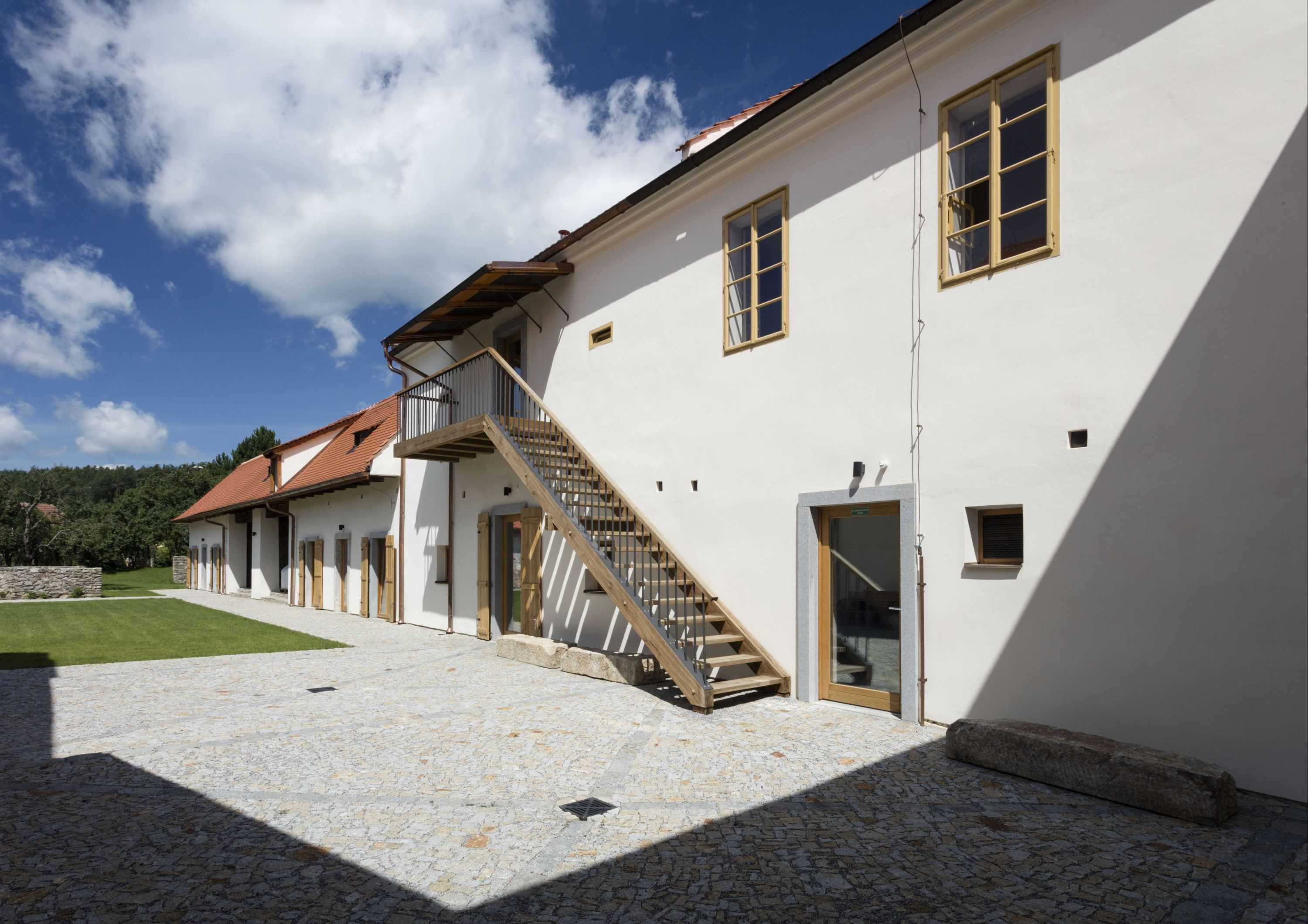Dôsledná rekonštrukcia za účelom prispôsobenia vnútorného prostredia novej funkcii. Architektonické riešenie rešpektuje pôvodnú podobu a dispozíciu kultúrnej pamiatky v juhočeskej obci Chvalšiny, neďaleko od Českého Krumlova. Počas dva roky trvajúcich prác boli dôsledne sanované hodnotné kamenárske, stolárske a zámočnícke detaily. Súdobý autorský vklad tvorí funkčnú vrstvu, ktorá sa stáva súčasťou novej kapitoly v histórii objektu.