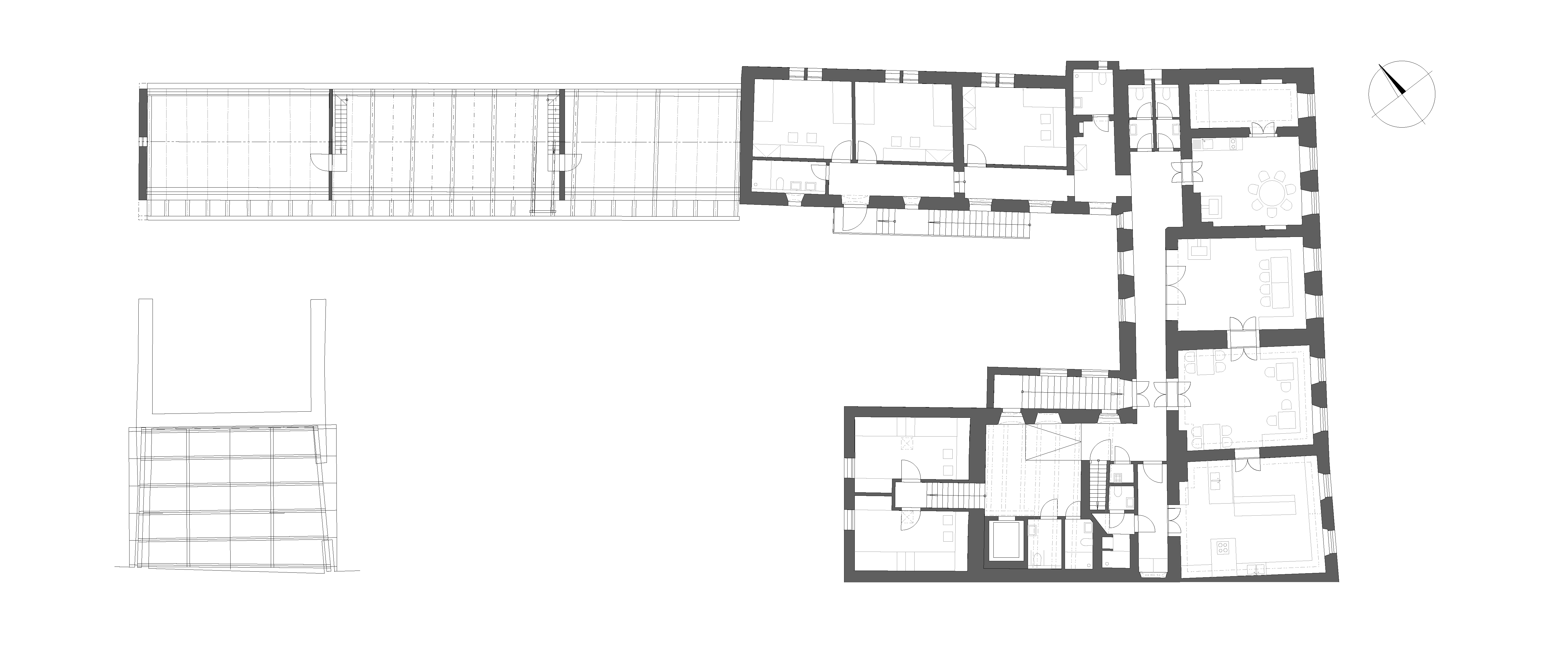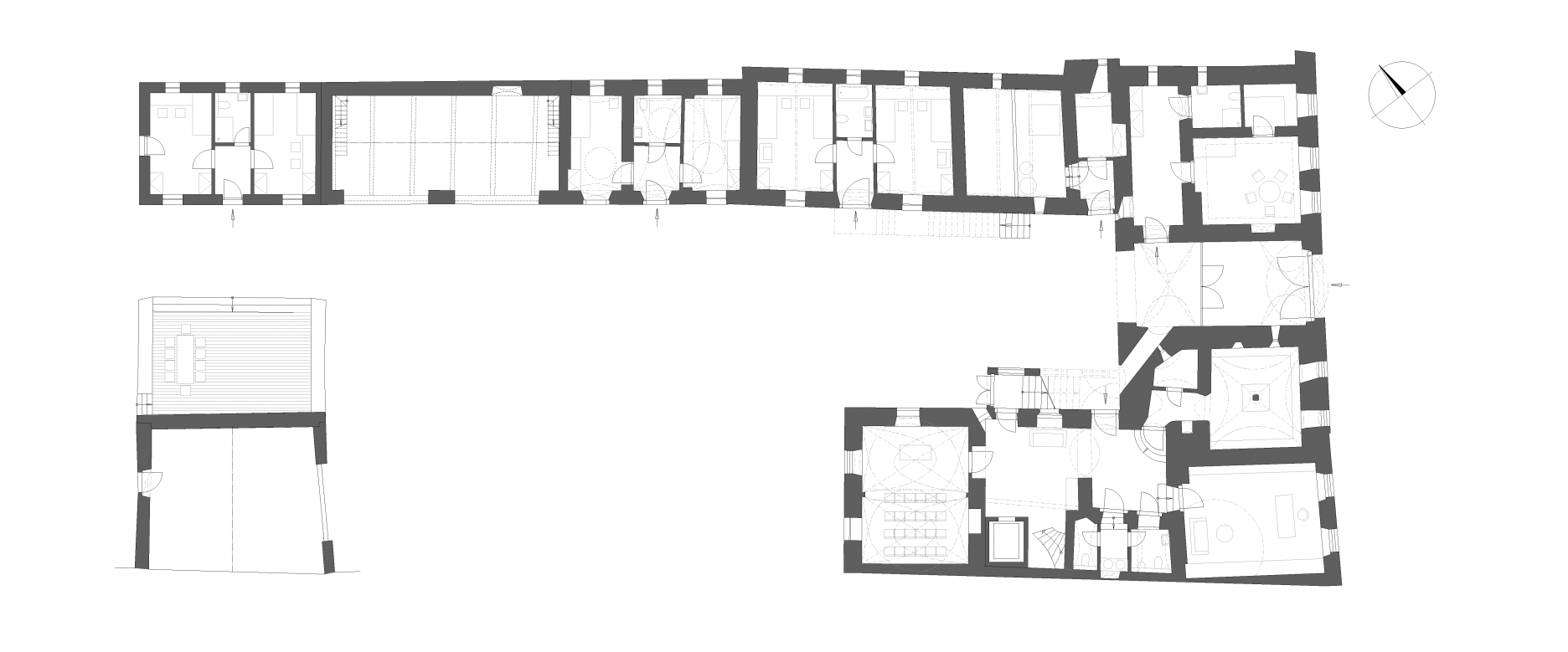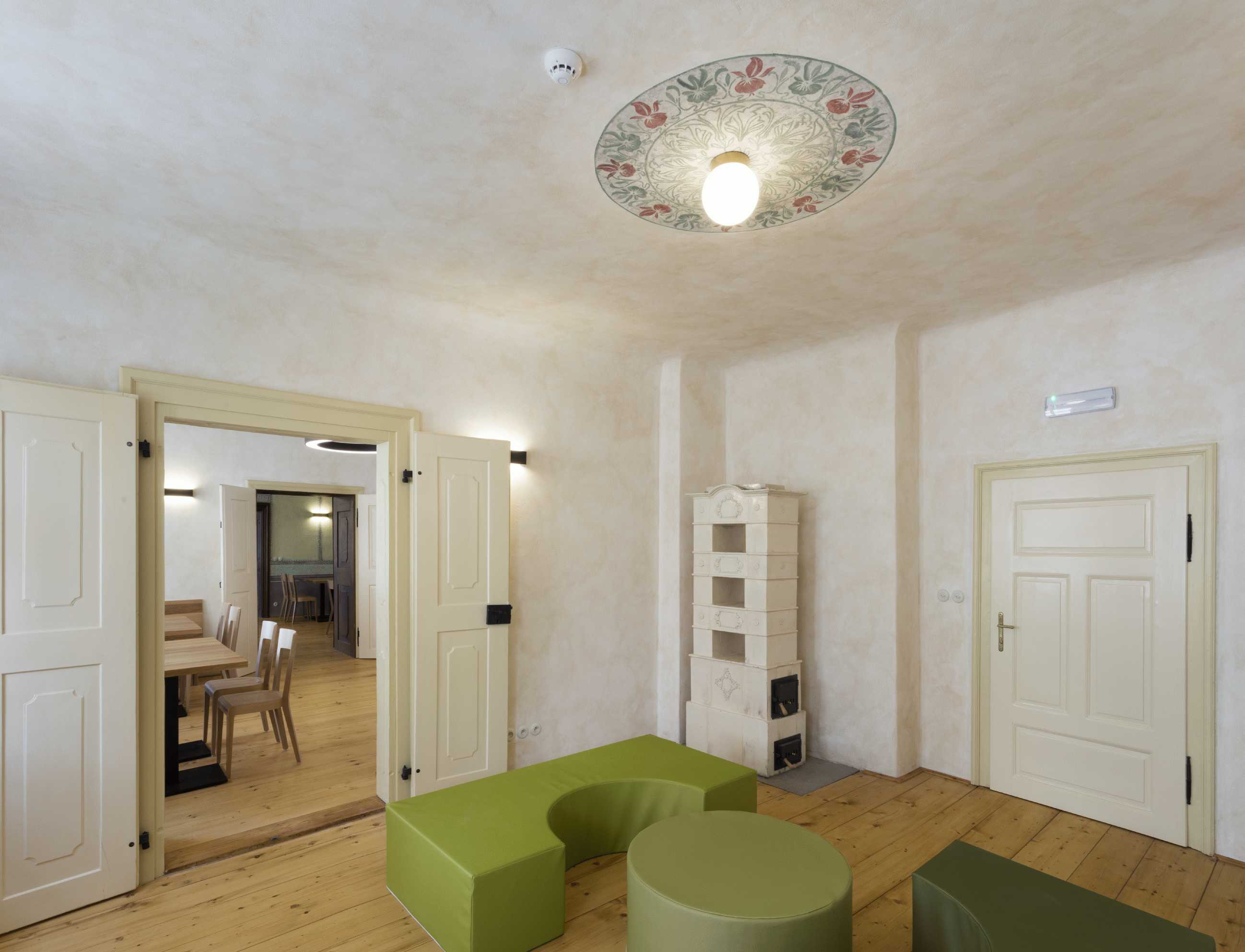 Dôsledná rekonštrukcia za účelom prispôsobenia vnútorného prostredia novej funkcii. Architektonické riešenie rešpektuje pôvodnú podobu a dispozíciu kultúrnej pamiatky v juhočeskej obci Chvalšiny, neďaleko od Českého Krumlova. Počas dva roky trvajúcich prác boli dôsledne sanované hodnotné kamenárske, stolárske a zámočnícke detaily. Súdobý autorský vklad tvorí funkčnú vrstvu, ktorá sa stáva súčasťou novej kapitoly v histórii objektu.