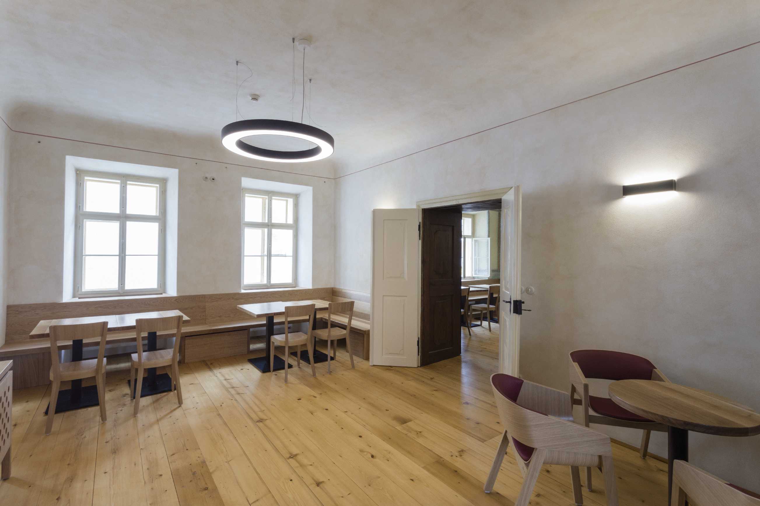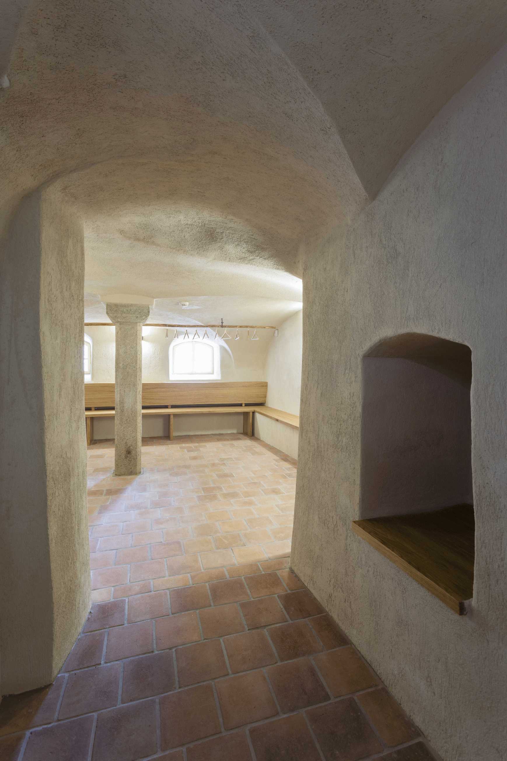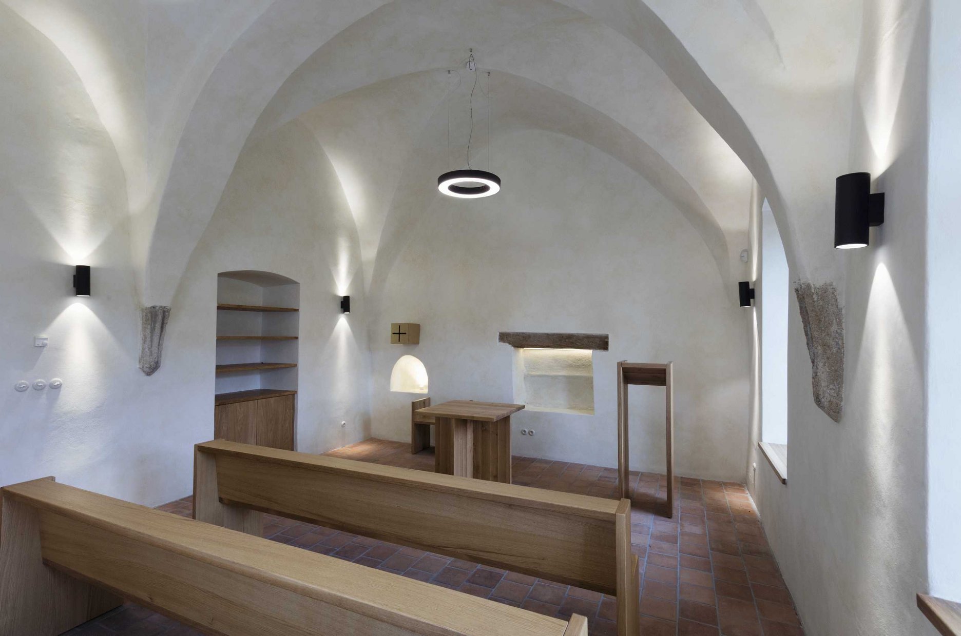 V severnom obvodovom múre pribudli nové okná, na prízemí dvojité prevetrávané podlahy. Klenby boli dodatočne spevnené tiahlami, drevené stropy a krovy precízne zreštaurované. Ako pochôdzna vrstva slúžia pôvodné drevené dosky a nová, remeselne vyrábaná, keramická dlažba. Stolárske, zámočnícke a kamenárske detaily boli sanované a doplnené na základe ich dôkladnej inventarizácie. Dôležitú súčasť interiéru tvorí zreštaurovaná historická výmaľba.