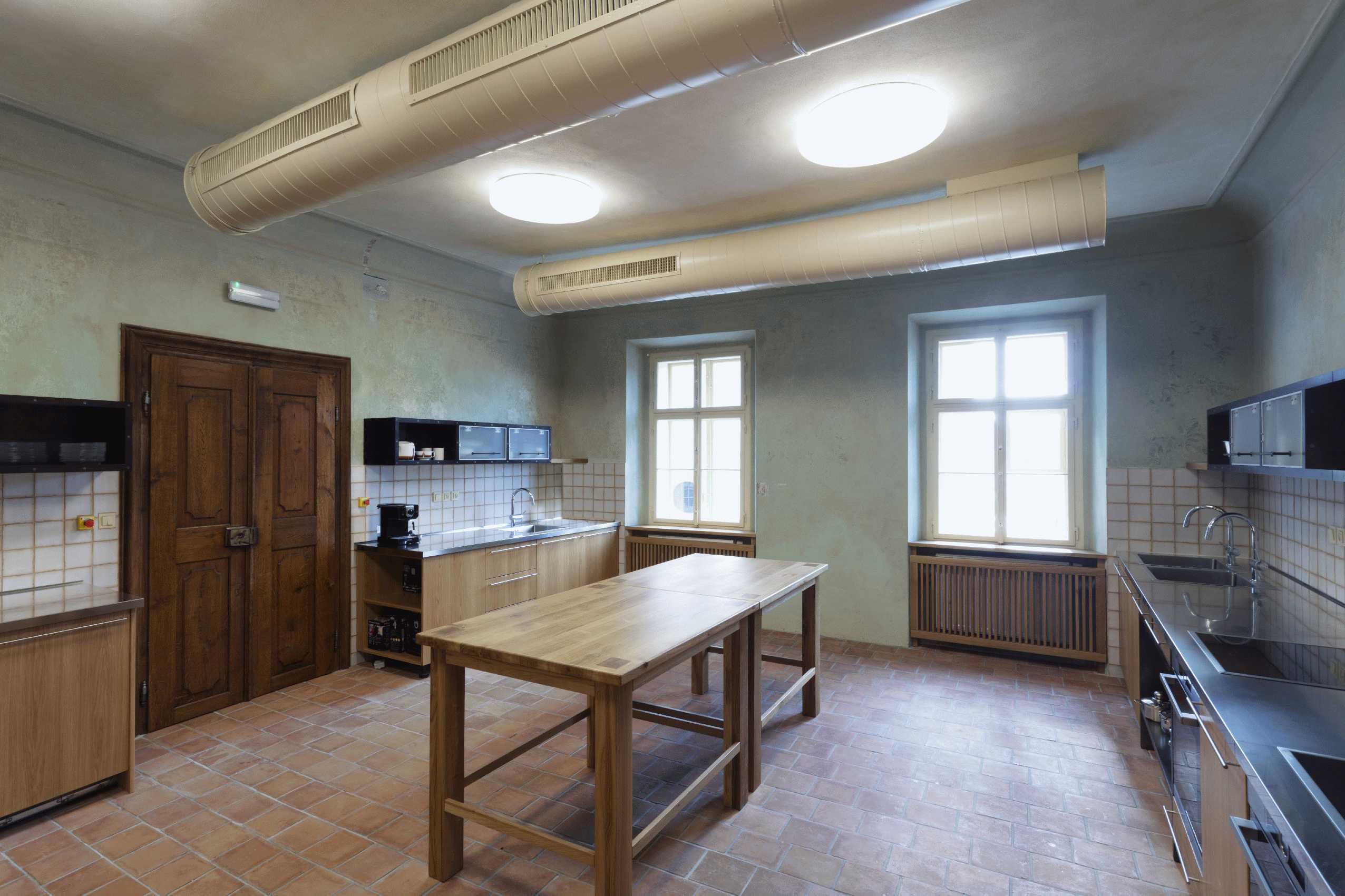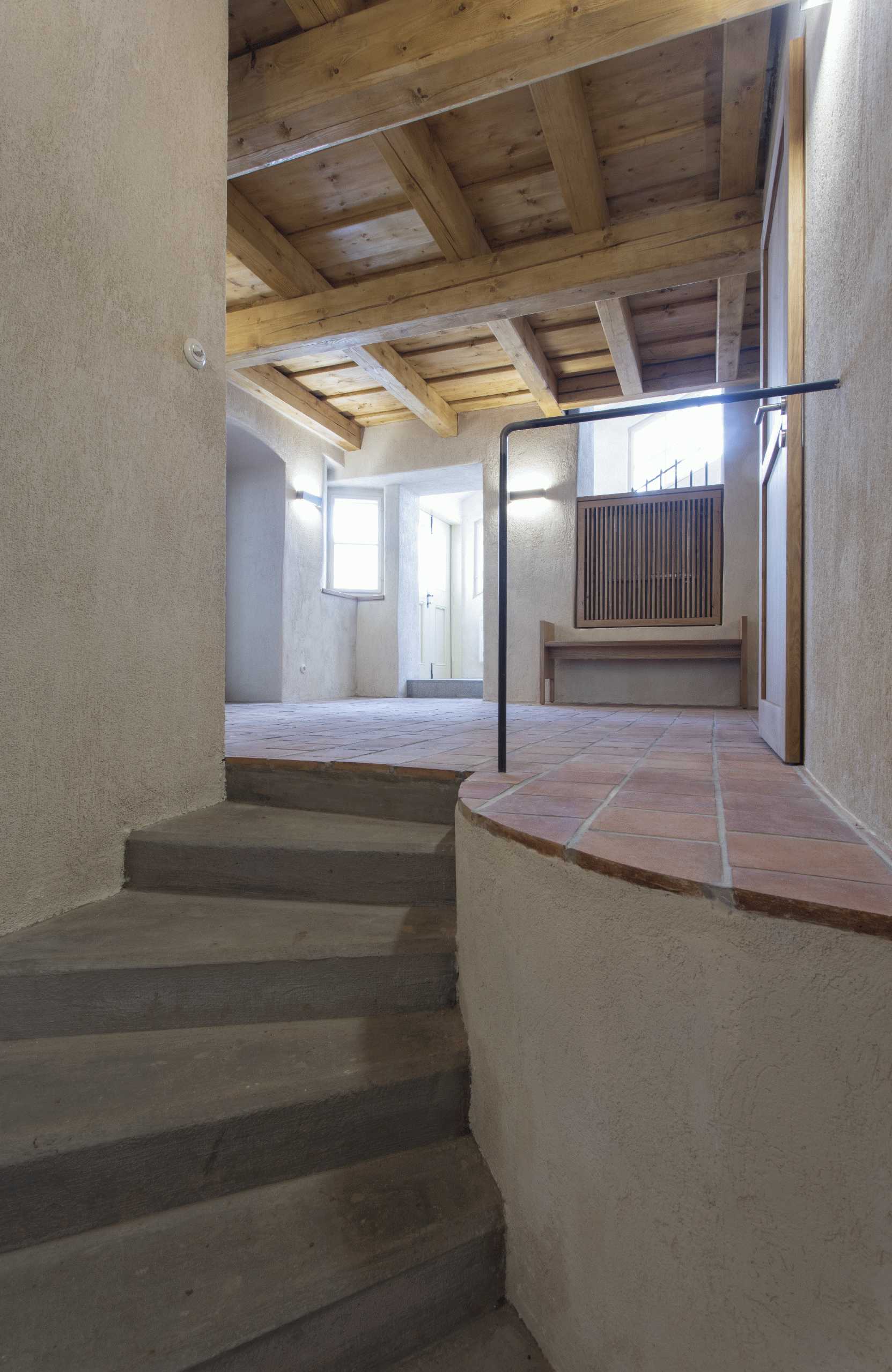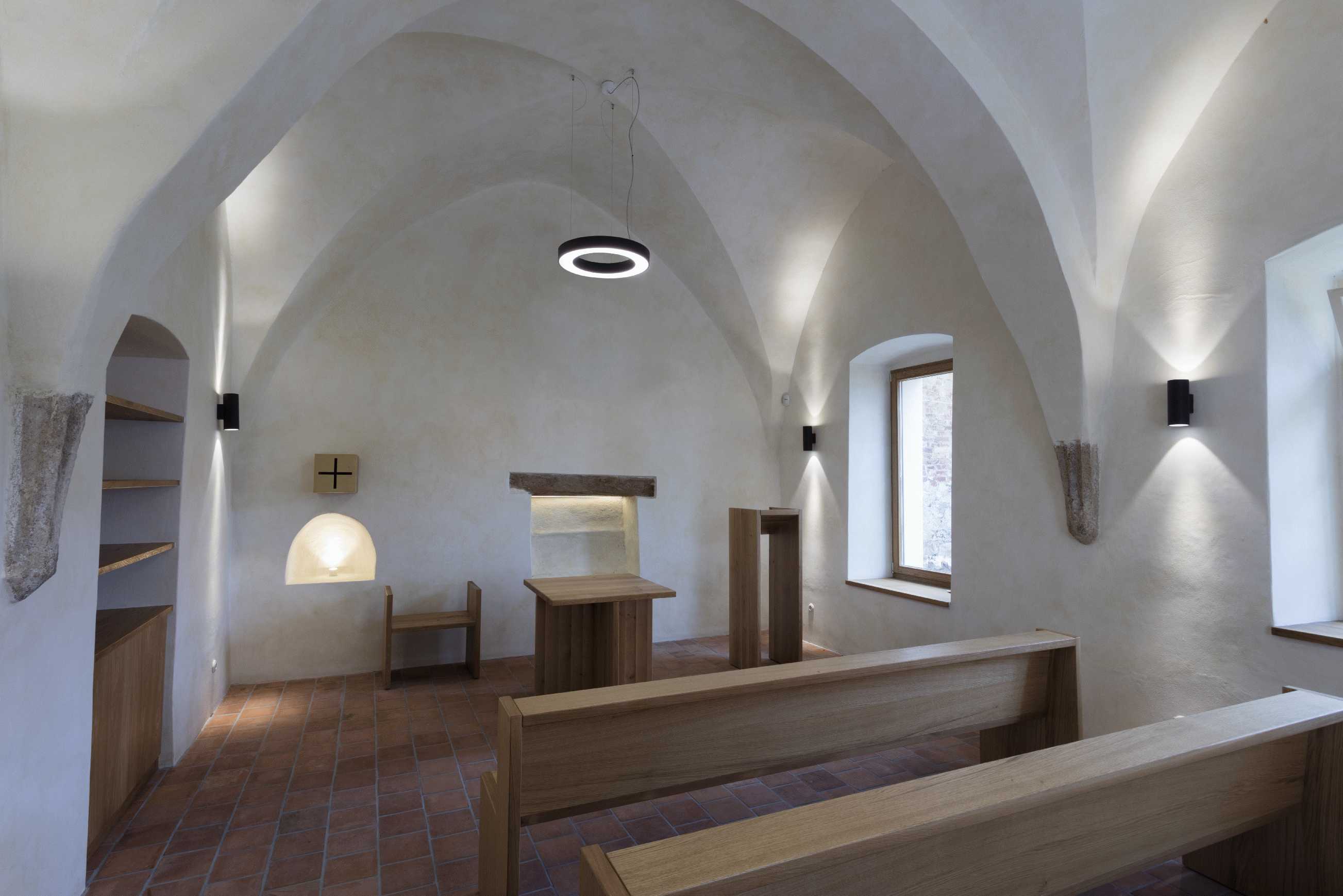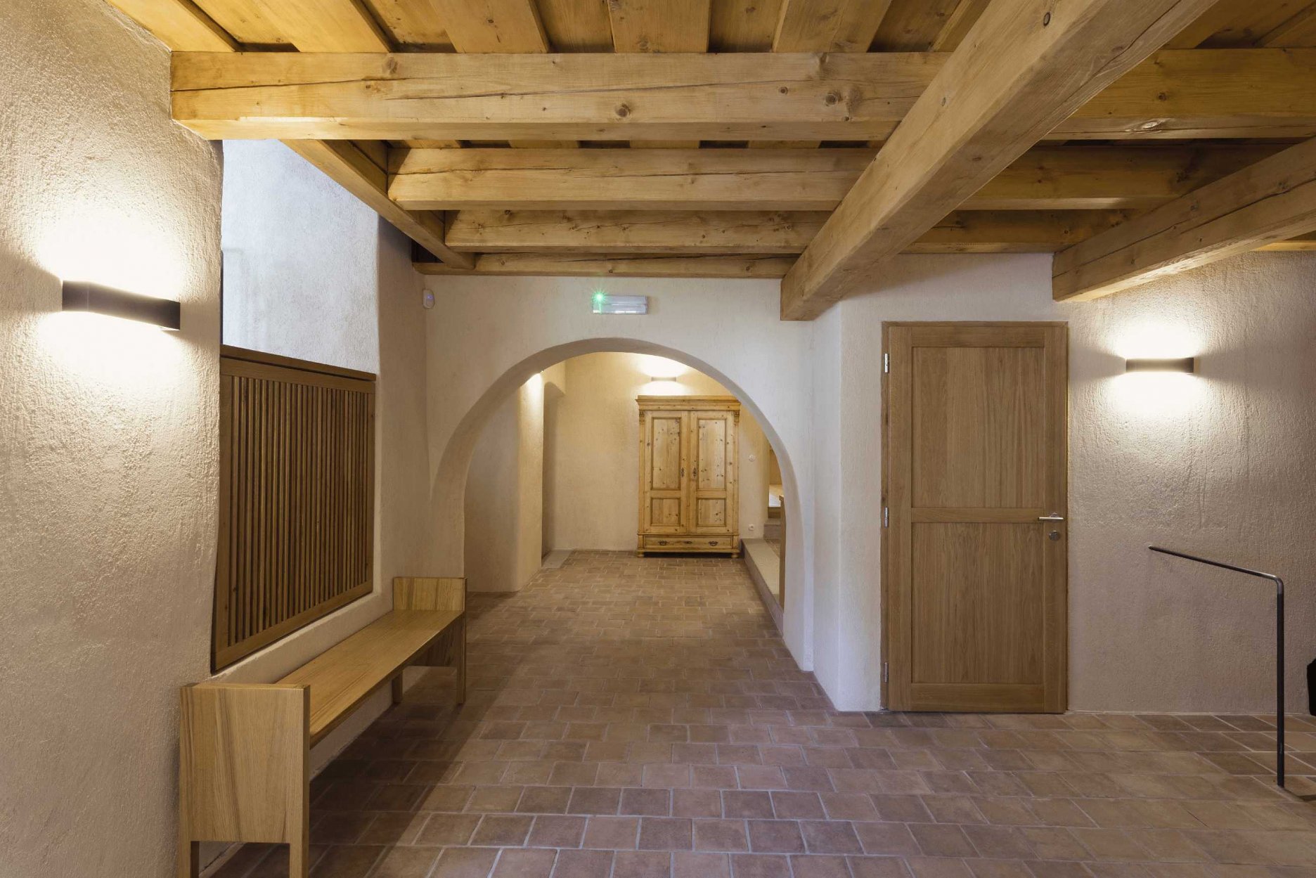 V severnom obvodovom múre pribudli nové okná, na prízemí dvojité prevetrávané podlahy. Klenby boli dodatočne spevnené tiahlami, drevené stropy a krovy precízne zreštaurované. Ako pochôdzna vrstva slúžia pôvodné drevené dosky a nová, remeselne vyrábaná, keramická dlažba. Stolárske, zámočnícke a kamenárske detaily boli sanované a doplnené na základe ich dôkladnej inventarizácie. Dôležitú súčasť interiéru tvorí zreštaurovaná historická výmaľba.