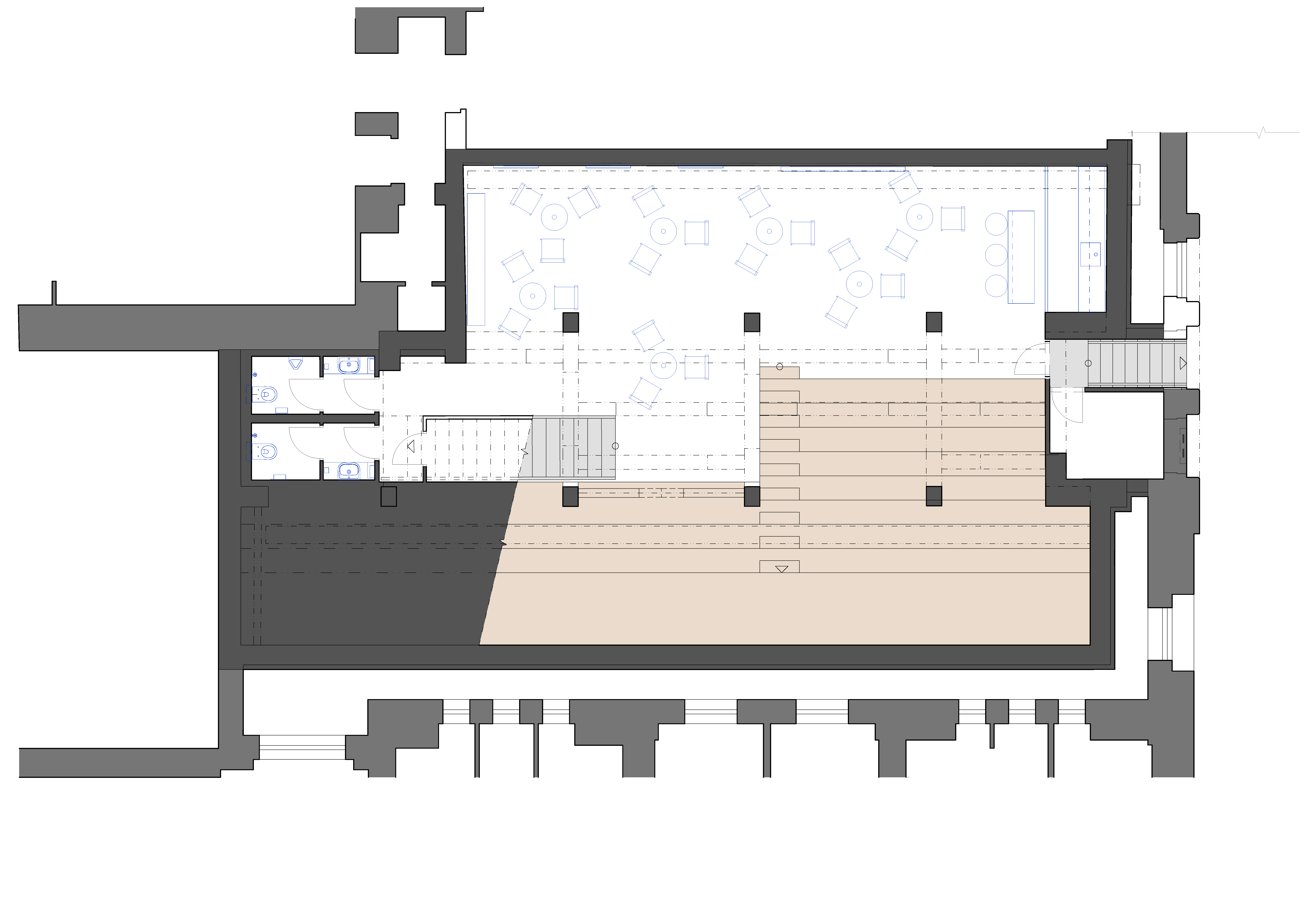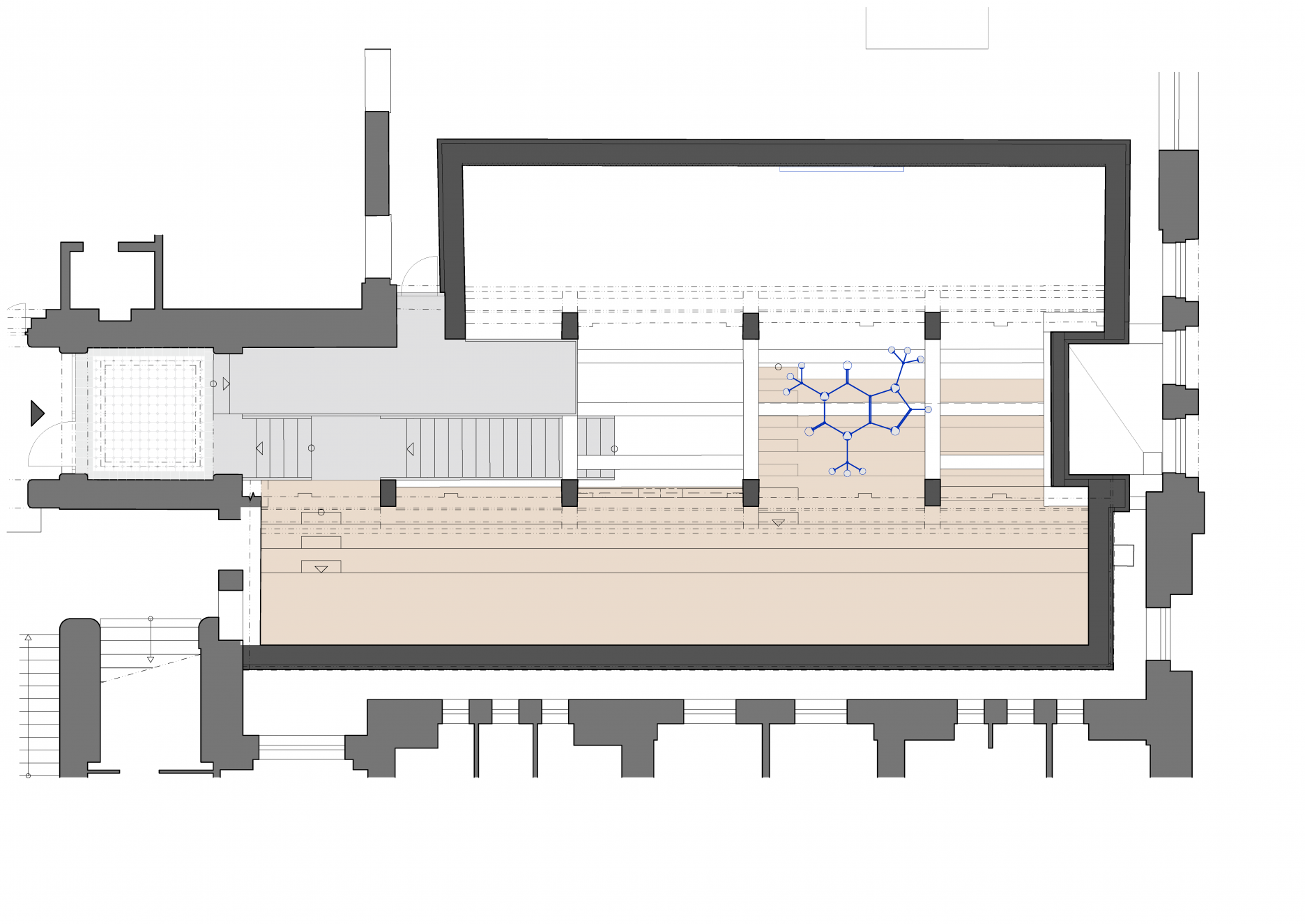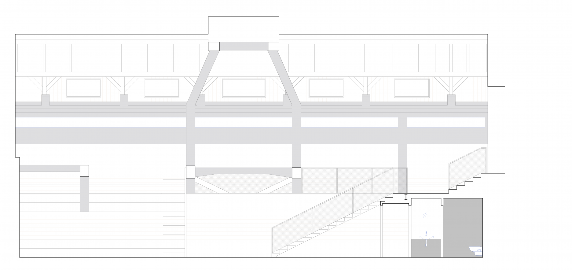 Cieľom bolo získať súvislý priestor, ktorý bude slúžiť prednáškam, stretnutiam a neformálnym aktivitám školy. Jeden z násypníkov bol preto odstránený a na druhý boli položené drevené stupne, slúžiace ako hľadisko. Nové, vložené schodisko prepája obe výškové úrovne.