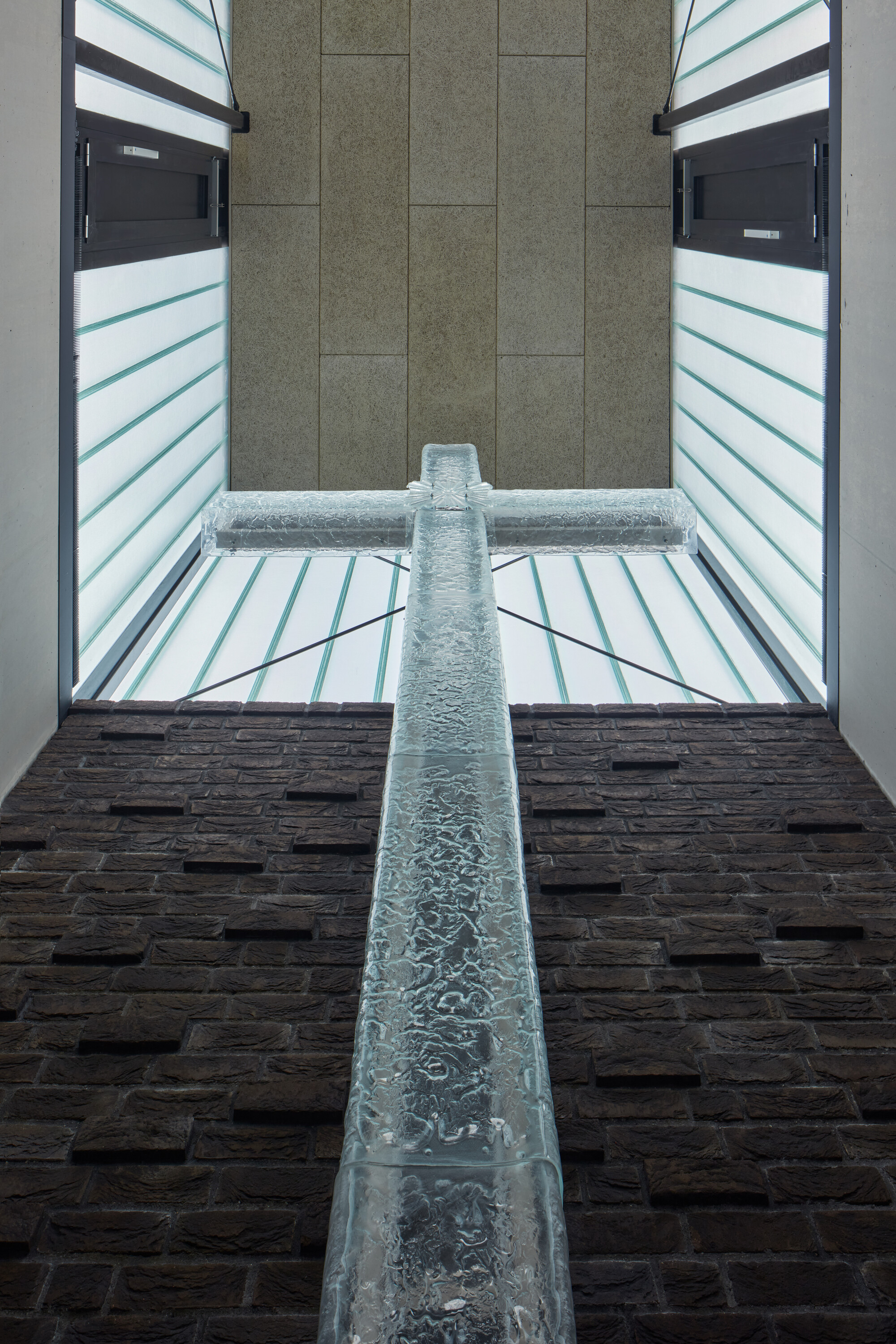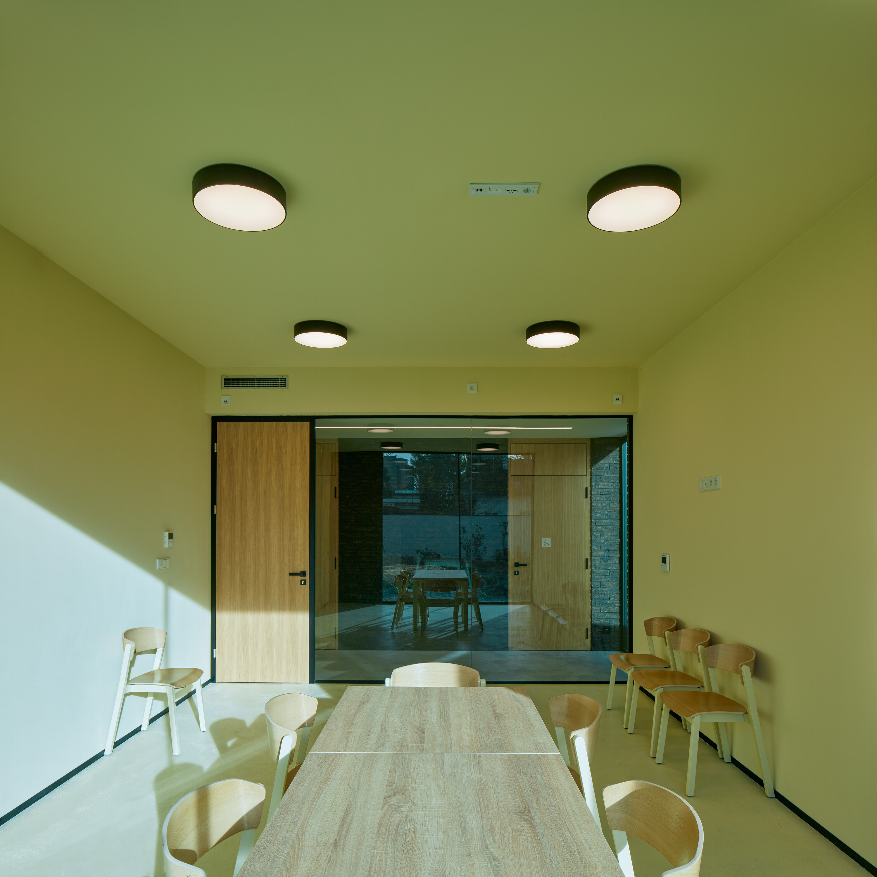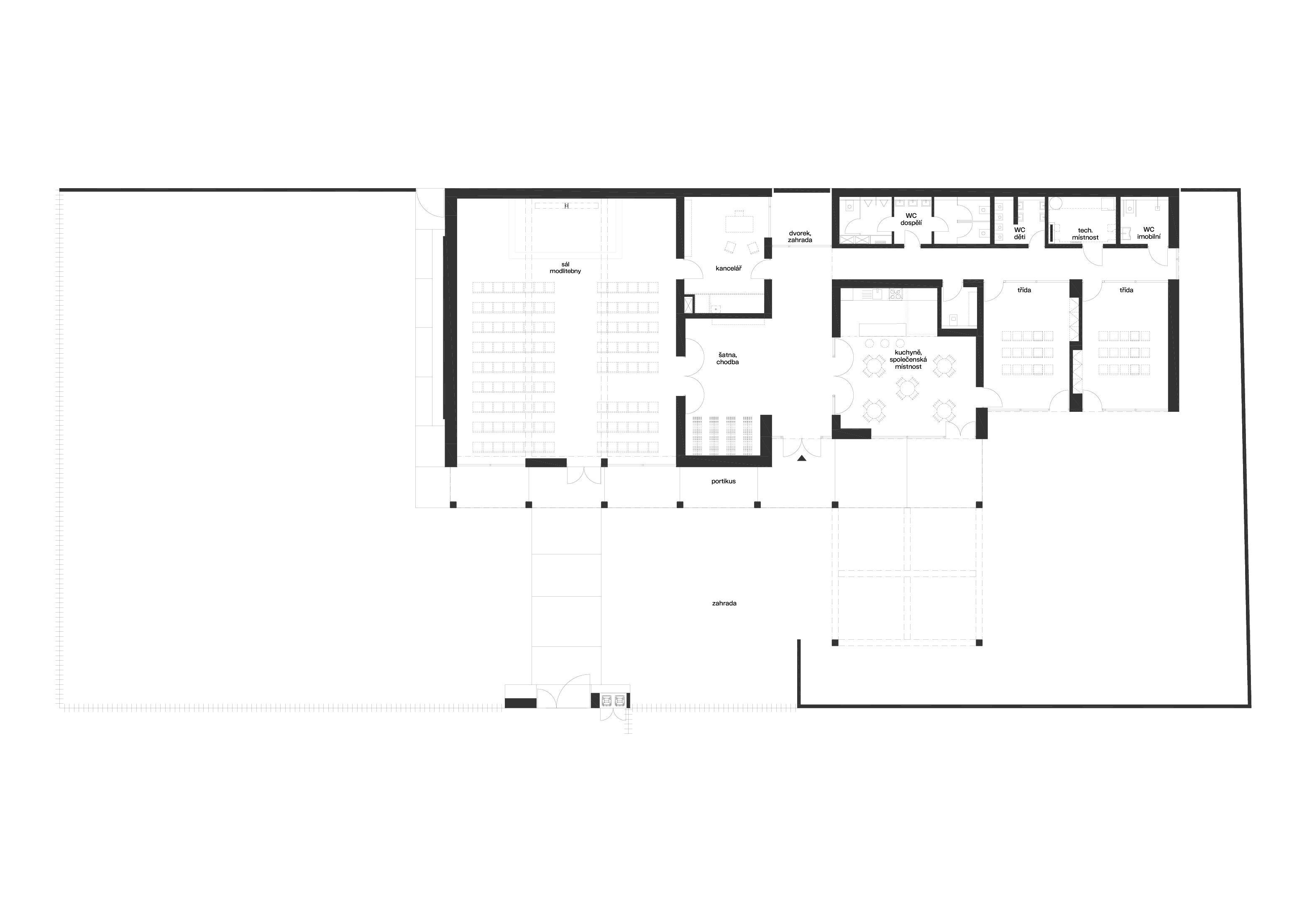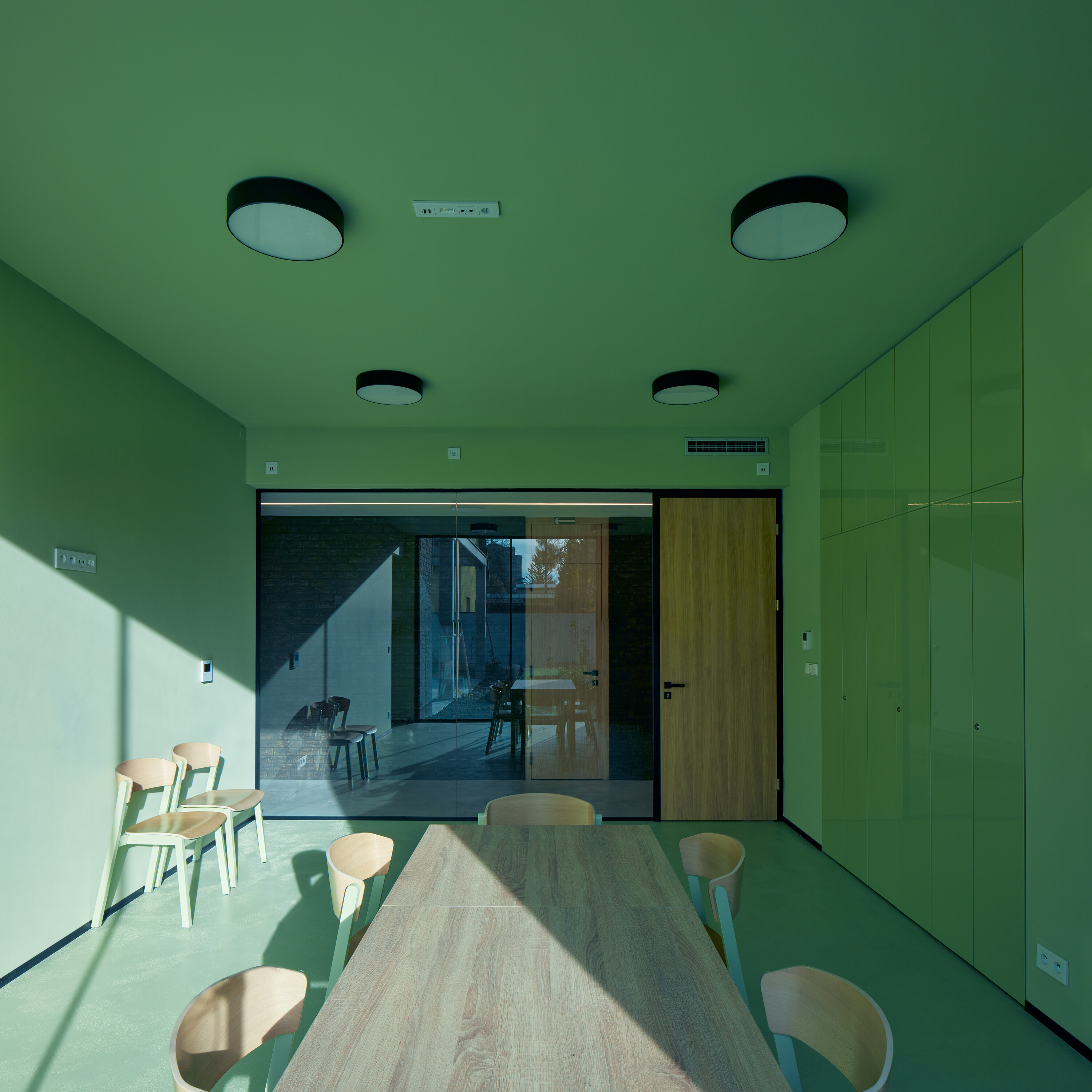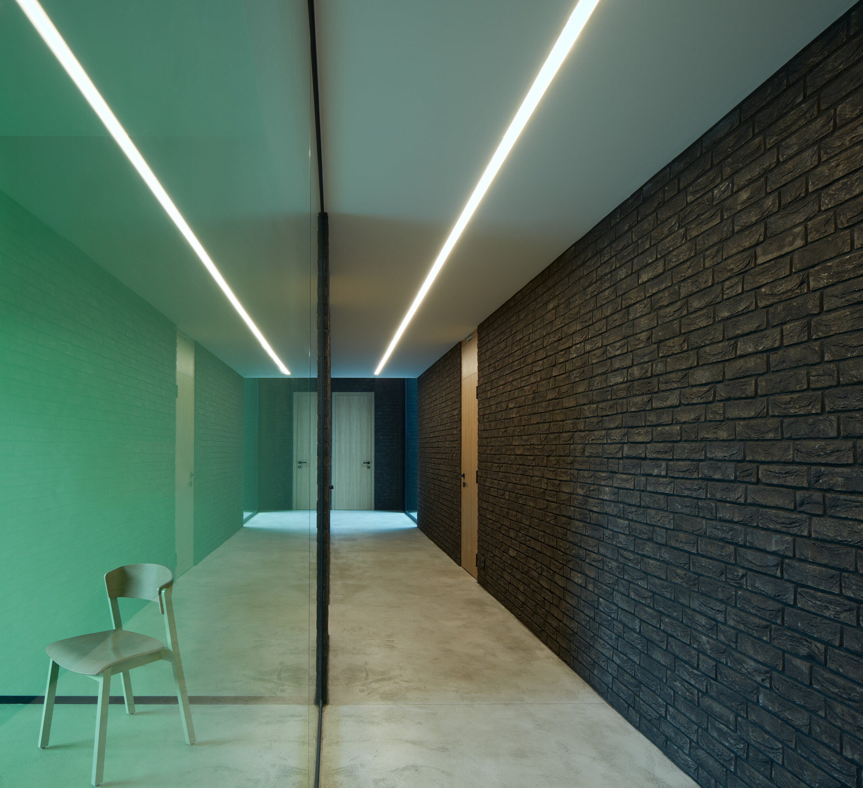 "Zkušenost světla a tmy, je přirozeným východiskem celého konceptu. Světlík, zdroj bazilikálního osvětlení, je postavený v ose příchodu a tvoří charakteristický prvek vnějšího i vnitřního vnímání objektu. Určuje těžiště, koncentruje a dále rozptyluje světlo, které vytváří atmosféru. Stíny a napětí mezi světlem a tmou graficky podtrhují linie prostoru," vysvetľujú koncept autori.