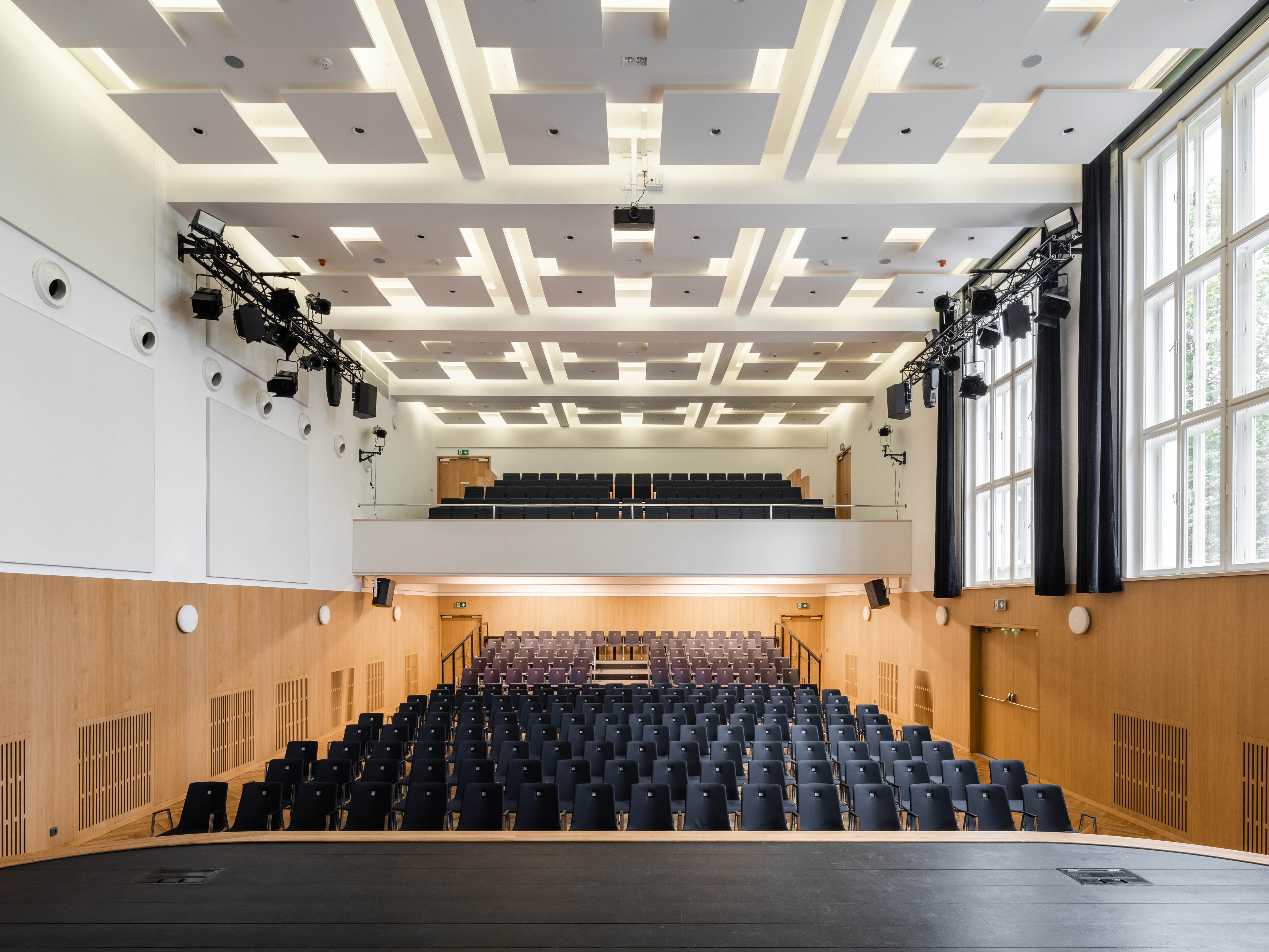 Obnova pamiatky Kina Hviezda priniesla najväčšiu zmenu v dispozičnom riešení a technickej modernizácii stavby. Tú vyvolala najmä vstavba výťahu, prepájajúceho všetky podlažia objektu. V priestoroch prízemia sa vedľa seba nachádzajú dve hlavné sály, klubová miestnosť a zachovali sa tu tiež pôvodné priestory vestibulu so šatňou a pokladňou. V hlavnej sále bola vyrovnaná podlaha, stupňovitosť sedadiel bola zabezpečená prostredníctvom výsuvnej konštrukcie. V malej sále pribudla možnosť zostavenia variabilného tvaru pódia. Podzemné priestory stavby slúžia prevažne ako technické zázemie stavby, no nachádza sa tu aj ateliér tanečnej tvorby a kreatívne dielne. Na druhom nadzemnom podlaží vznikol po rekonštrukcii objektu nový výstavný priestor a na treťom podlaží ďalej nachádzame doplnkové priestory v podobe kancelárií a ateliérov. Interiér väčšiny menších miestností je štandardný, bez pridanej architektonickej hodnoty. Dôležité však je, že pri obnove boli s výnimkou výstavného priestoru zachované a obnovené všetky pôvodné terazzové podlahy, schodiská so zábradliami, ako aj väčšina originálnych interiérových dverných výplní.
